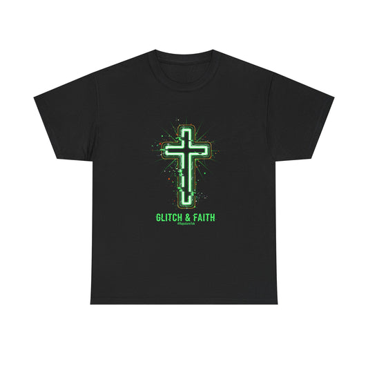 Glitch & Faith Unisex Heavy Cotton Tee, Inspirational Christian T-Shirt, Religious Apparel, Faith-Based Gift, Casual Wear, Cross Design