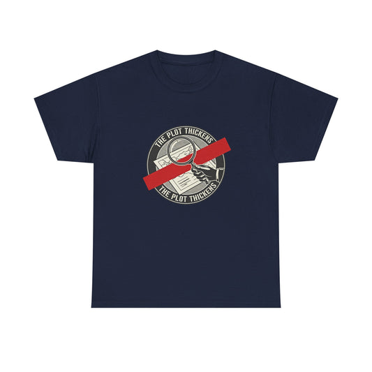 • Mystery Lover's Unisex Heavy Cotton Tee - The Plot Thickens, Book Lovers T-Shirt, Literary Humor Shirt, Gift for Writers, Novelty Tee