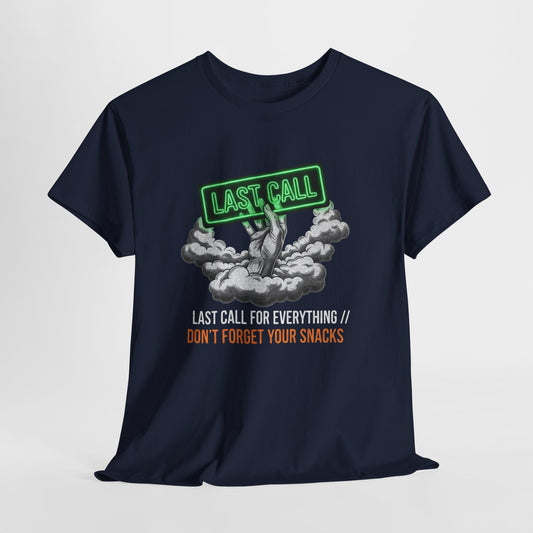 Last Call Unisex Heavy Cotton Tee | Fun Graphic Shirt, Party Wear, Casual Fashion, Gift for Snack Lovers, Statement T-Shirt