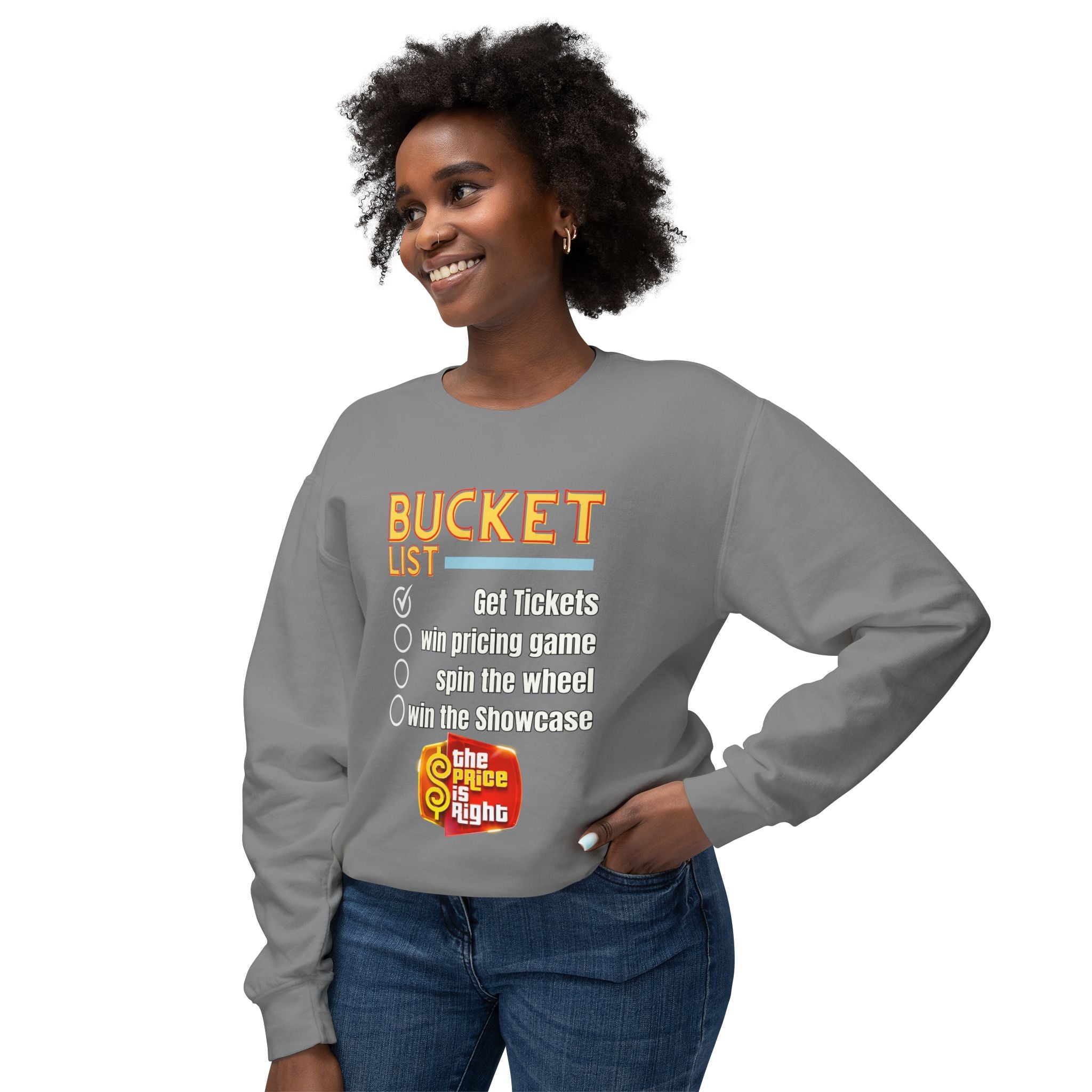 • Price is Right Bucket List Unisex Lightweight Crewneck Sweatshirt