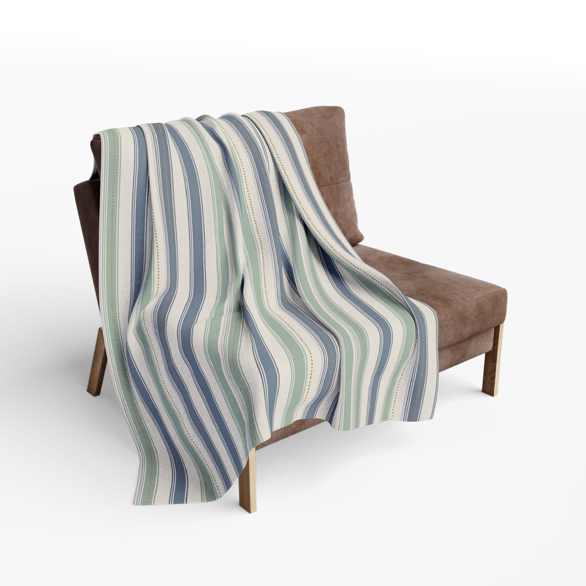 The Slate & Sage Collection- Joleen Striped Arctic Fleece Blanket — Cozy Blue & Sage Throw for Living Room, Bedroom, Gift