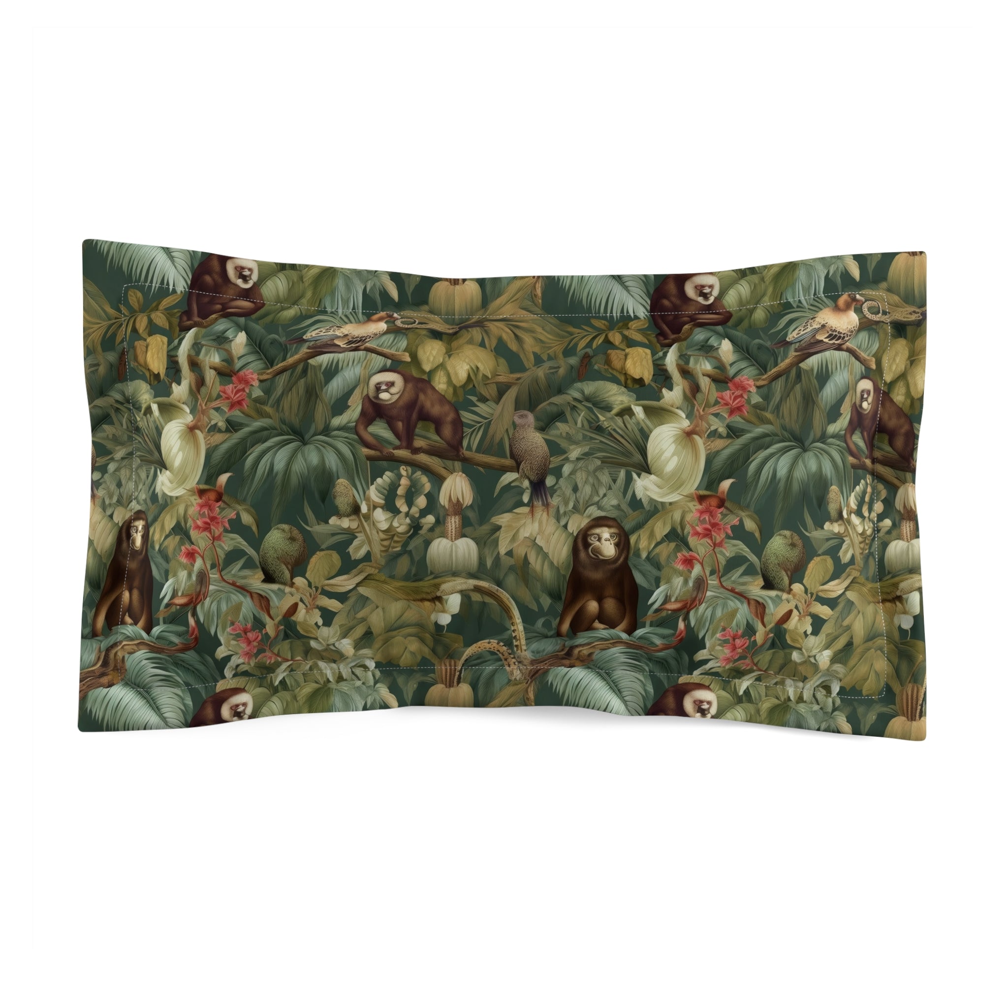 The White Lotus Collection Piper's Paradise Jungle Animal Microfiber Pillow Sham - Tropical Nature Design with Monkeys and Birds