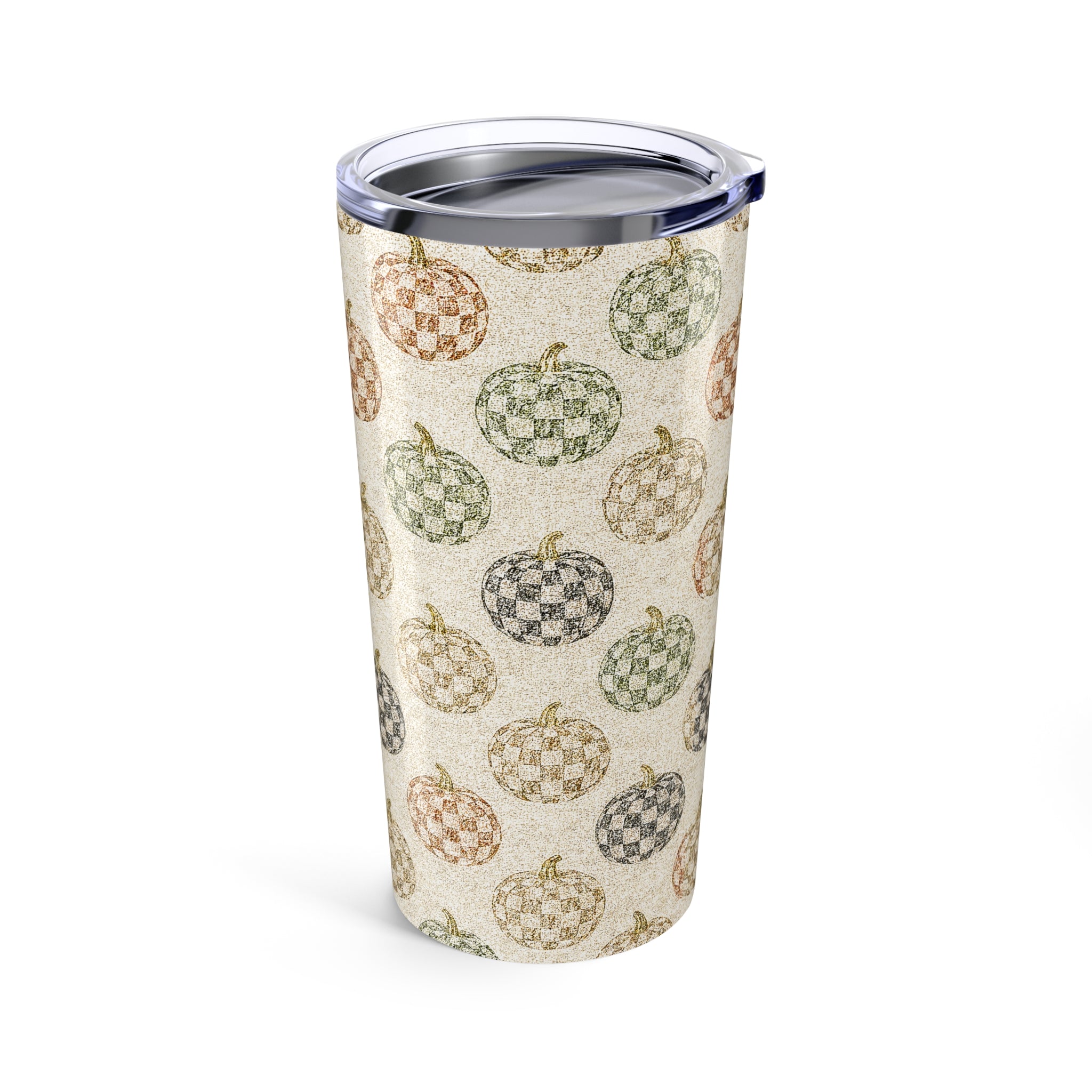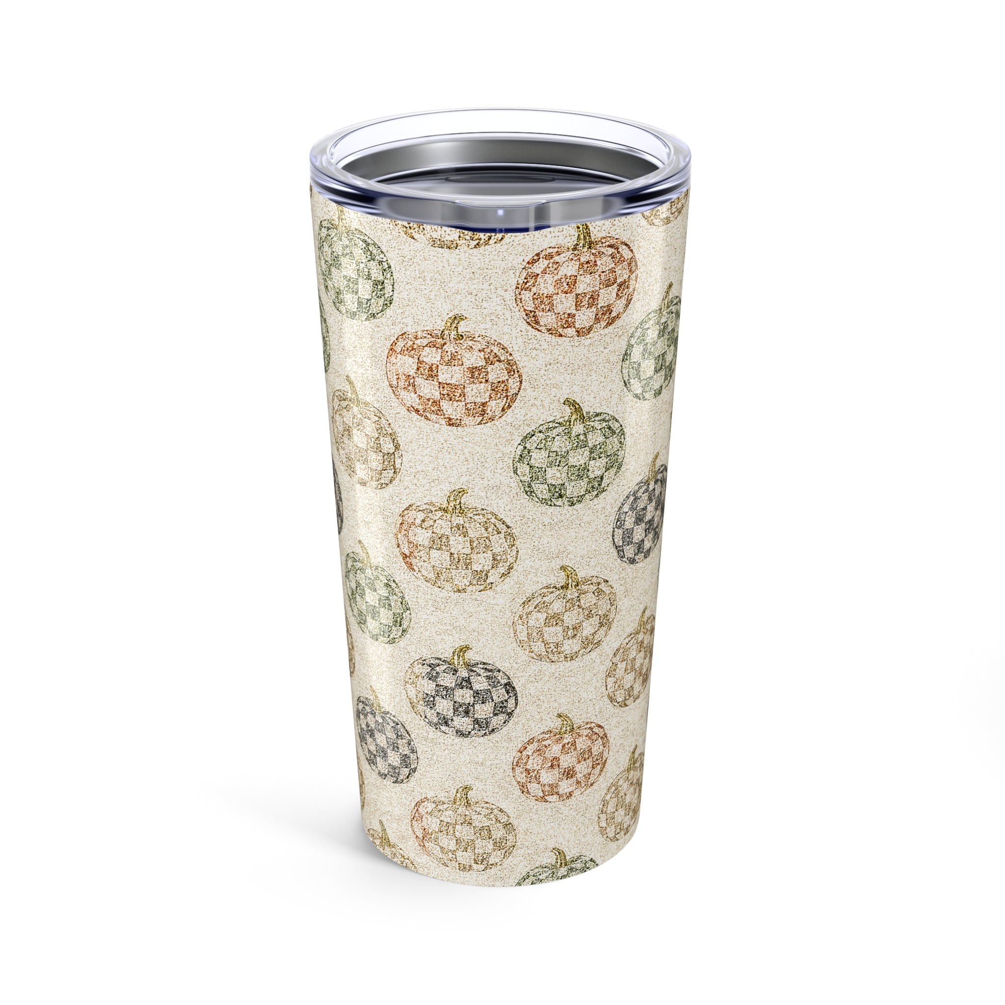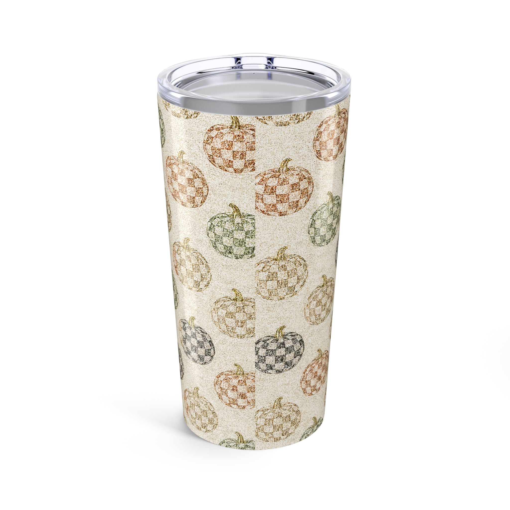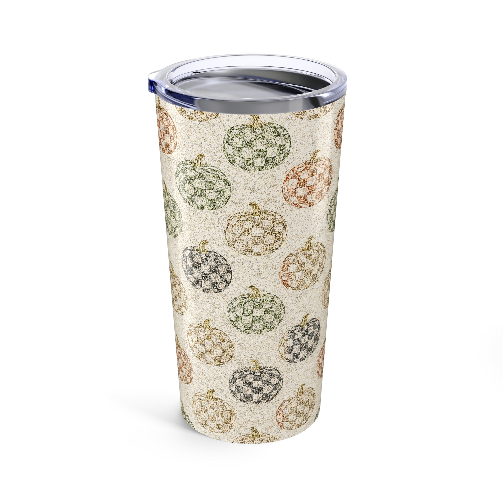 Chic Checkered Autumn Pumpkin Tumbler 20oz | Fall Decor | Seasonal Drinkware | Cozy Gift | Thanksgiving Mug | Harvest Vibes