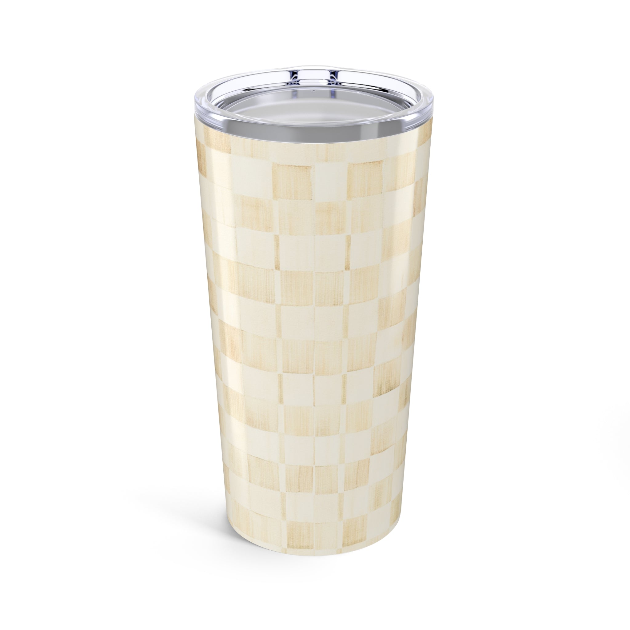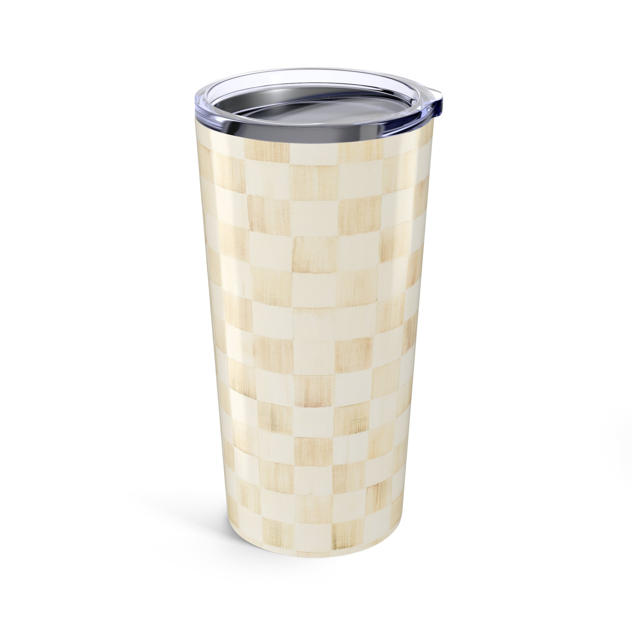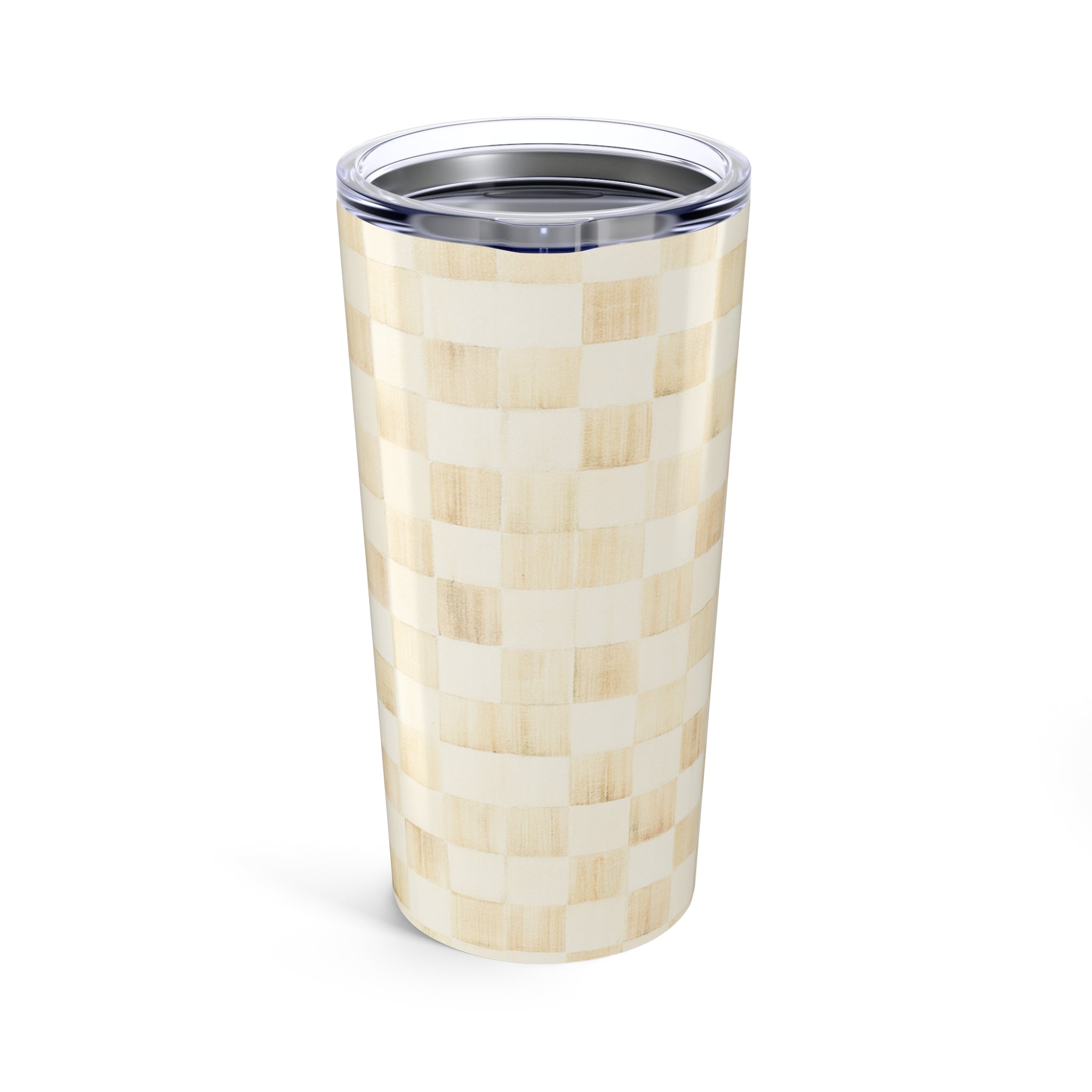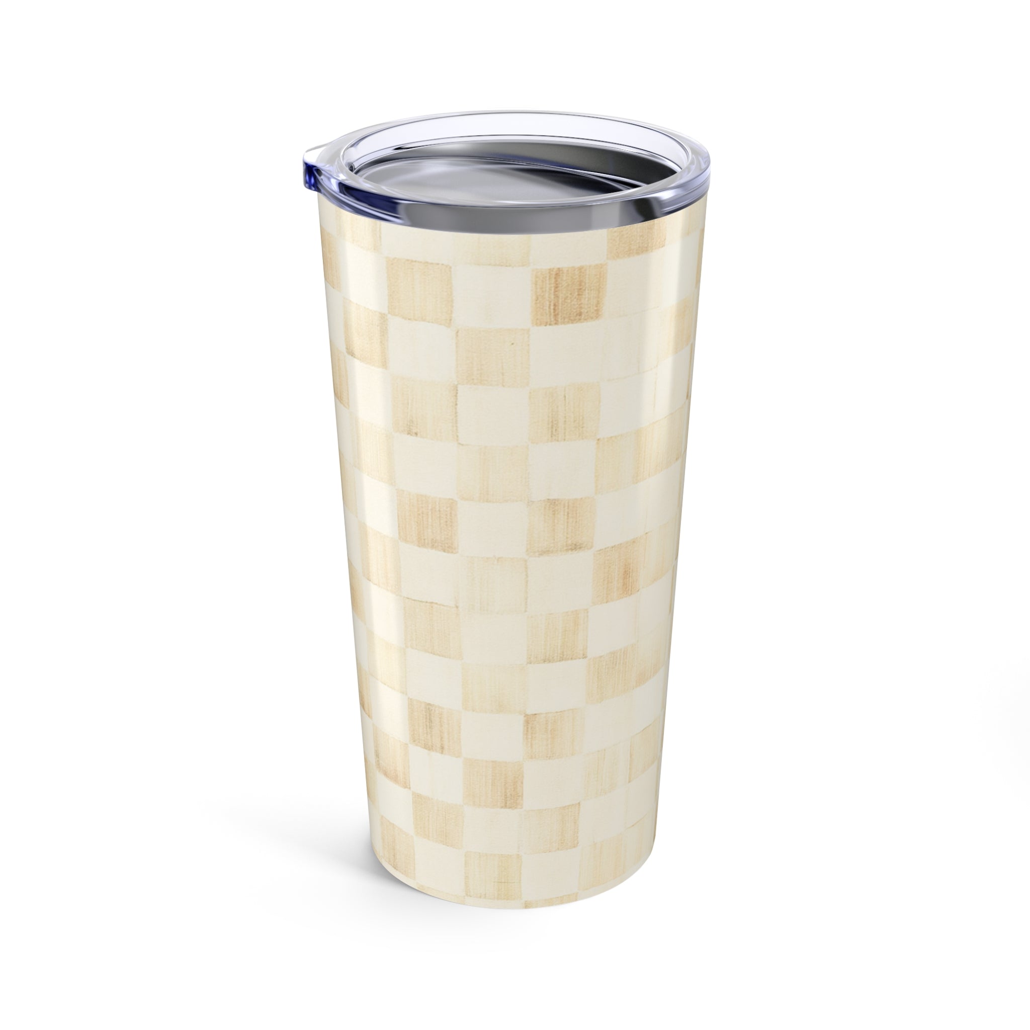 Chic Checkered Tumbler 20oz, Stylish Travel Mug- Tan/Ivory, Gift for Coffee Lovers, Reusable Drinkware, Kitchen Decor, Perfect for Events