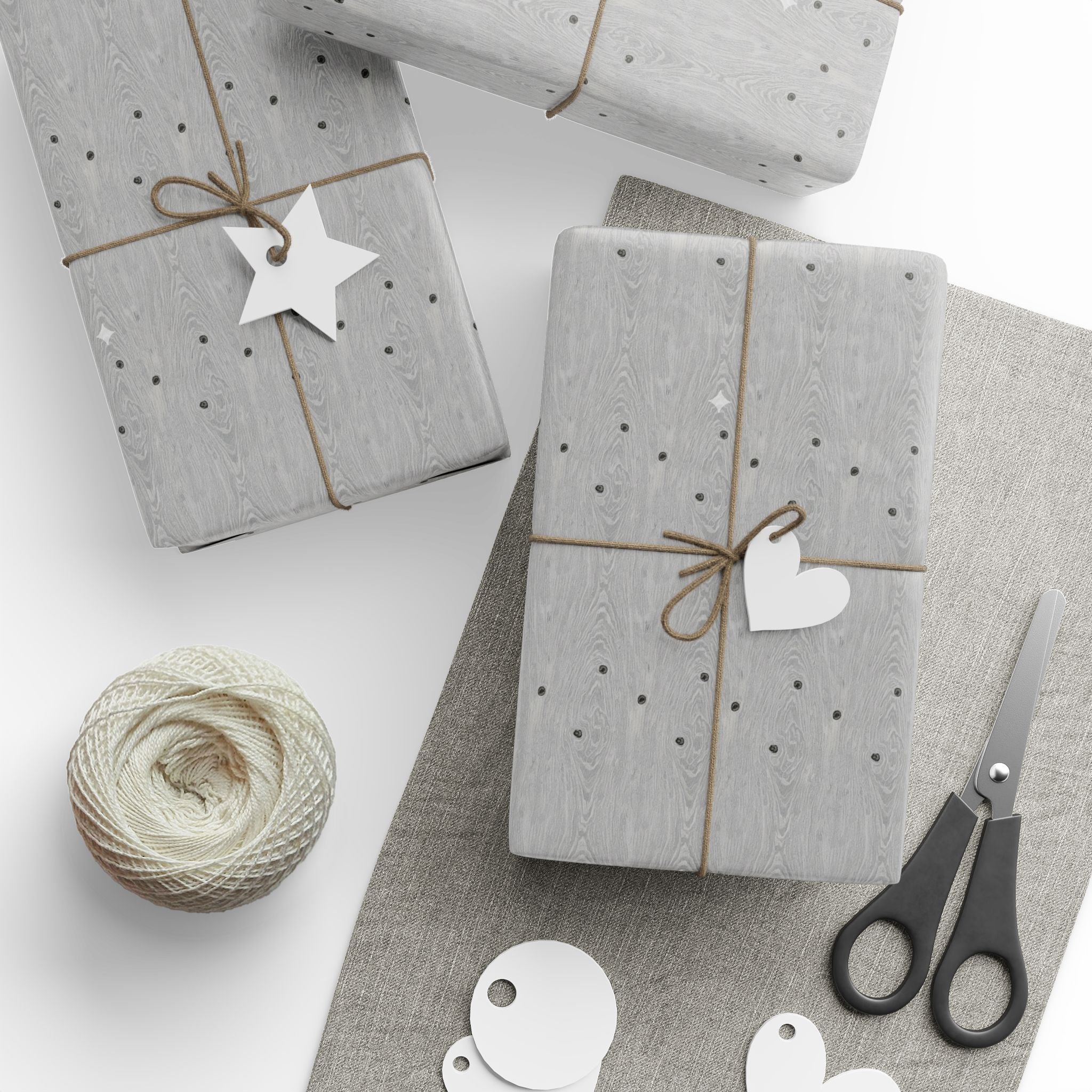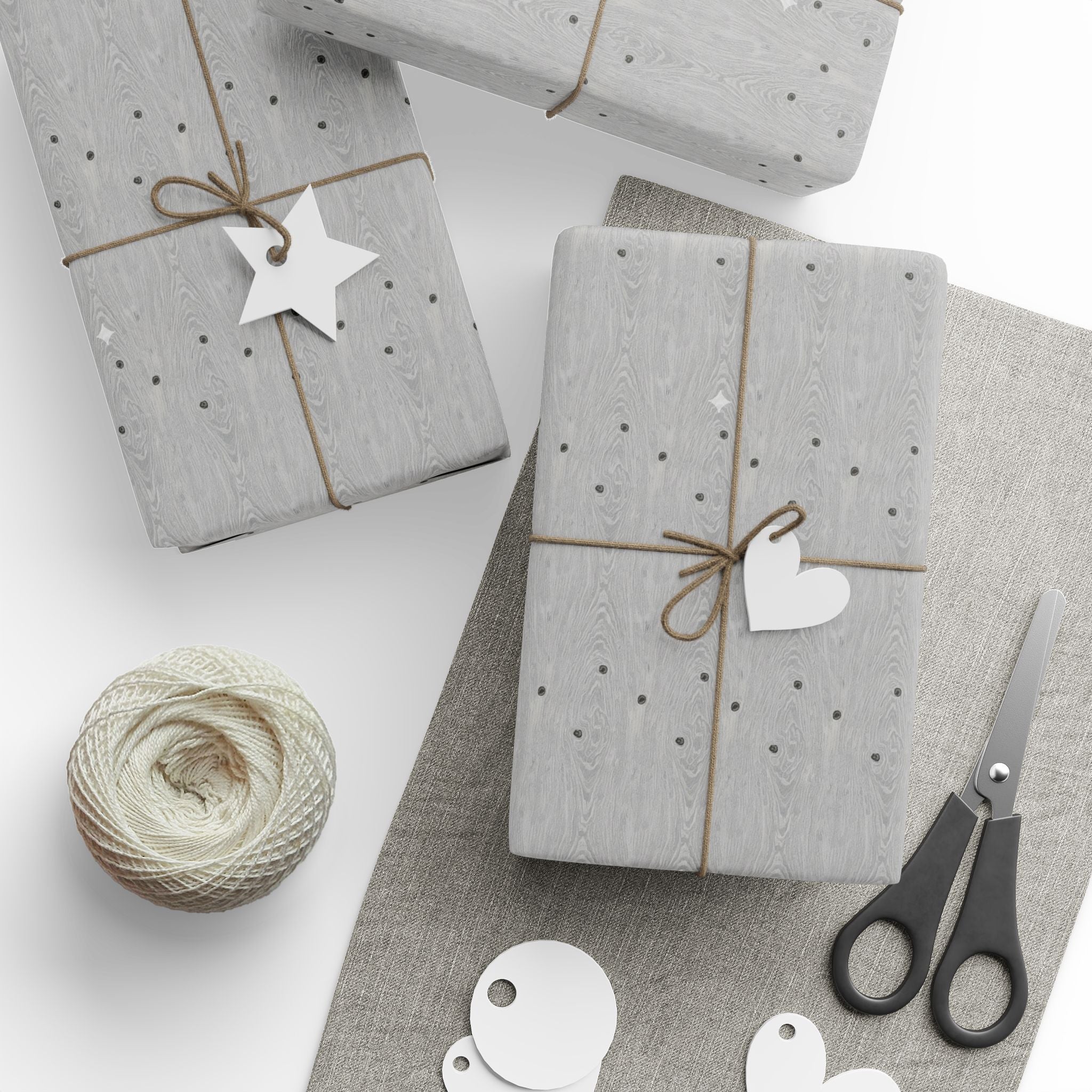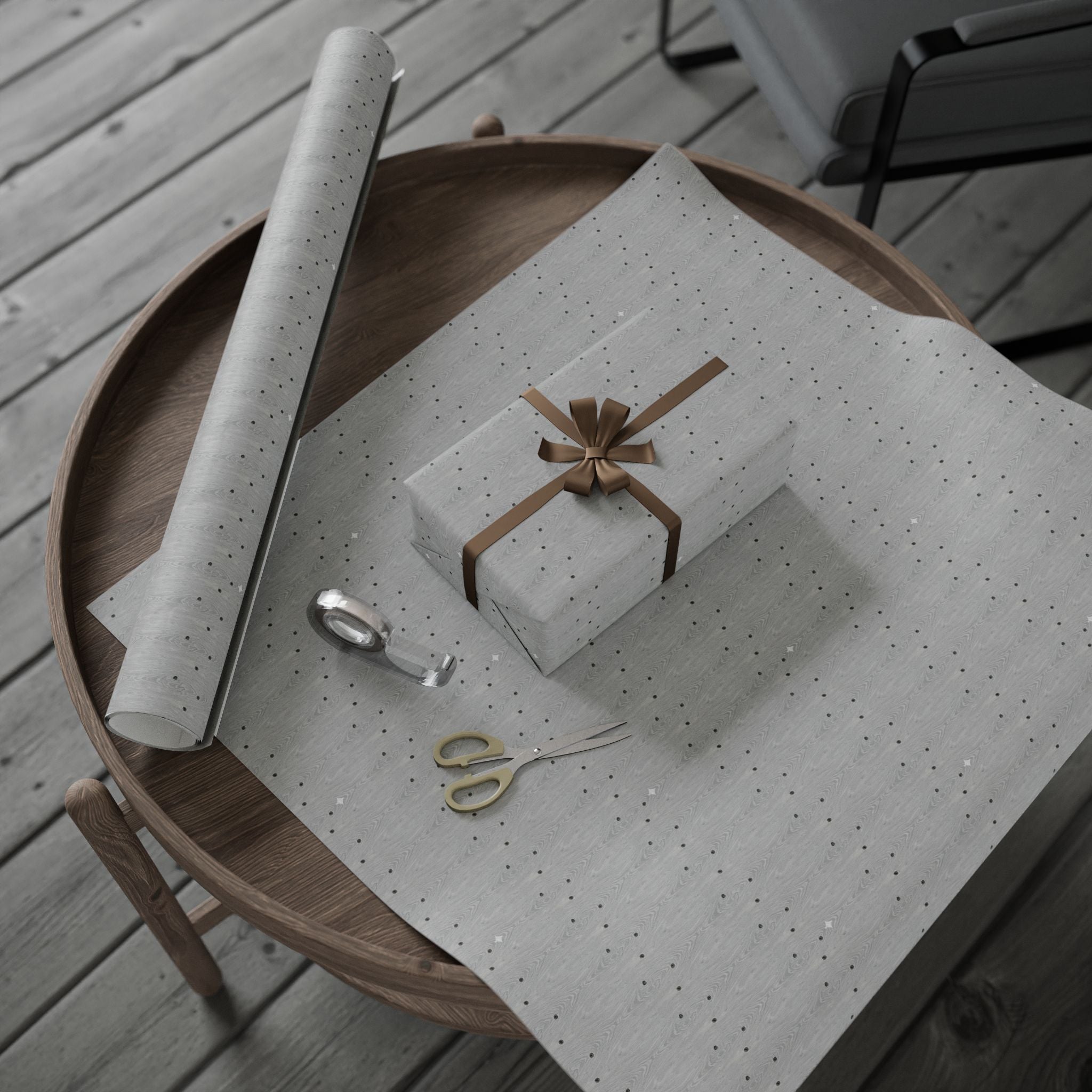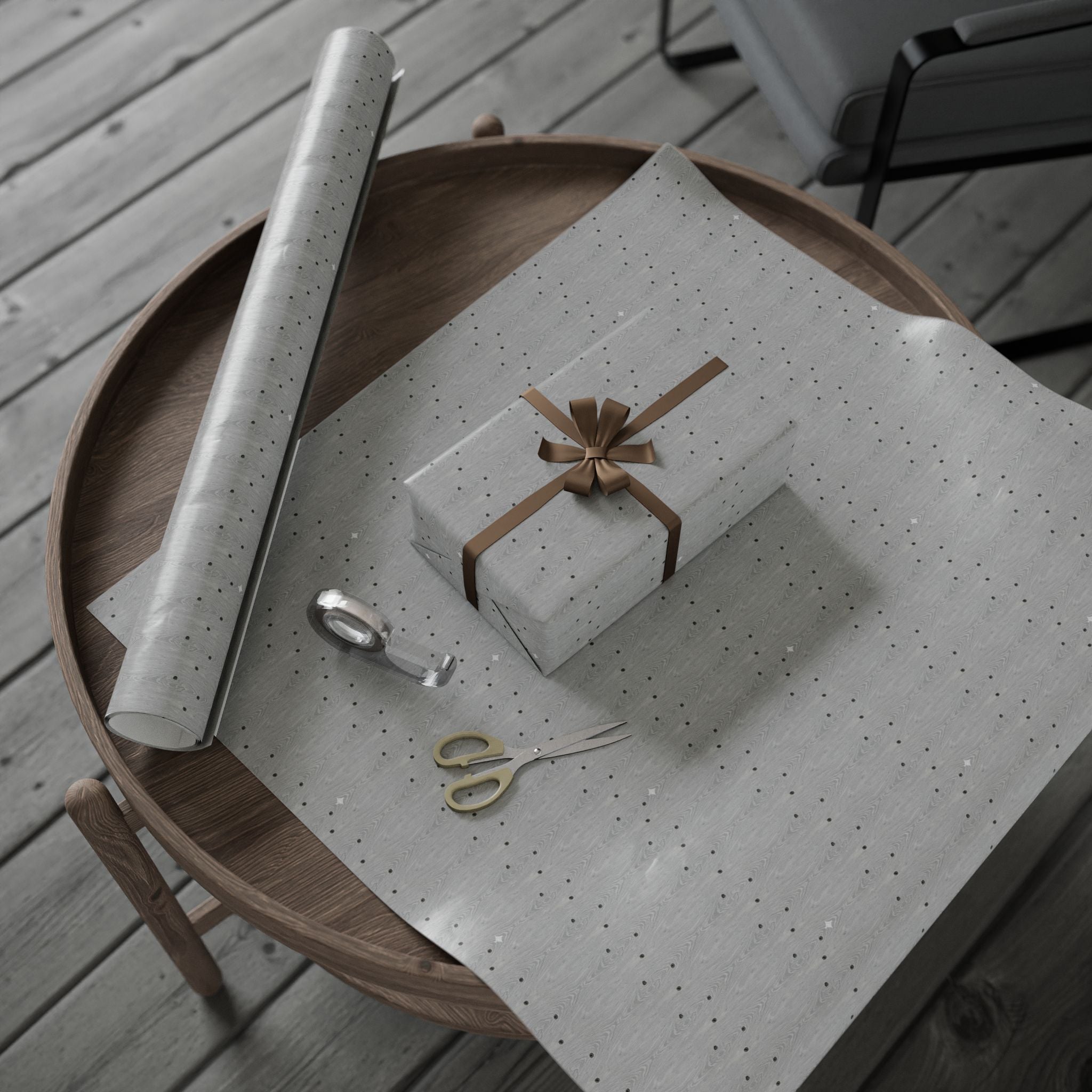 Silver Faux Wood Wrapping Paper Roll — Minimal Metallic Gift Wrap for Holidays & Special Occasions