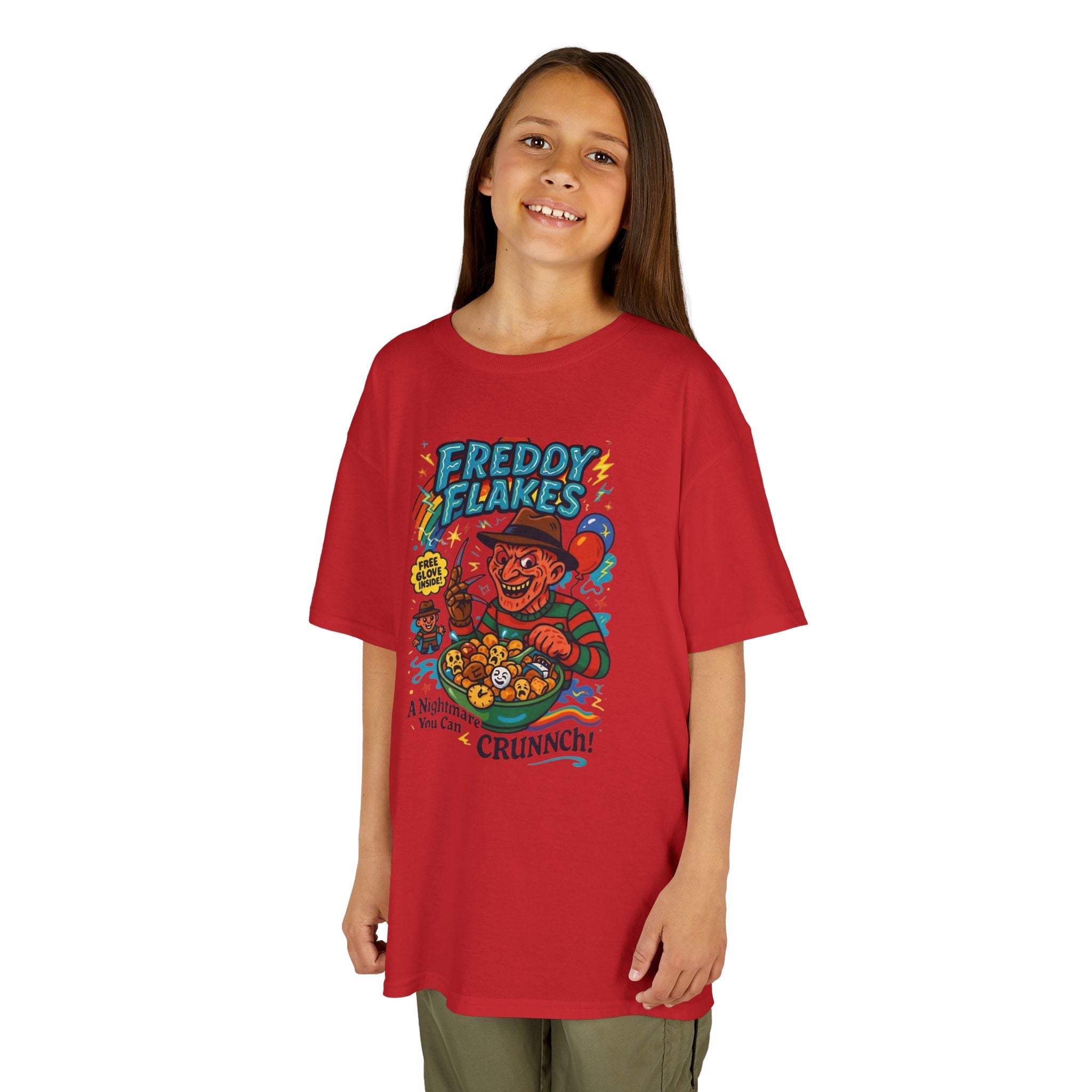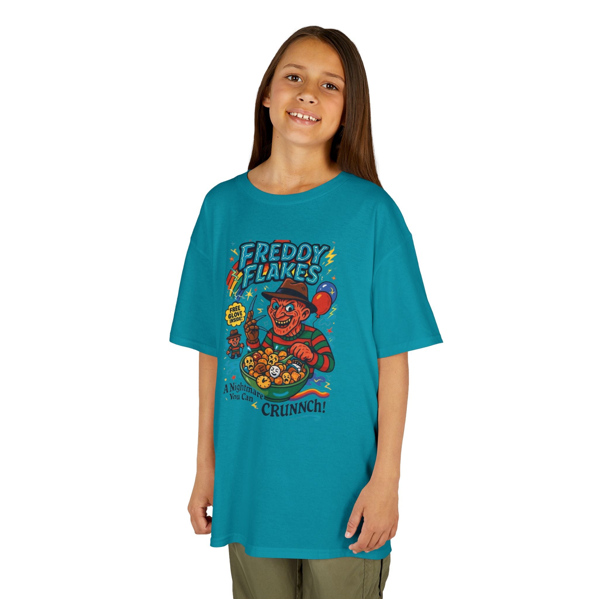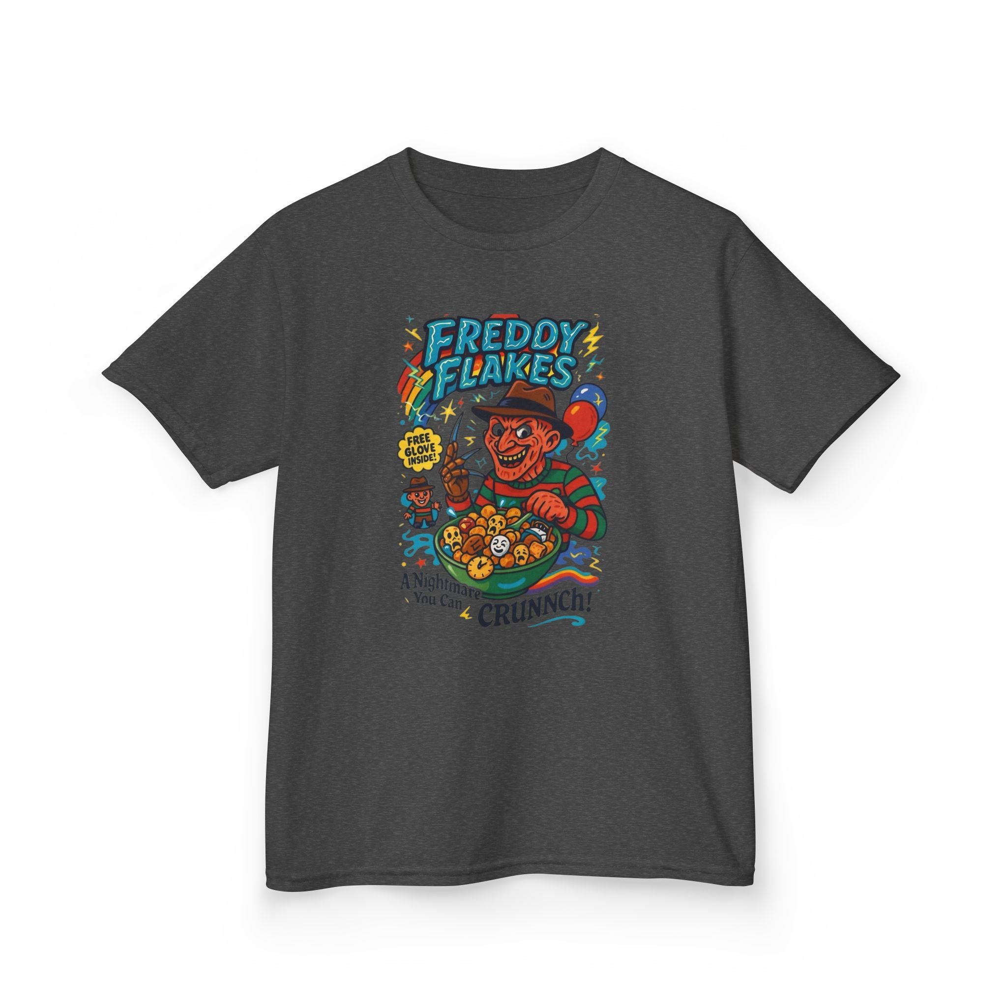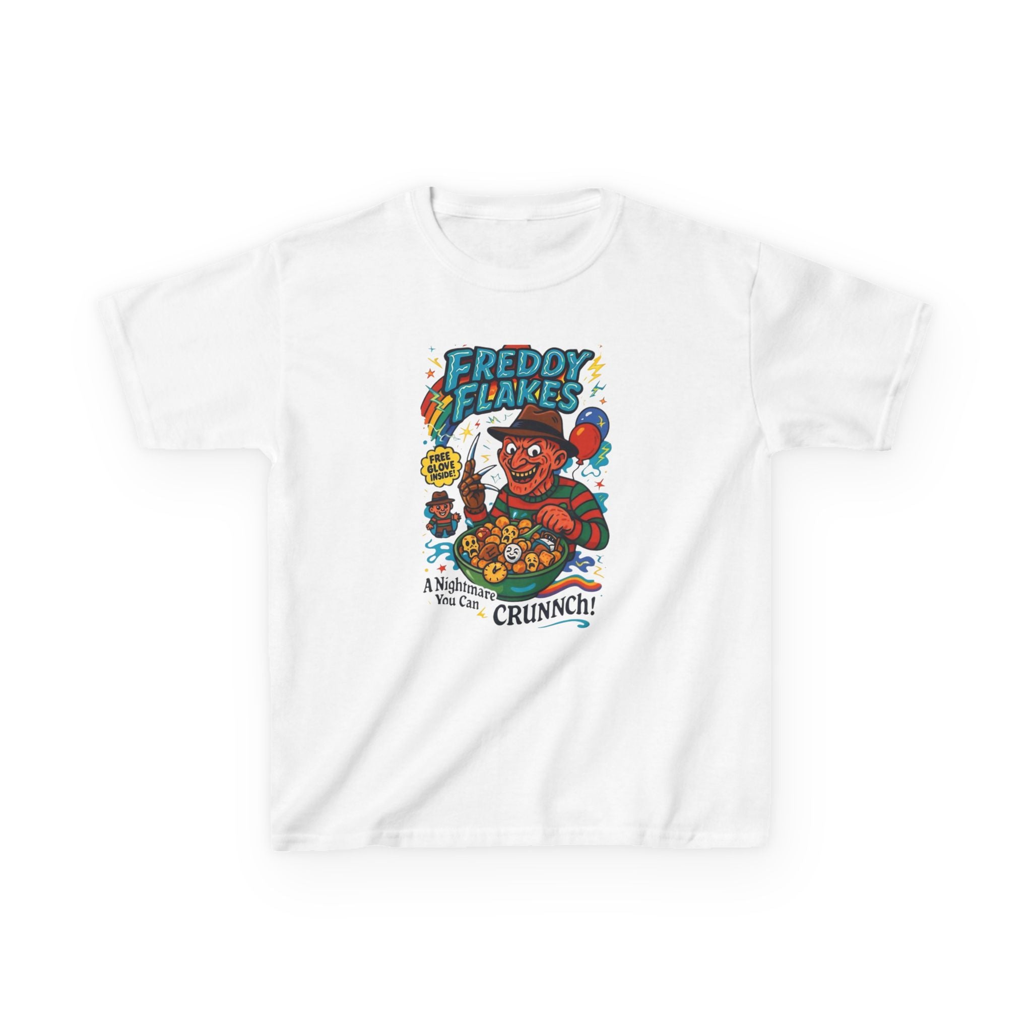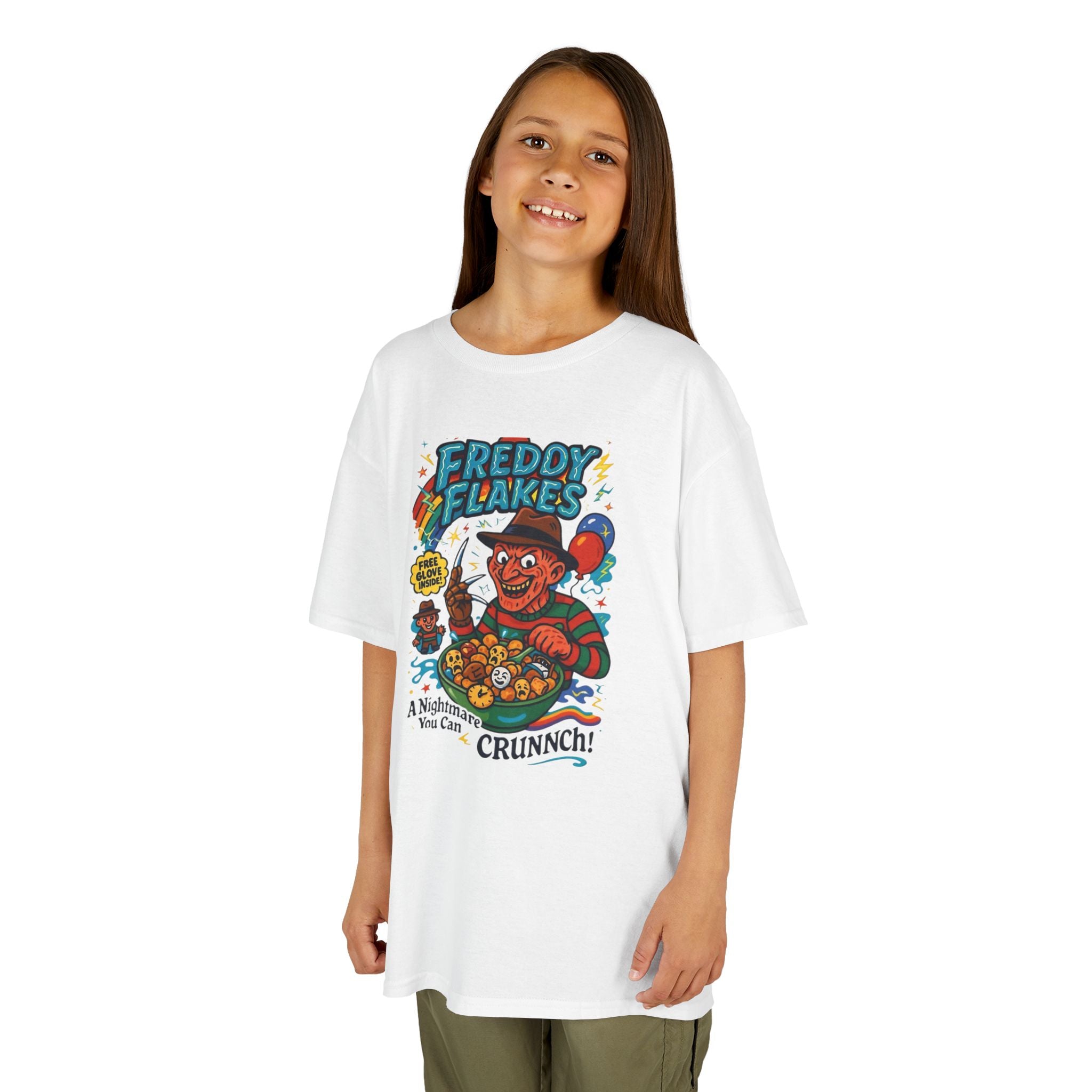 Freddie Flakes Retro Kids Graphic Tee, Fun Cartoon T-Shirt, Ideal Gift for Birthdays, Halloween Costume, Unique Kids Apparel, Comic Book Style Tee