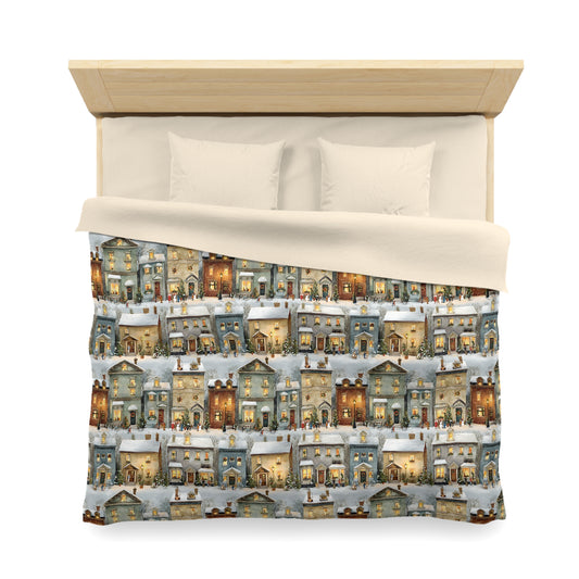 • Hearth & Heritage- Charming Townhouse Microfiber Duvet Cover, Cozy Bedroom Decor, Modern Bedding, Housewarming Gift, Seasonal Home Accent, Soft and Stylish