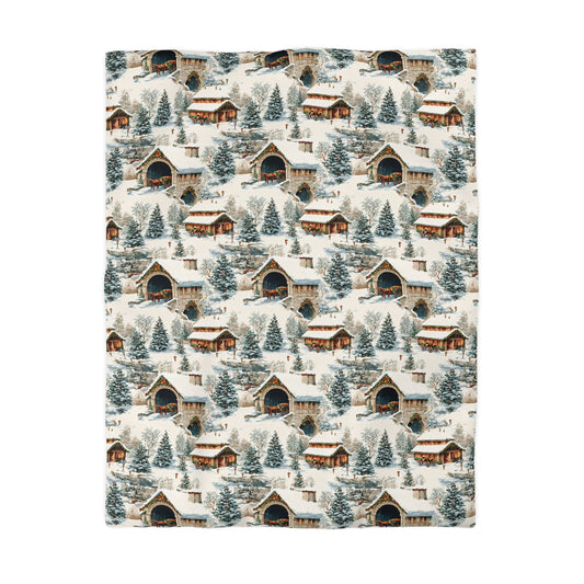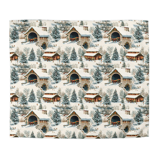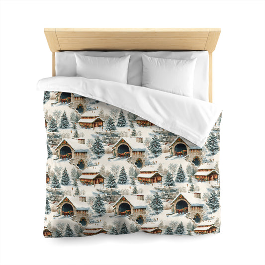 Hearth & Heritage- Winter Cabin Microfiber Duvet Cover, Cozy Bedroom Decor, Christmas Bedding, Holiday Gift, Rustic Home Accents
