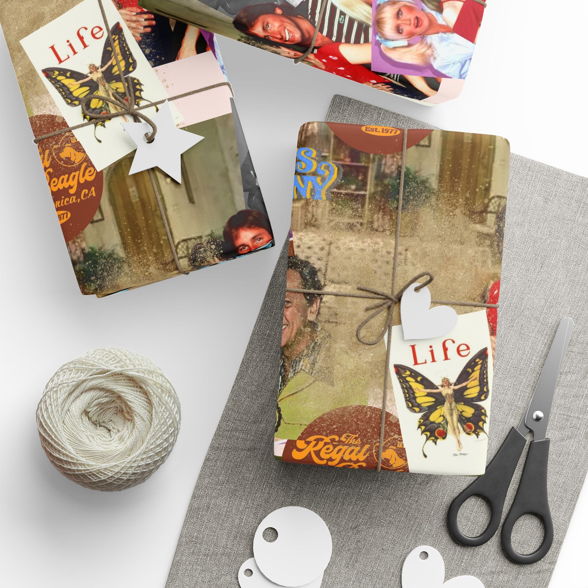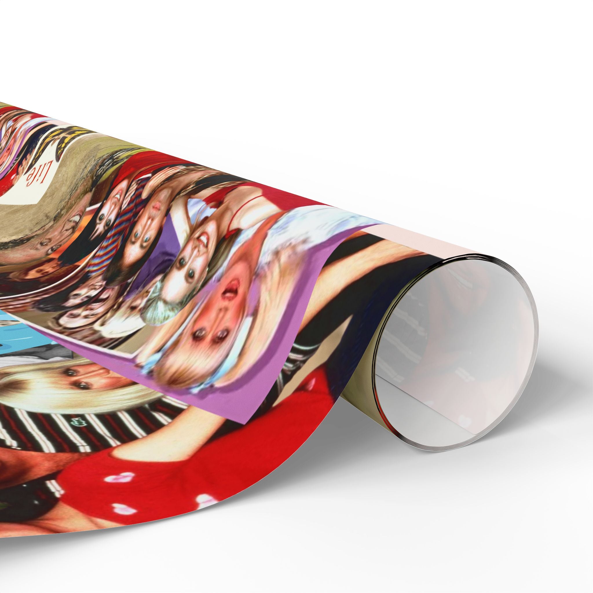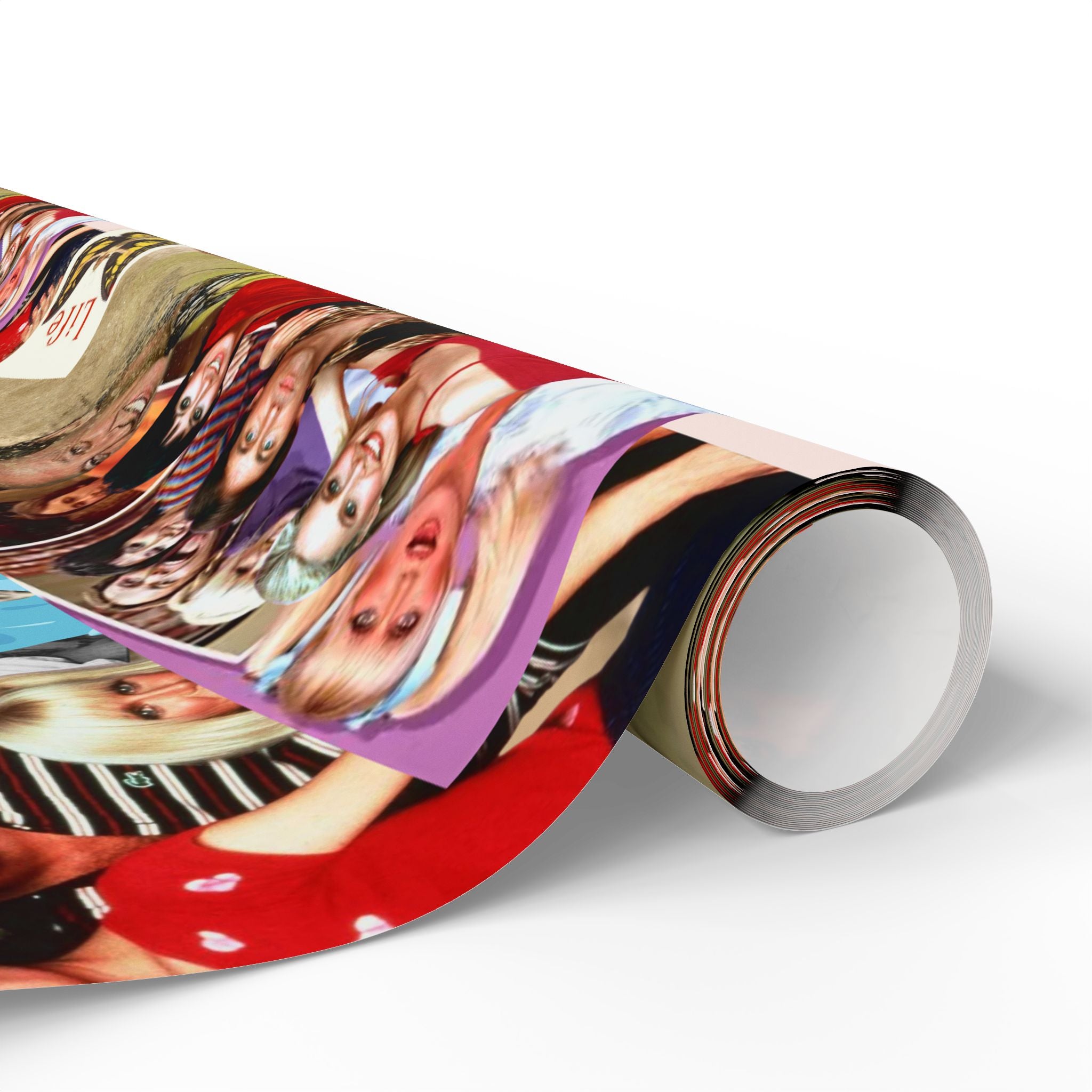Bright, collage-style gift wrap that turns every present into a moment. This wrapping paper features layered vintage photos, colorful pop-culture elements, and textured backgrounds for a joyful, nostalgic feel. It wraps around birthday boxes, record-player-sized packages, or a stack of small treasures and adds personality before the ribbon even appears. The one-sided print keeps the reverse clean and the available gloss or matte finishes let you choose a reflective pop or a soft, artful look. Note: sheets include thin white margins with a bar and QR code at the top/bottom edge.
