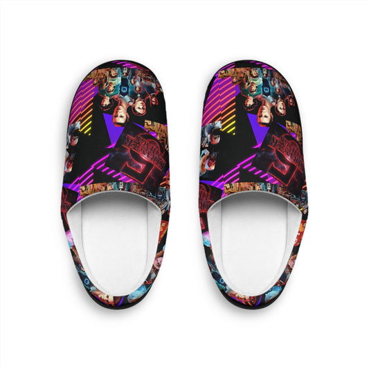 Stranger Things Women's Indoor Slippers — Retro Neon Collage Pop Art Design