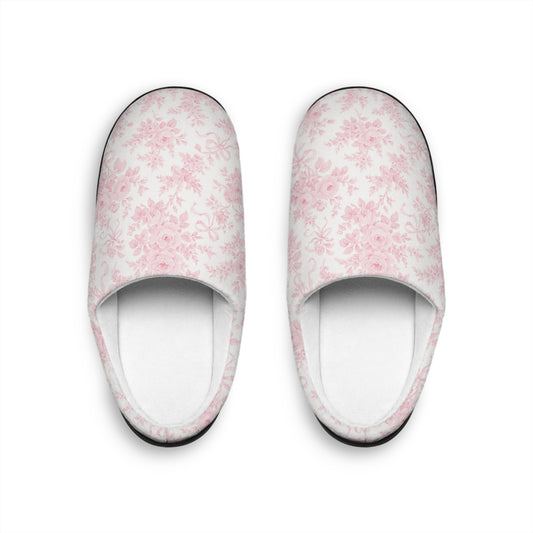 Pink Floral Plush Love Shack Inspired Indoor Slippers — Women's Cozy House Shoes