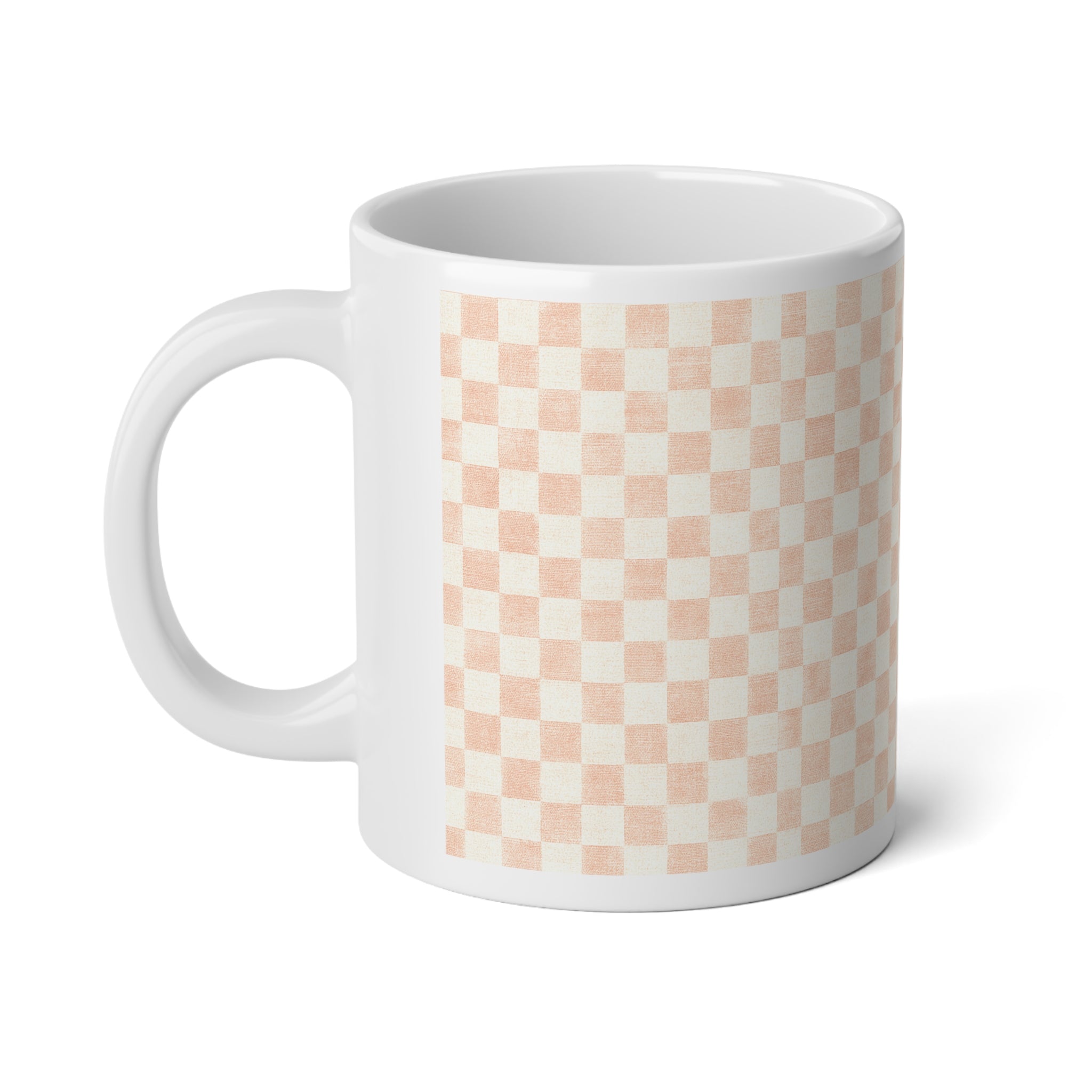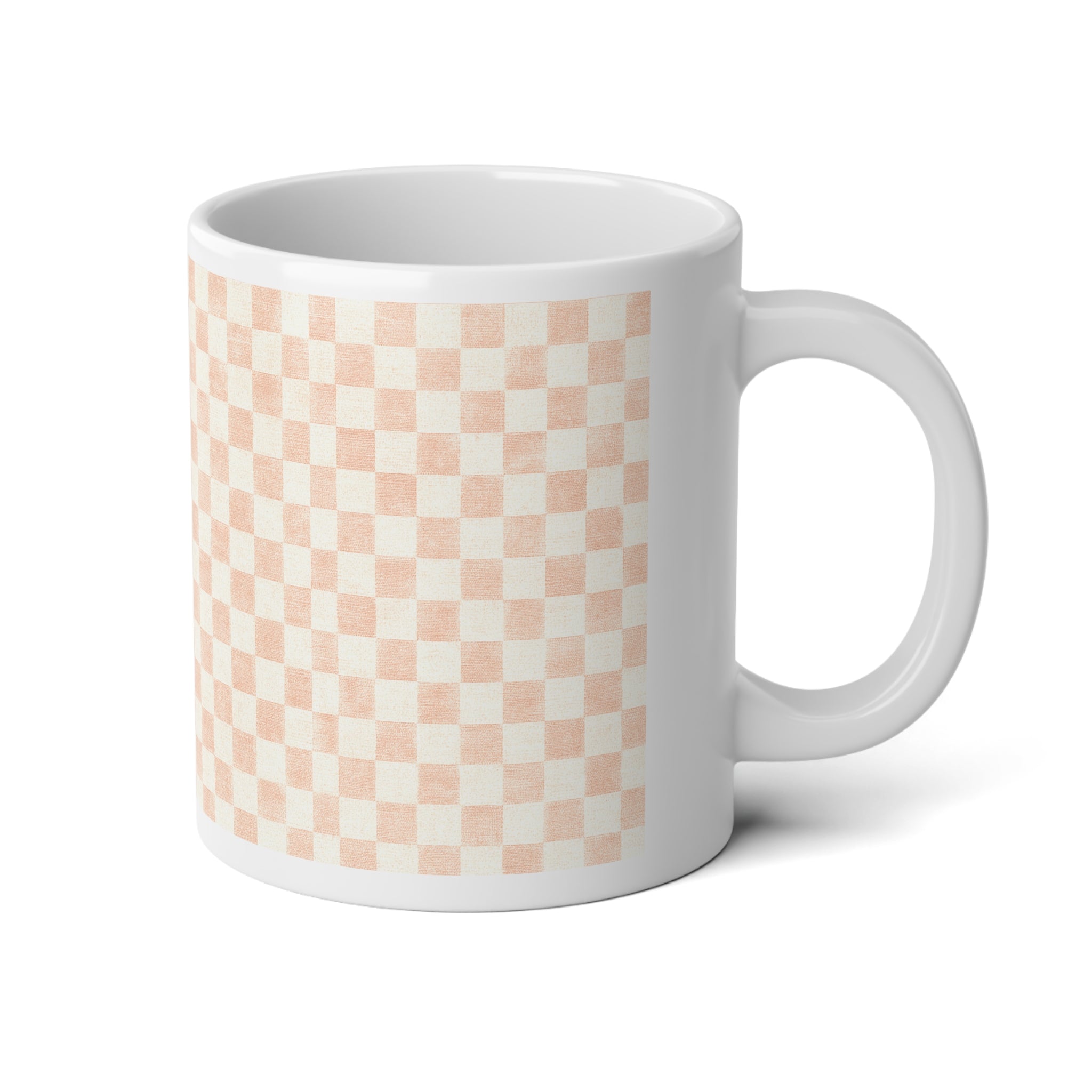 Chic Checkered Cozy Patterned Jumbo Mug- Blush Perfect for Coffee Lovers, Kitchen Decor, Gift for Birthdays, Checkered Coffee Cup, Tea Mug