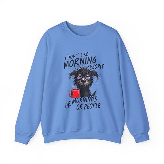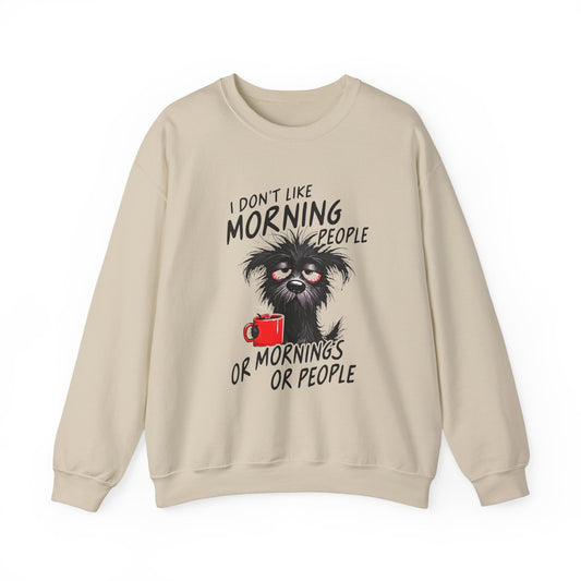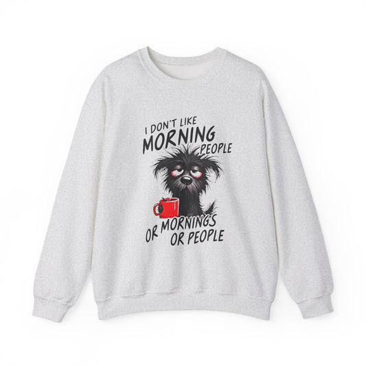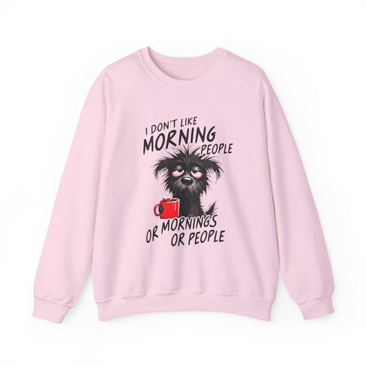 Crewneck Sweatshirt - “I Don’t Like Morning People or Mornings or People” Funny Coffee Dog Graphic