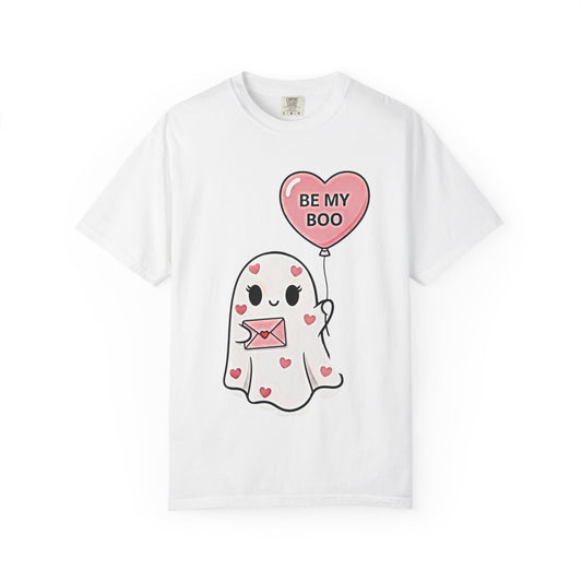 • Valentine Ghost T-Shirt — “Be My Boo” Cute Heart Balloon Tee