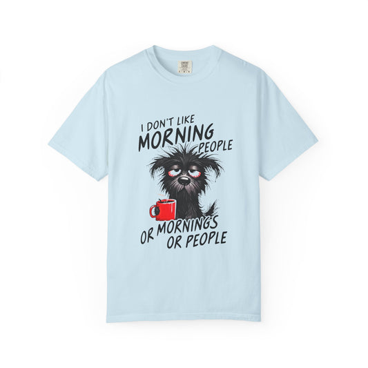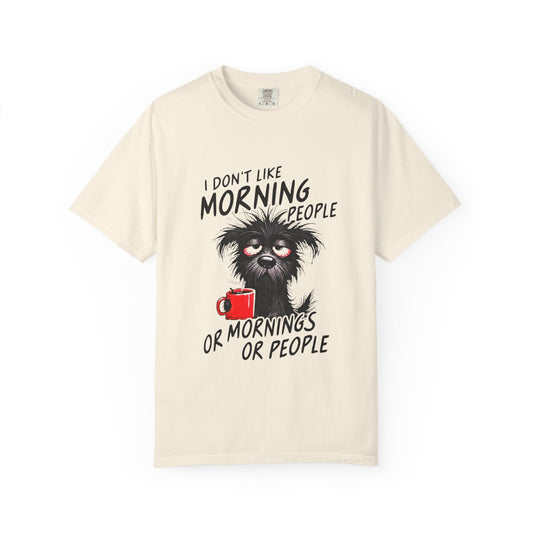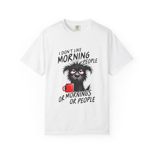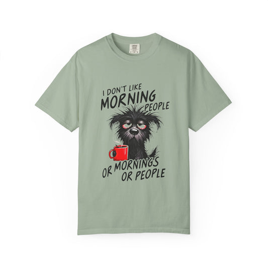 T-Shirt — “I Don’t Like Morning People or Mornings or People” Funny Coffee Cat Tee
