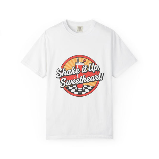 • Retro Diner T-Shirt — “Shake it Up, Sweetheart!” Vintage Soda Shop Graphic