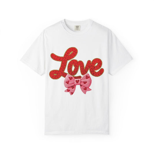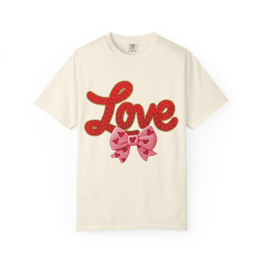 Love Script Tee with Heart Bow — Valentine's Day Graphic T-Shirt