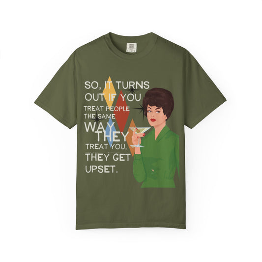Retro Cocktail Lady T-Shirt — Mid-Century Modern Graphic Tee with Martini & Vintage Quote