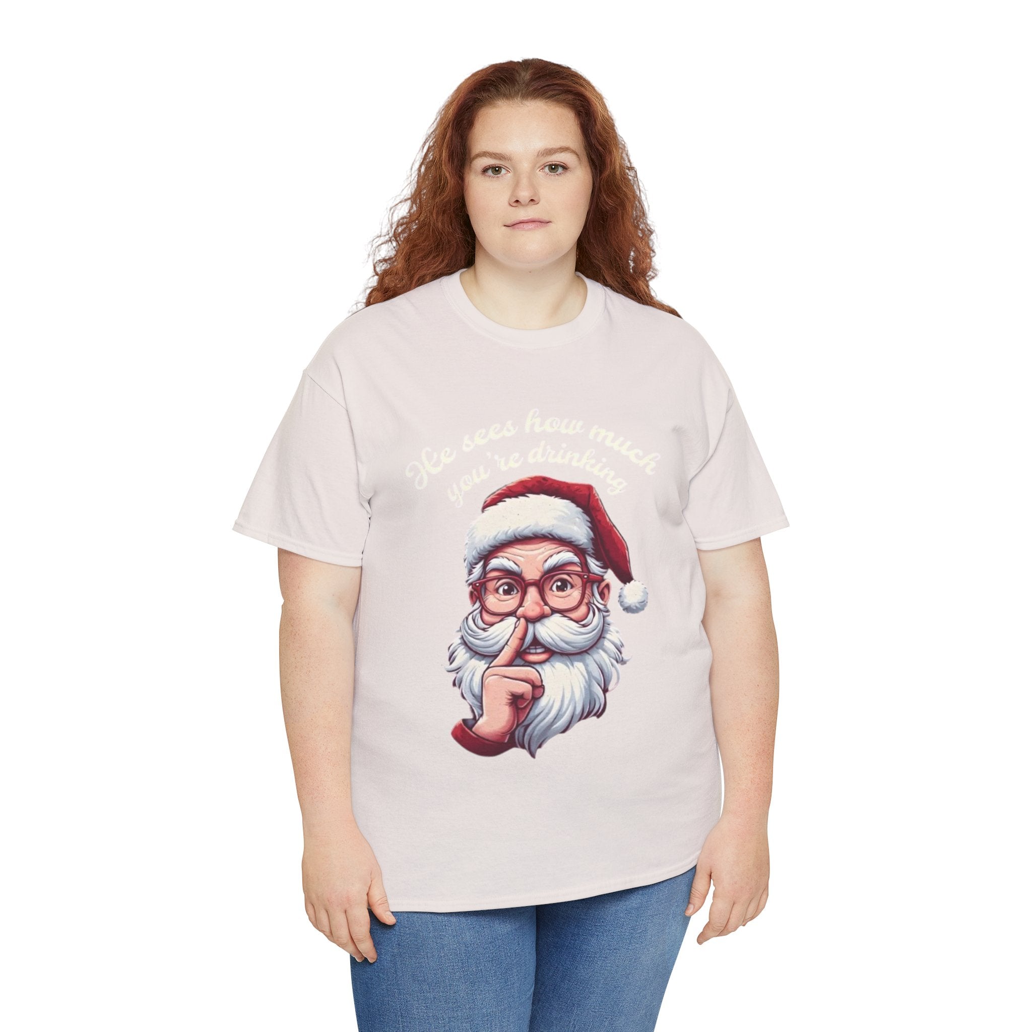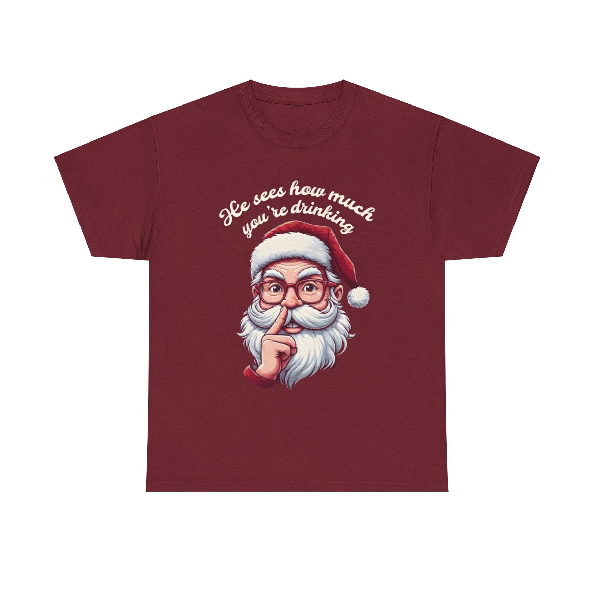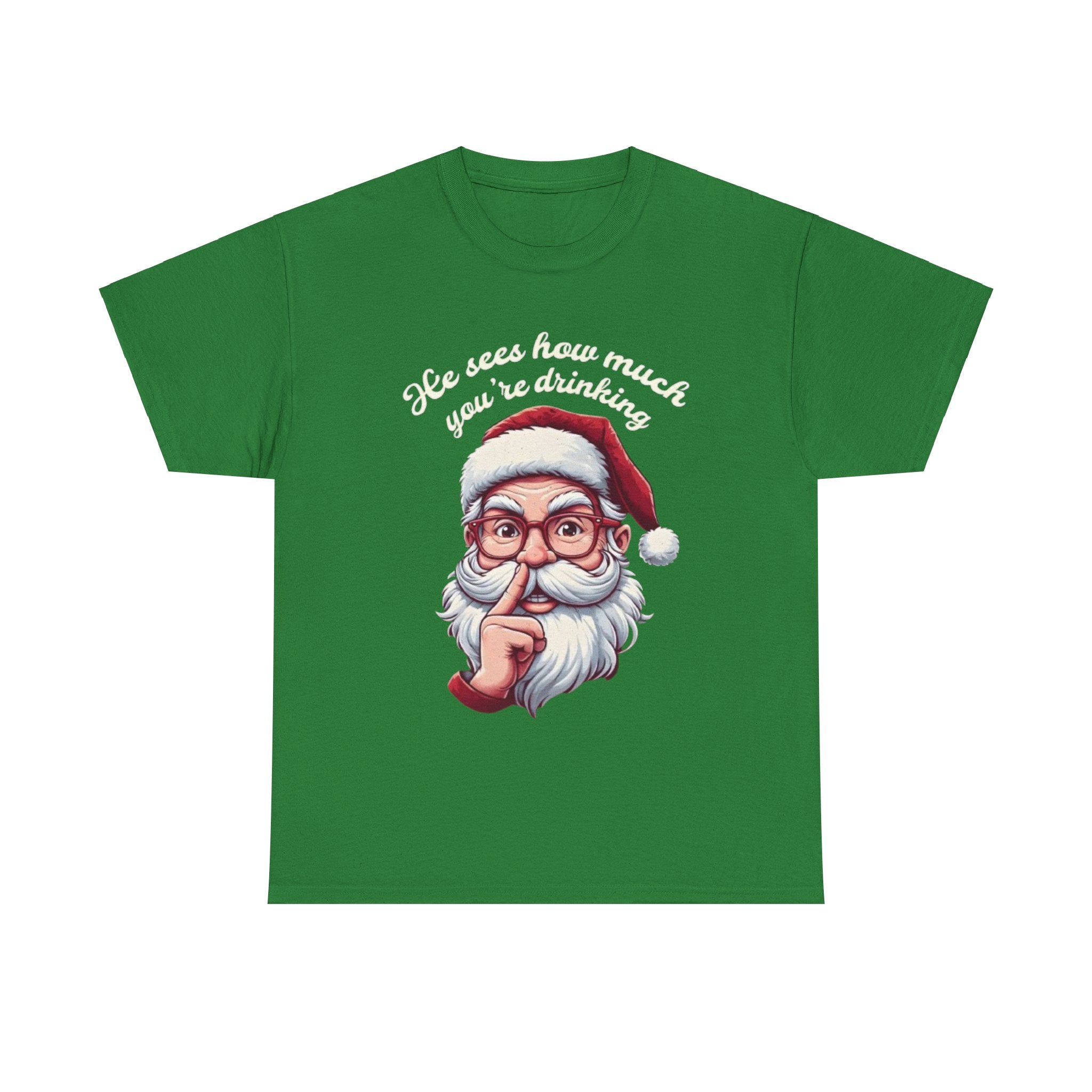 • He Knows how much your are drinking Santa Clause Unisex Heavy Cotton Tee