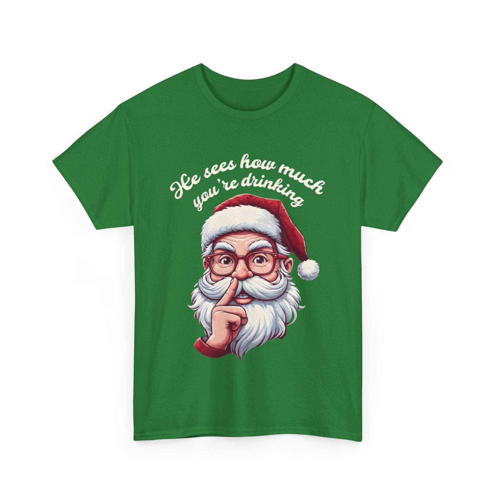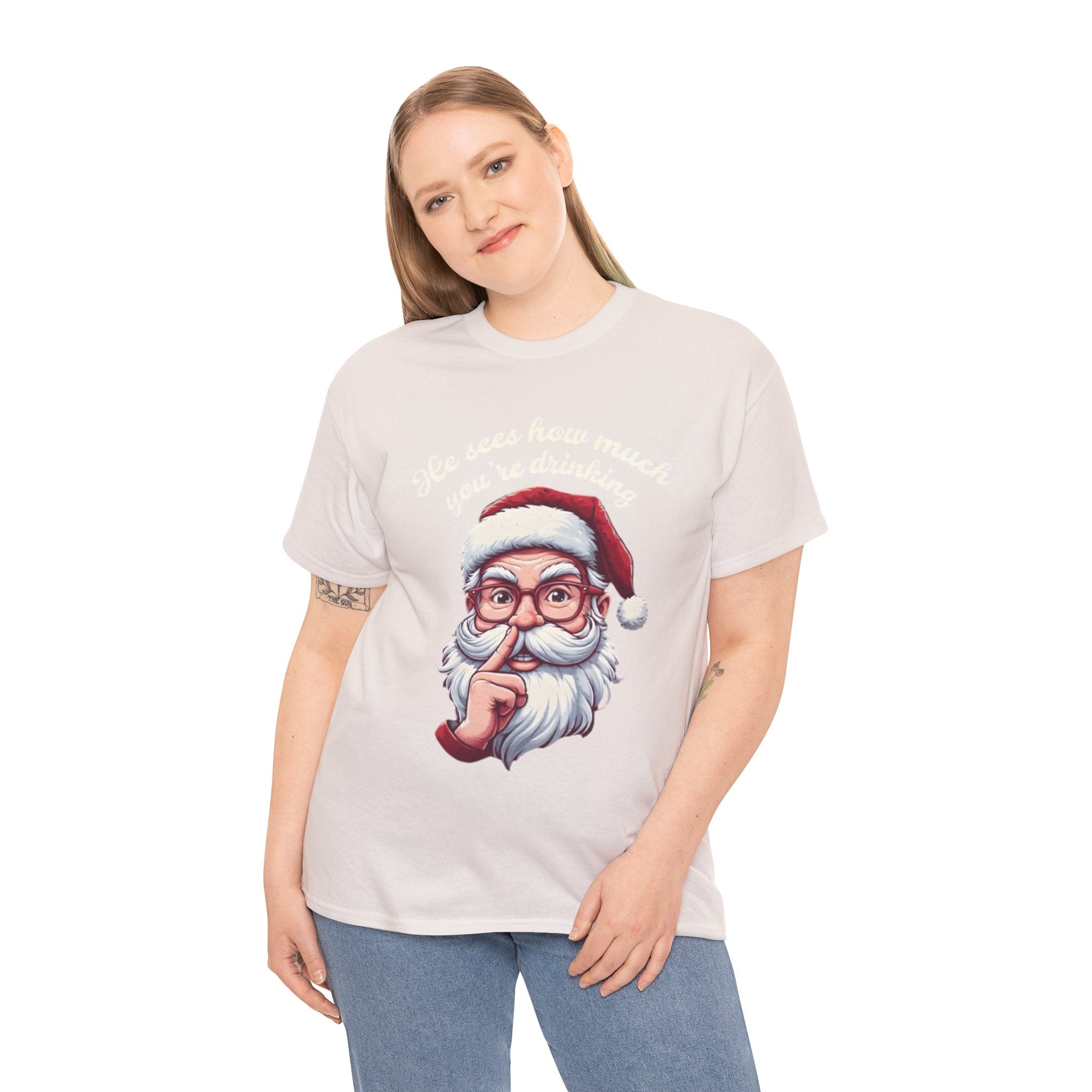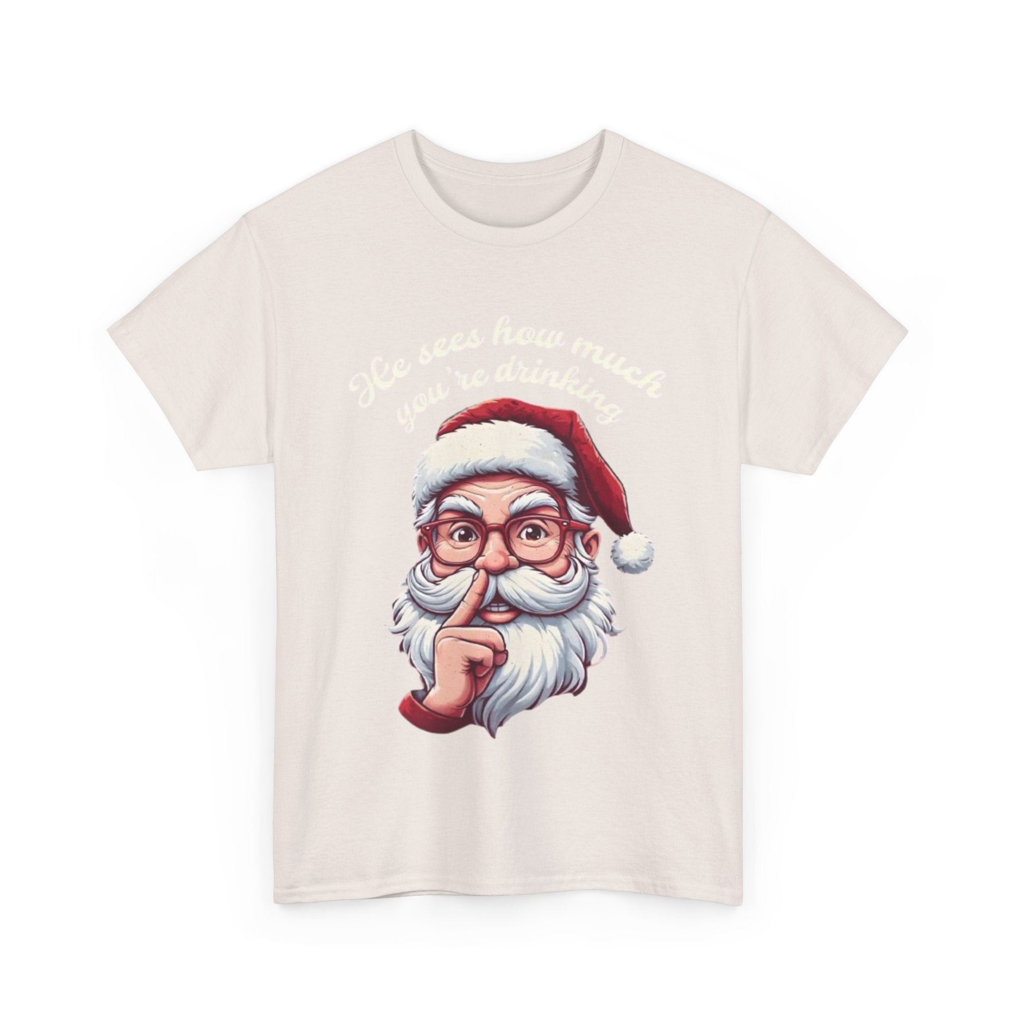 • He Knows how much your are drinking Santa Clause Unisex Heavy Cotton Tee