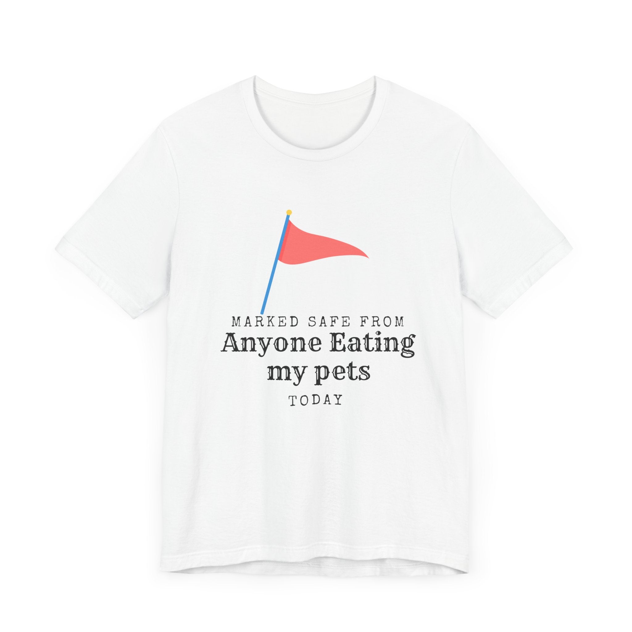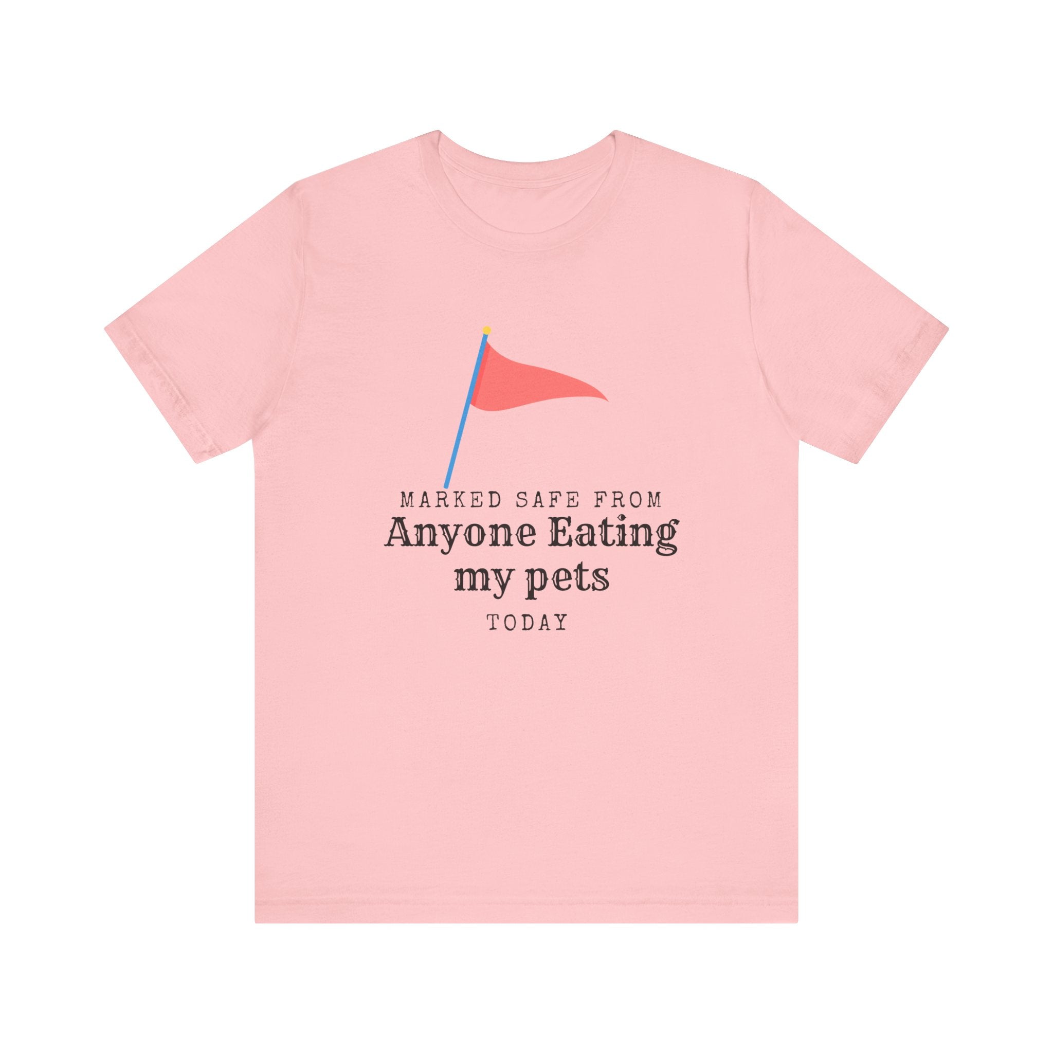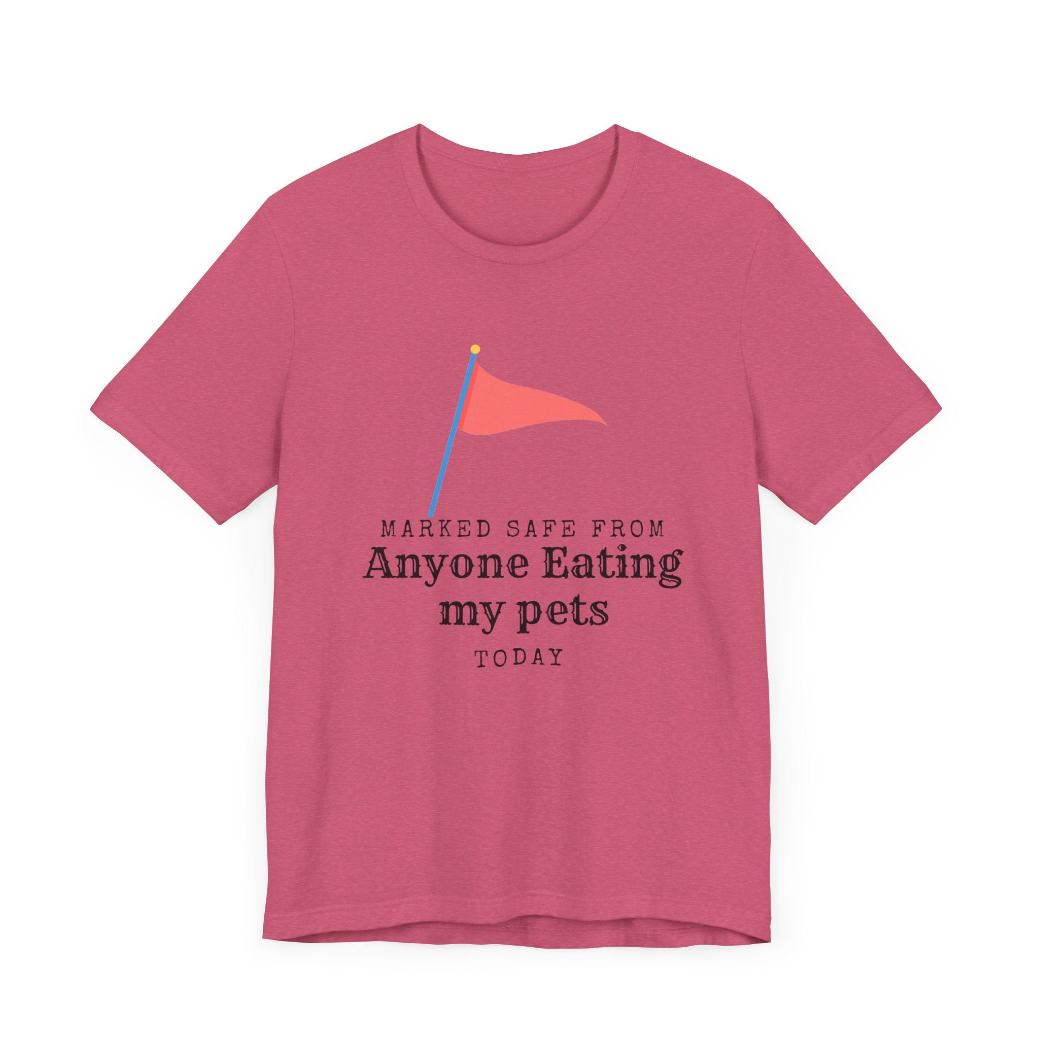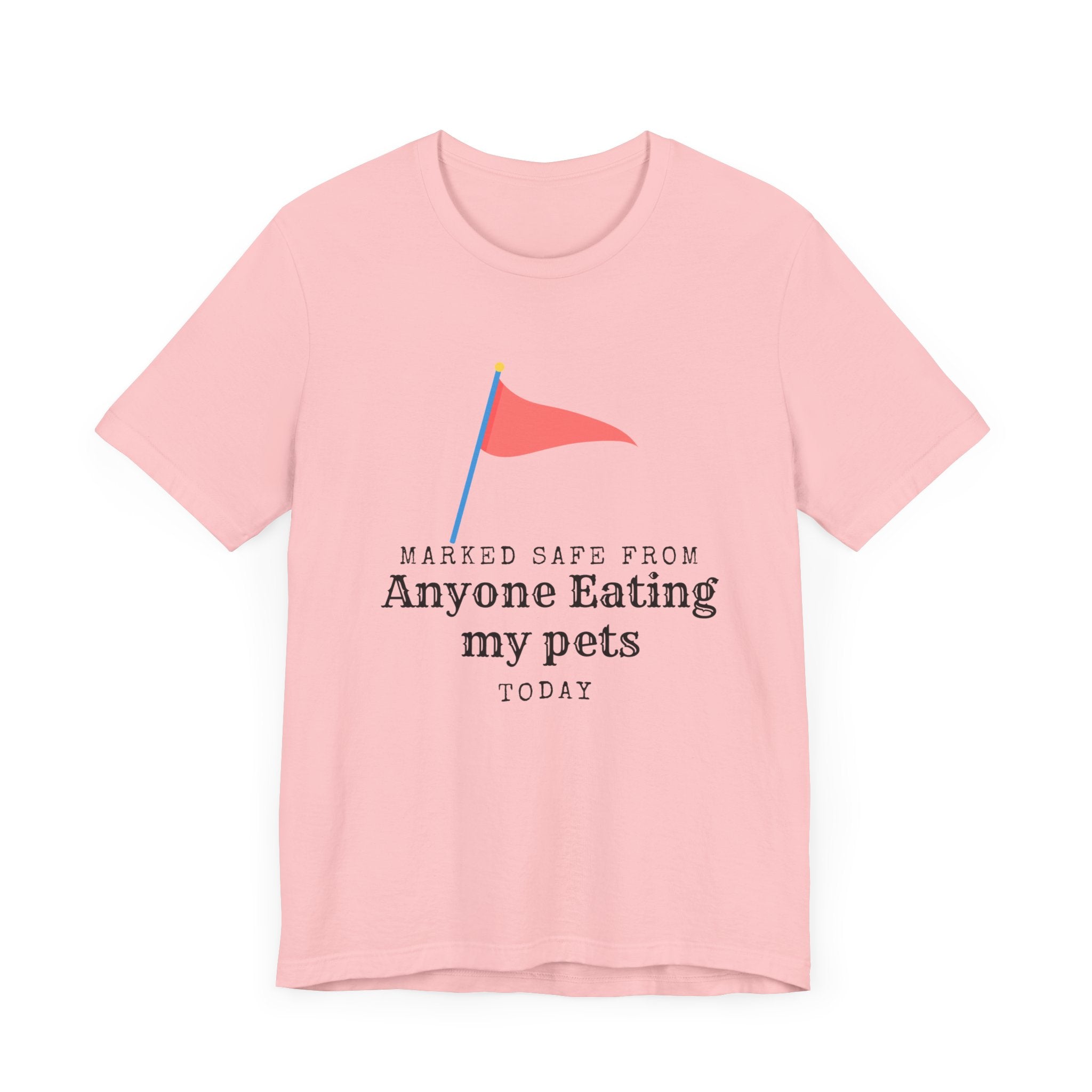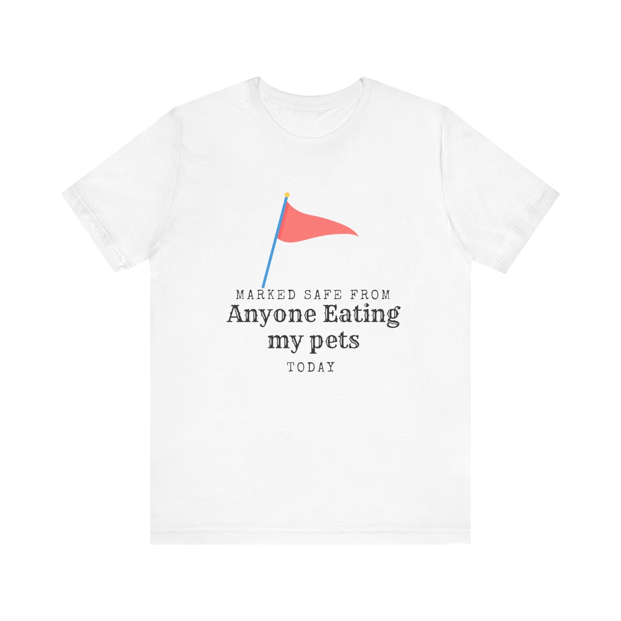 • Marked Safe from my pet being eaten Unisex Jersey Short Sleeve Tee
