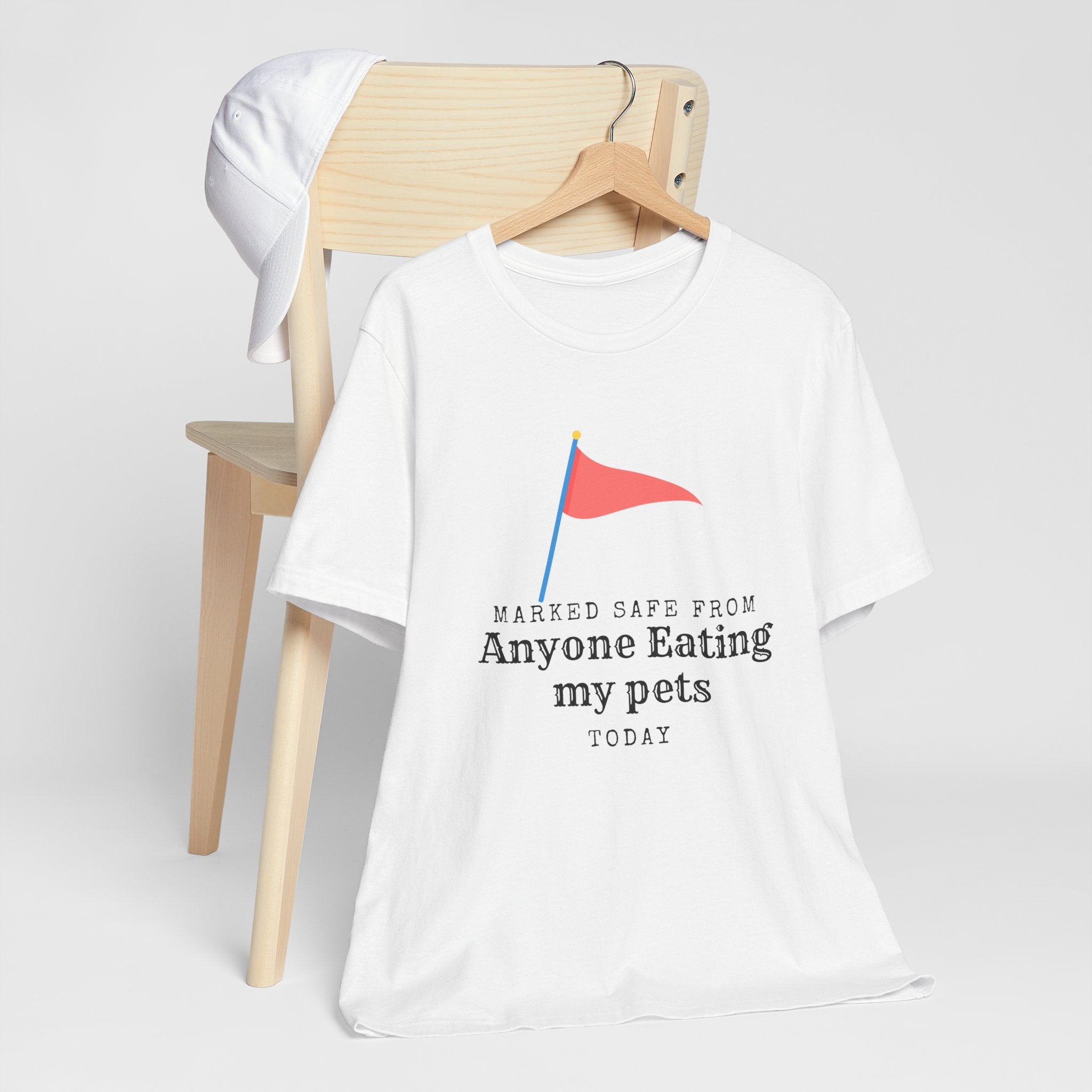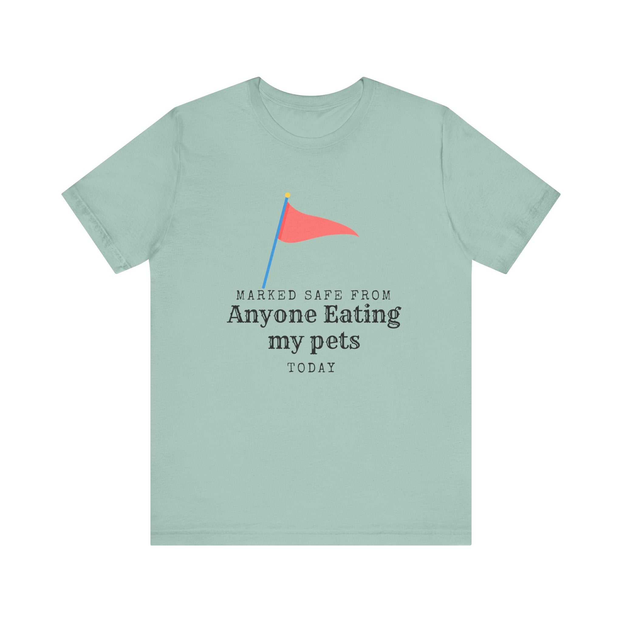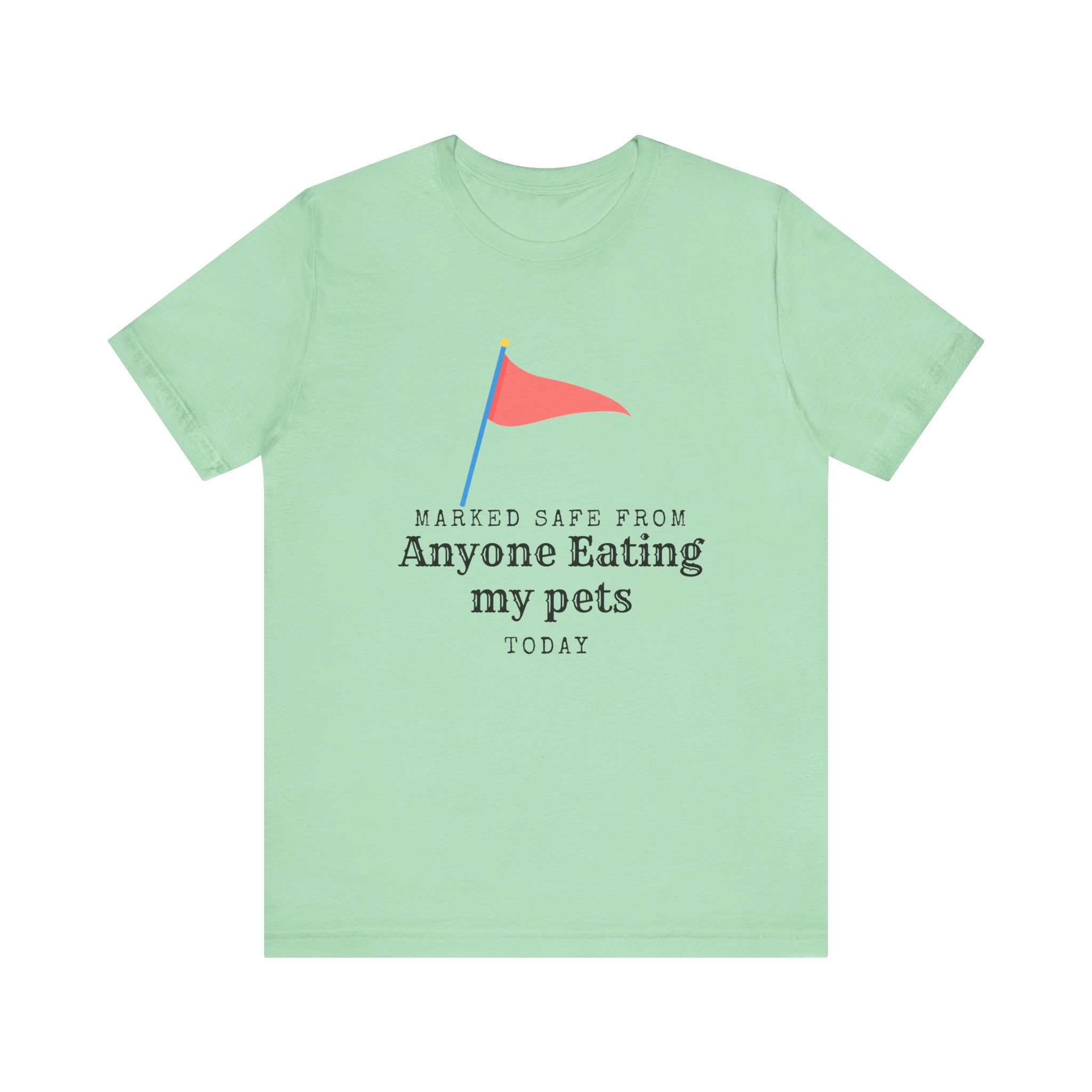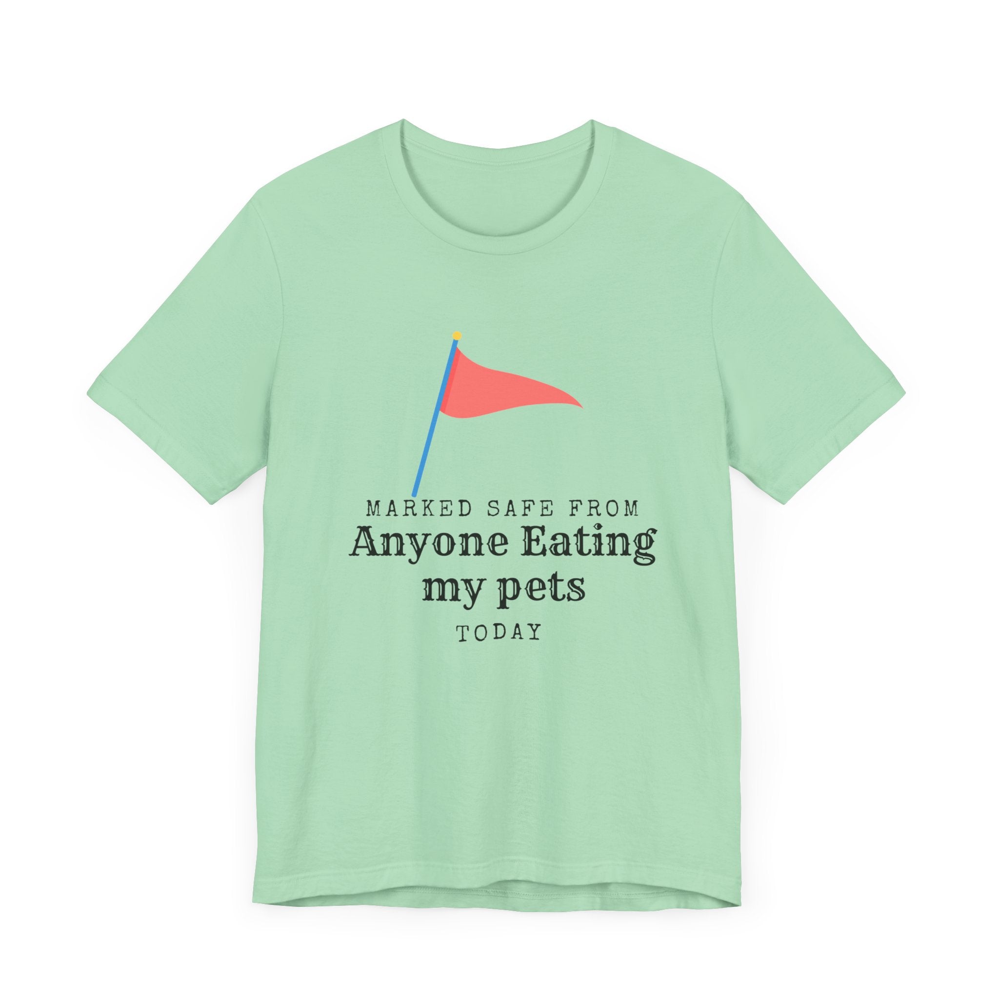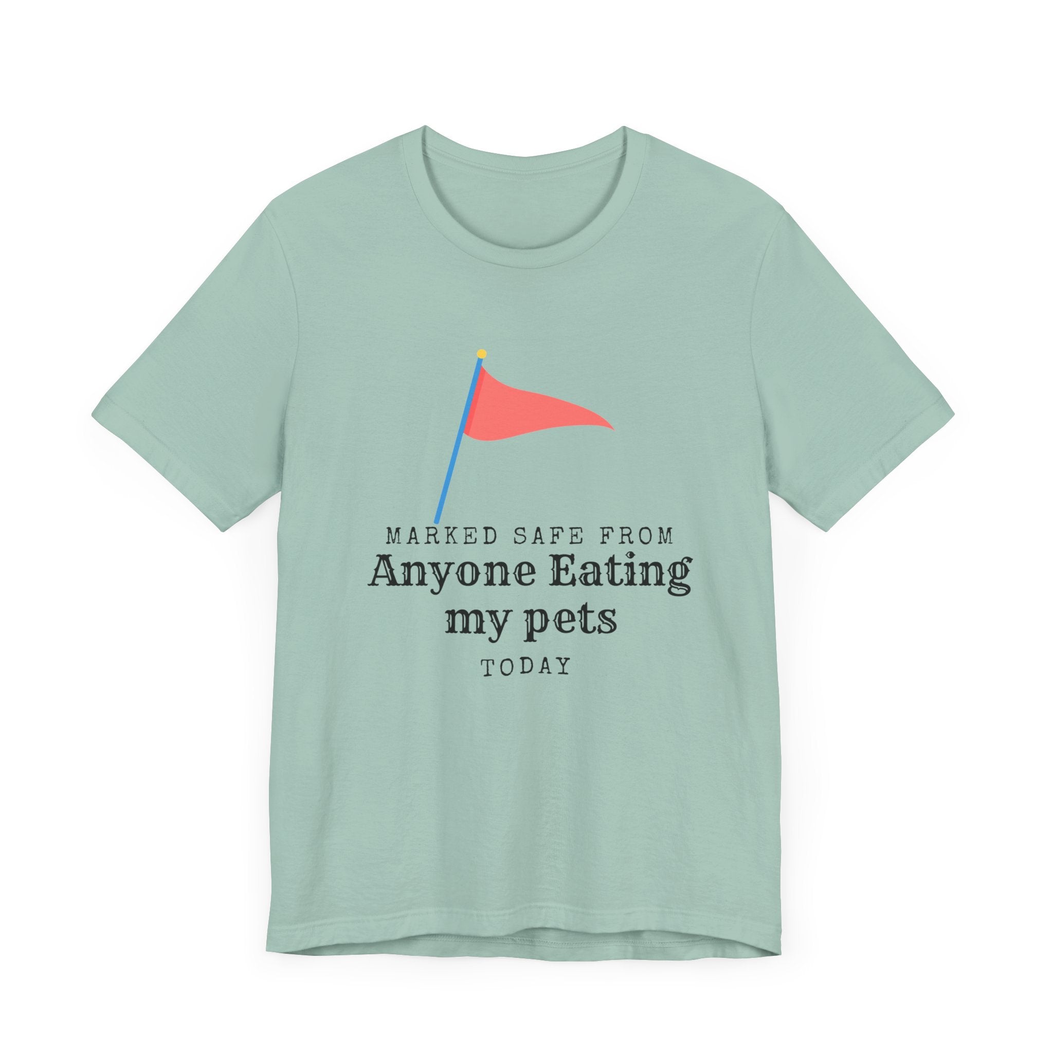 • Marked Safe from my pet being eaten Unisex Jersey Short Sleeve Tee