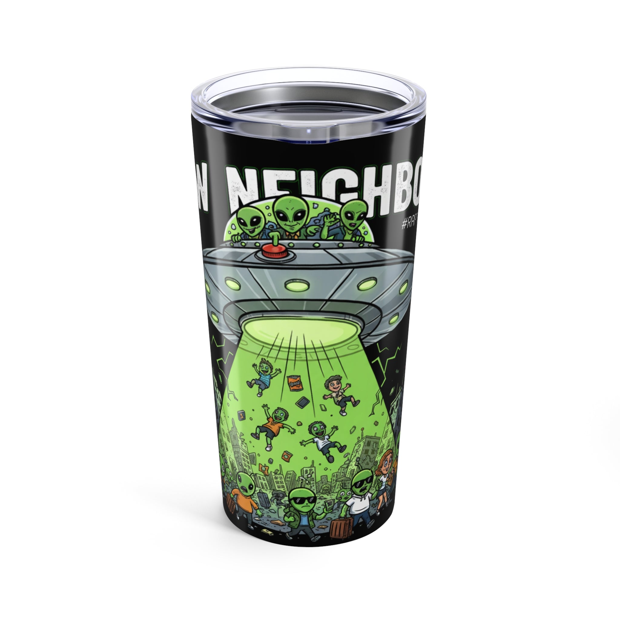 Alien Invasion Tumbler | 20oz Travel Mug for Sci-Fi Lovers, Cool Gift for Birthdays, Alien Enthusiasts, Unique Kitchenware, Fun Decor