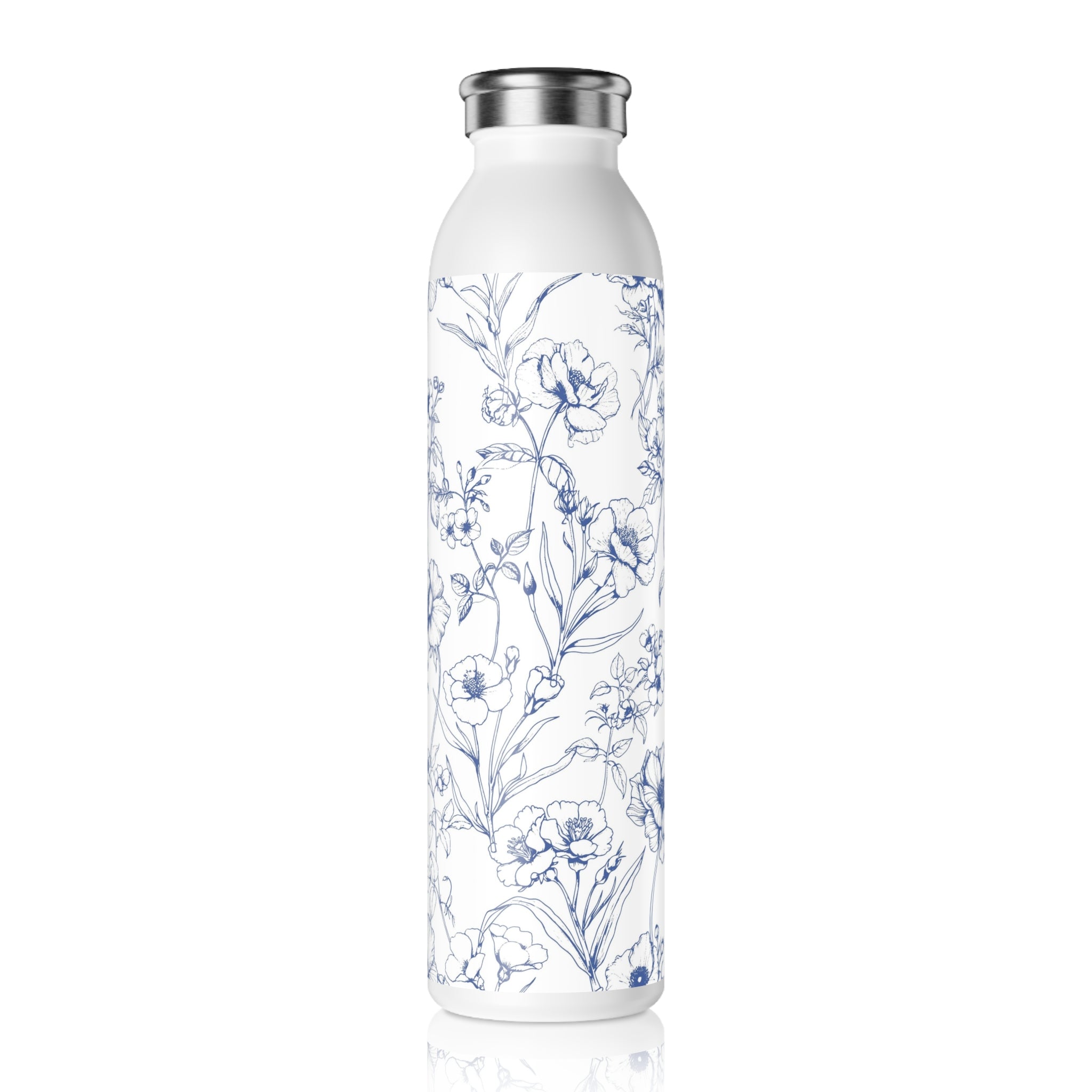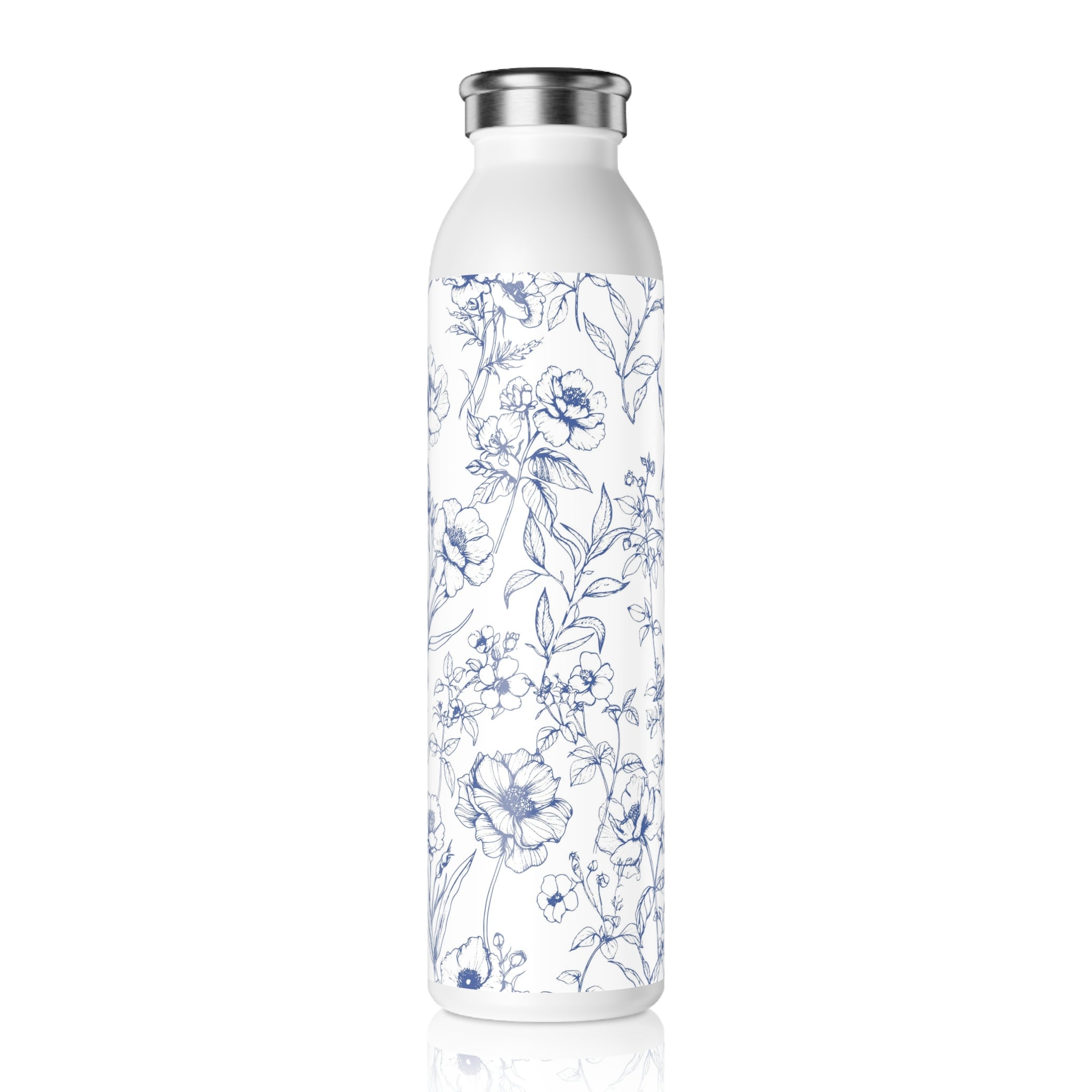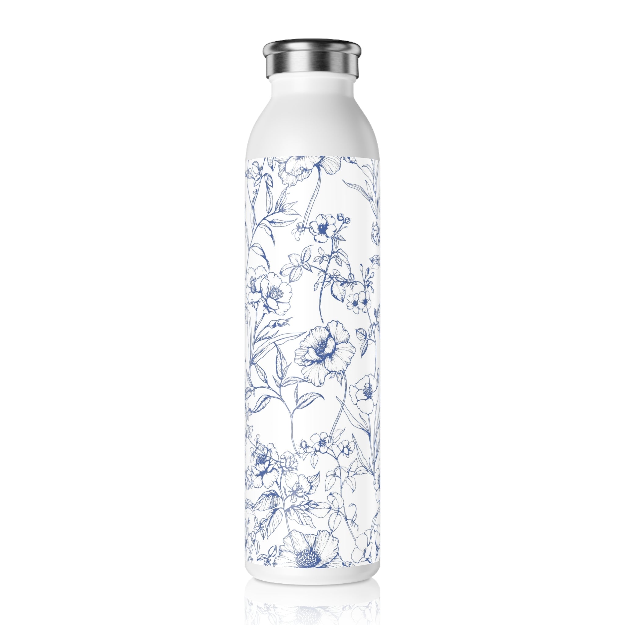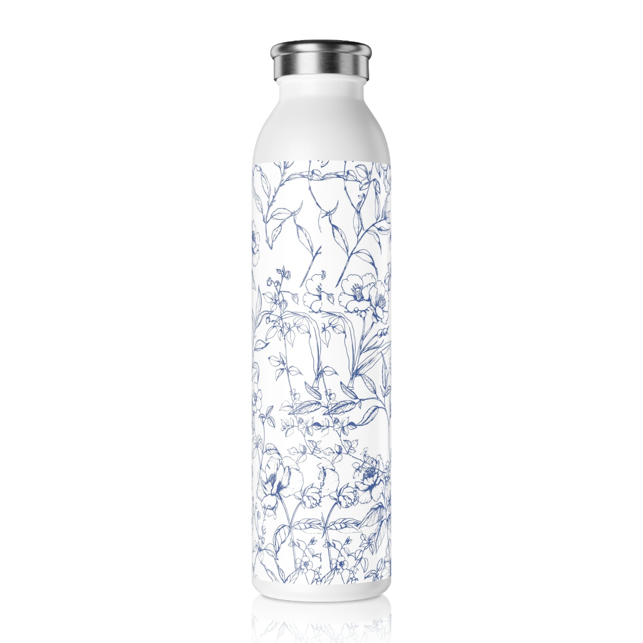 Slim Water Bottle — Blue Floral Sketch Stainless Steel Bottle