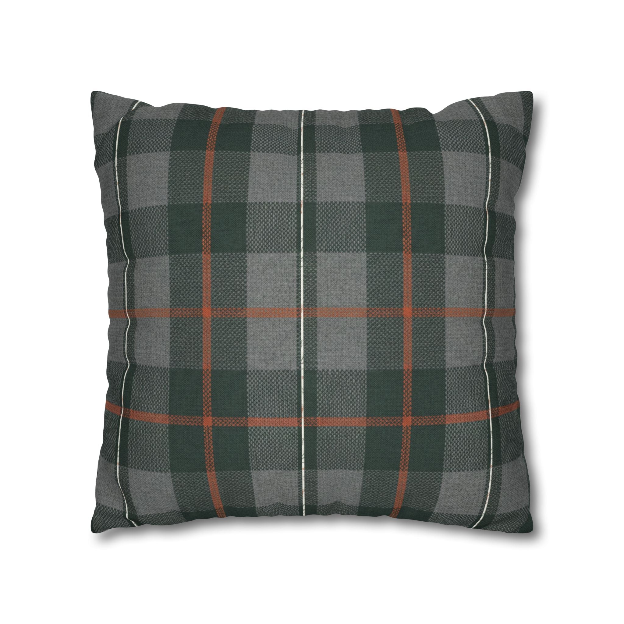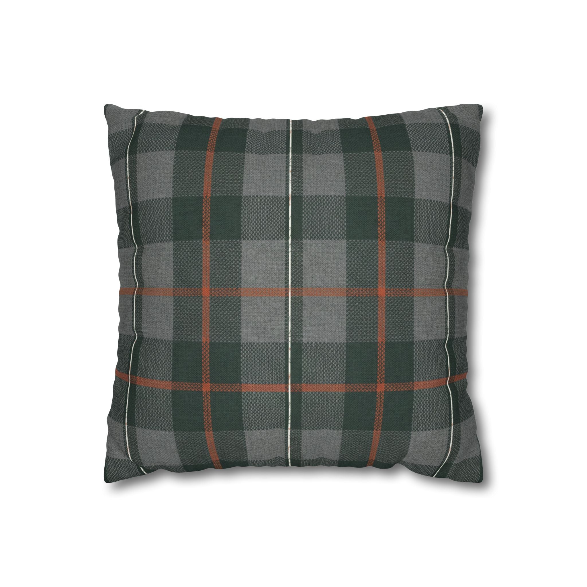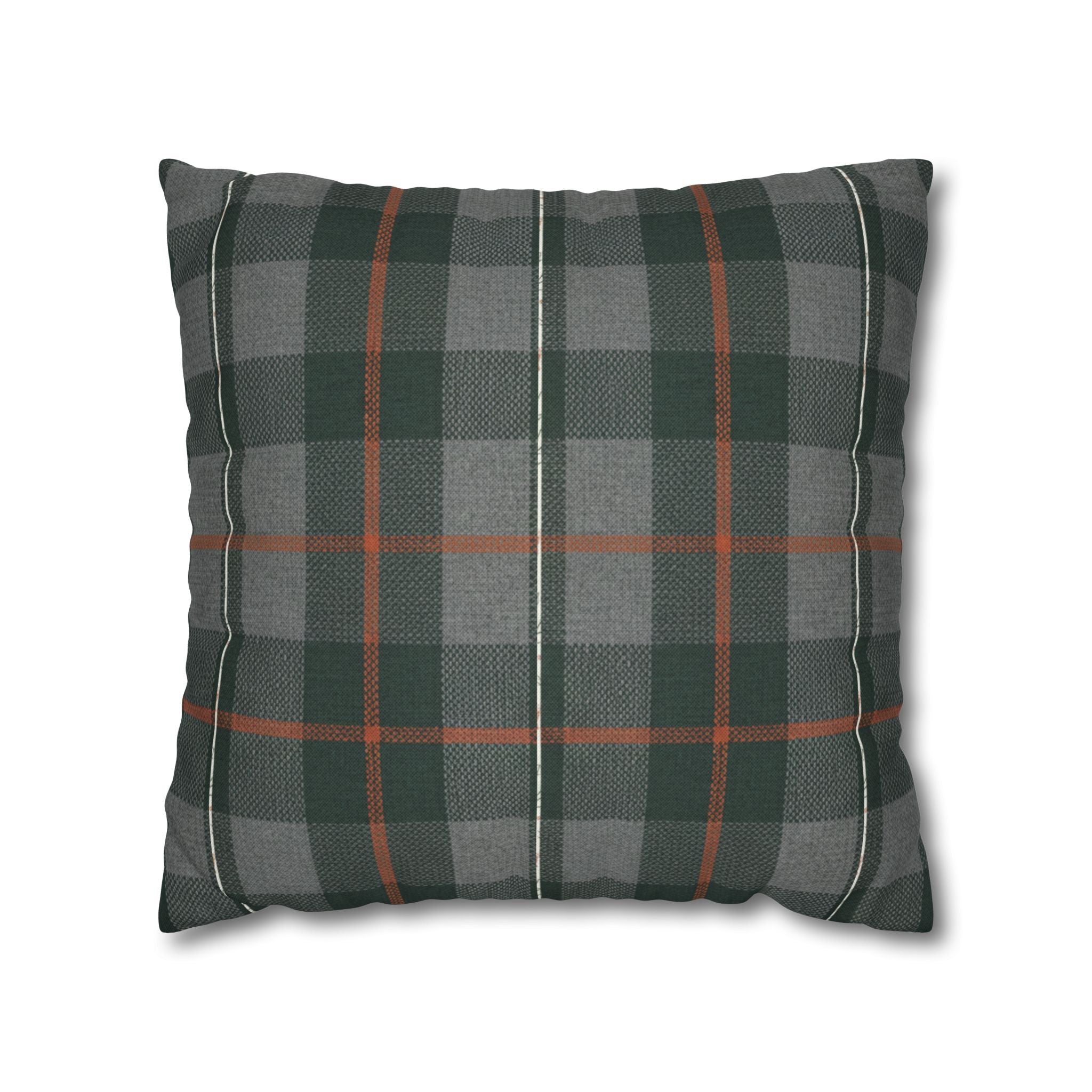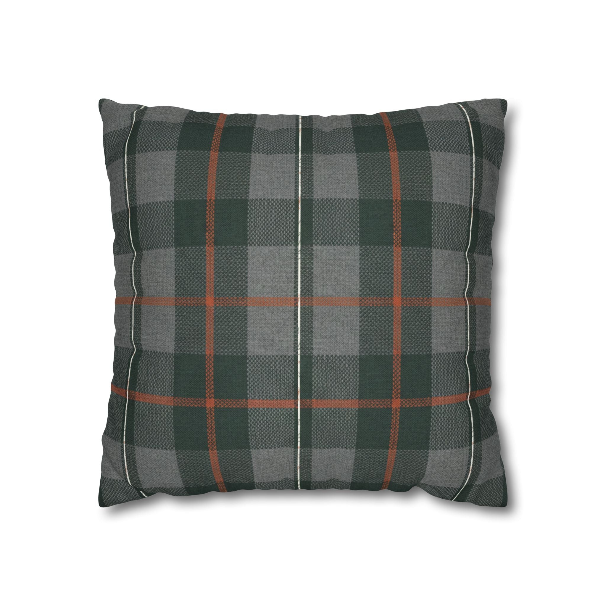 A cozy, double-sided square pillow cover that brings a calm, cabin-like plaid into your living space. The spun polyester fabric holds its shape and hangs smooth—no ironing needed—while a concealed beige zipper keeps the look clean. The muted green and gray tartan with warm rust accents feels quietly autumnal, sliding easily into a reading nook, sofa, or guest bed to add layered texture without shouting. Lightweight and durable, it’s made to be swapped with the seasons and styled alongside natural linens, worn leather, or wooden furniture for an inviting, lived-in feel. (Insert your own pillow — cover only.)