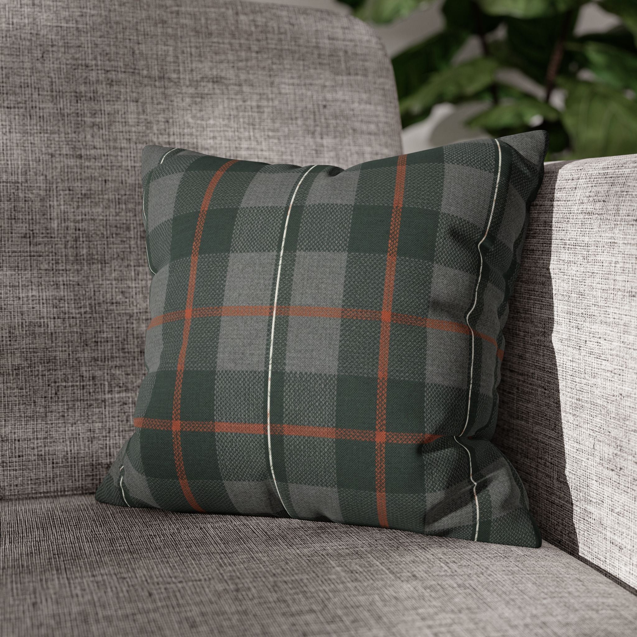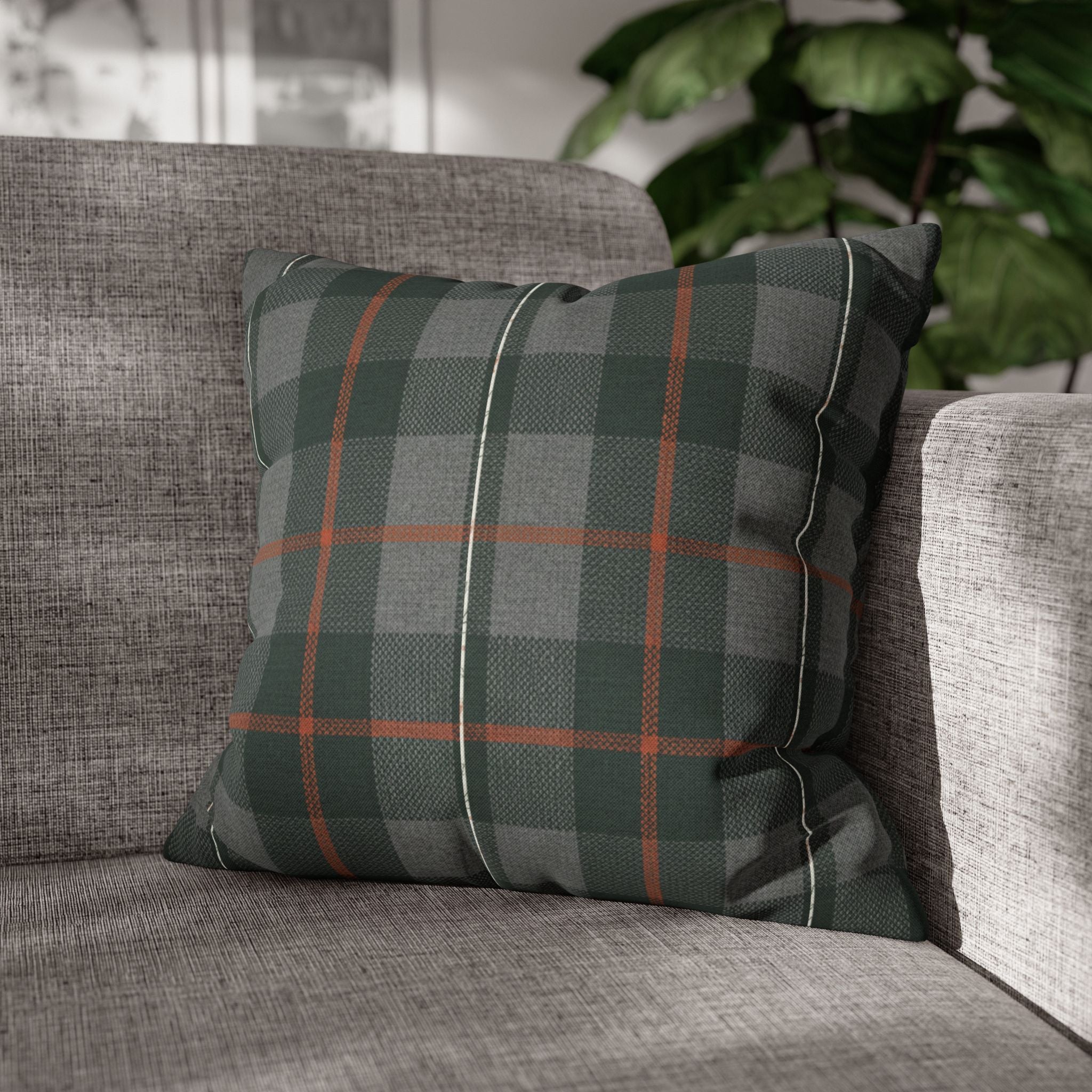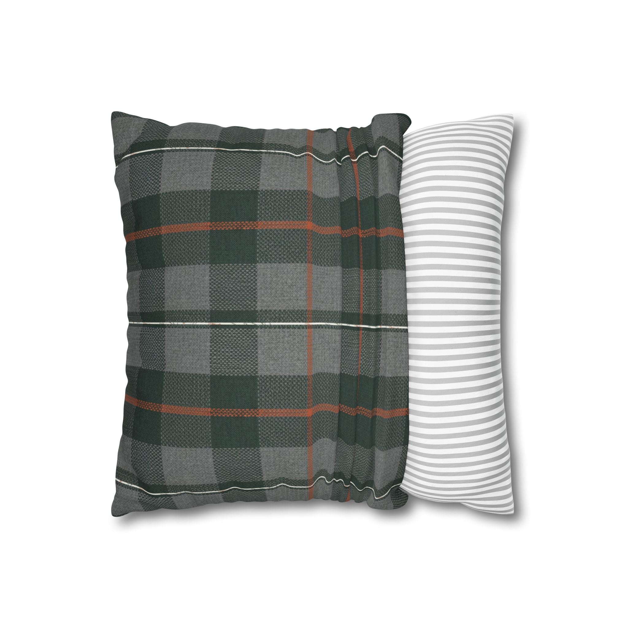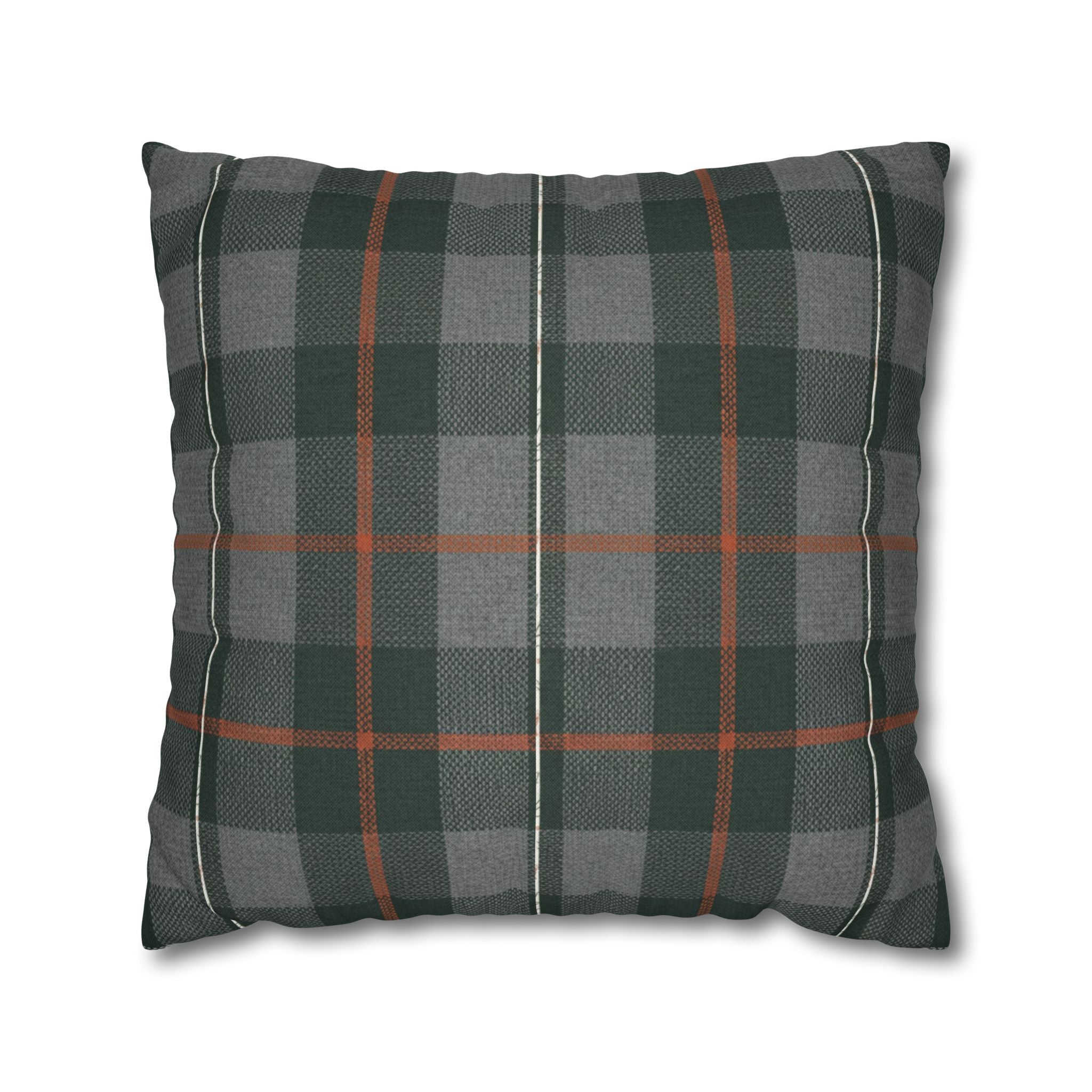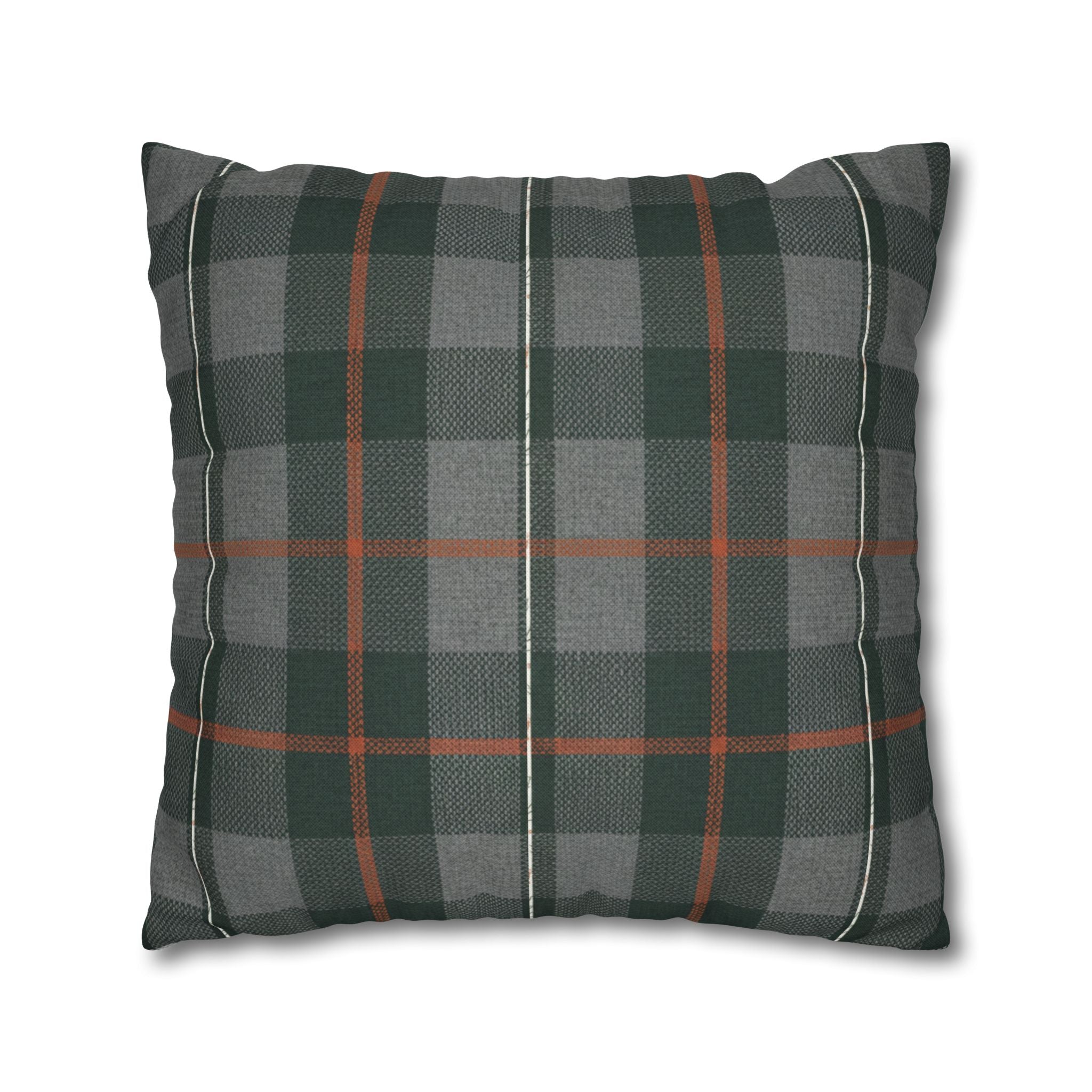 A cozy, double-sided square pillow cover that brings a calm, cabin-like plaid into your living space. The spun polyester fabric holds its shape and hangs smooth—no ironing needed—while a concealed beige zipper keeps the look clean. The muted green and gray tartan with warm rust accents feels quietly autumnal, sliding easily into a reading nook, sofa, or guest bed to add layered texture without shouting. Lightweight and durable, it’s made to be swapped with the seasons and styled alongside natural linens, worn leather, or wooden furniture for an inviting, lived-in feel. (Insert your own pillow — cover only.)