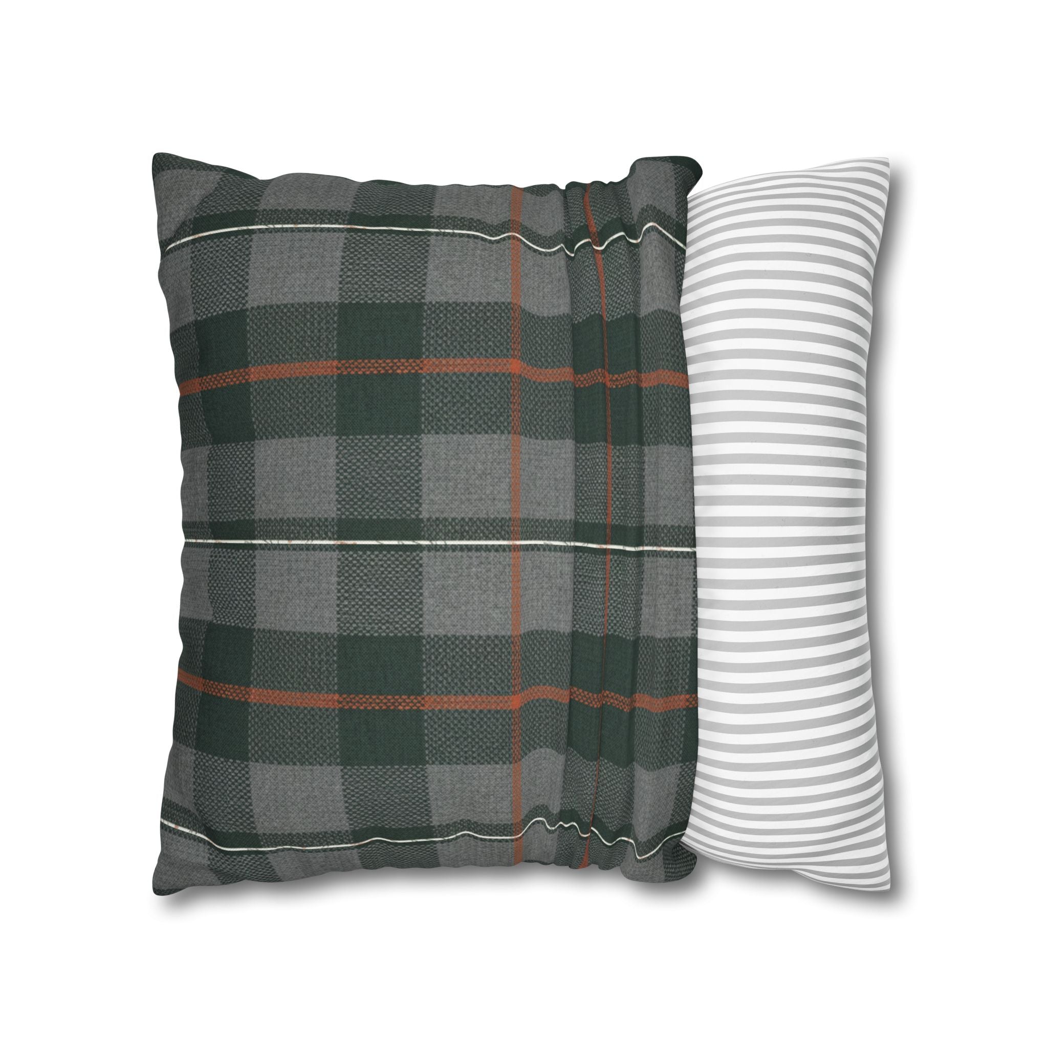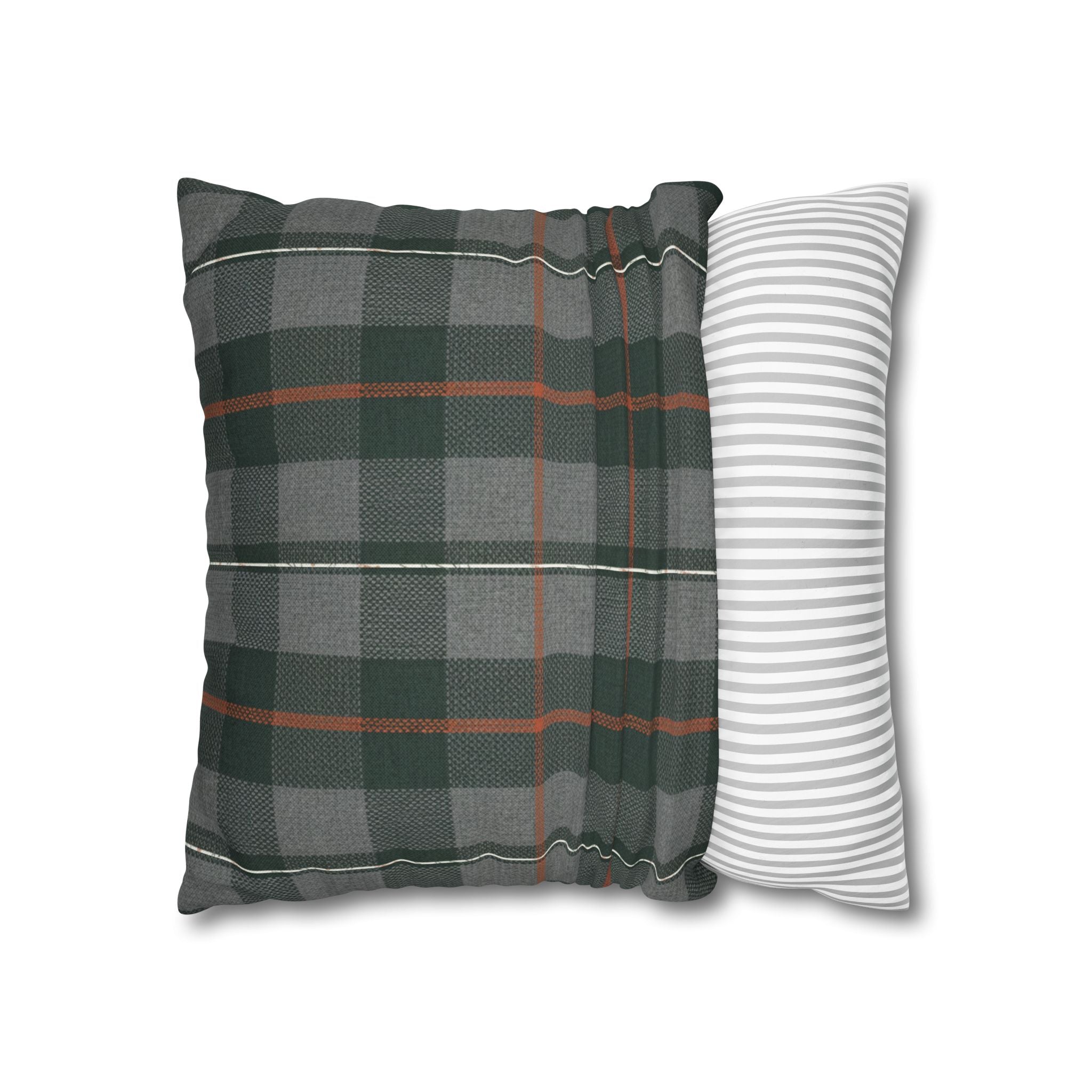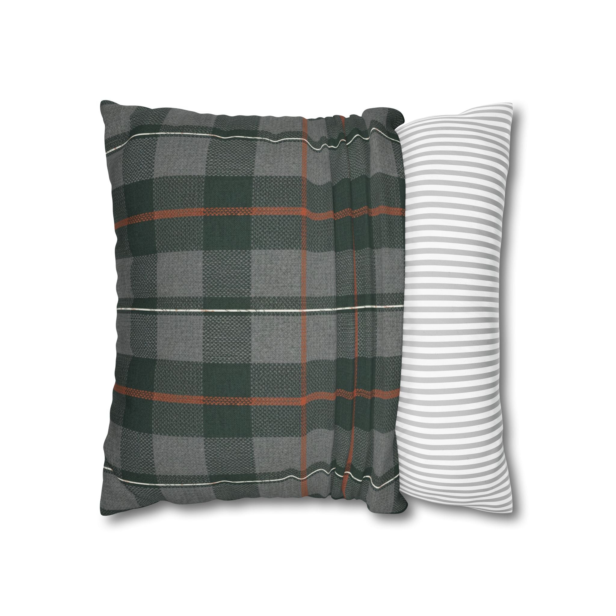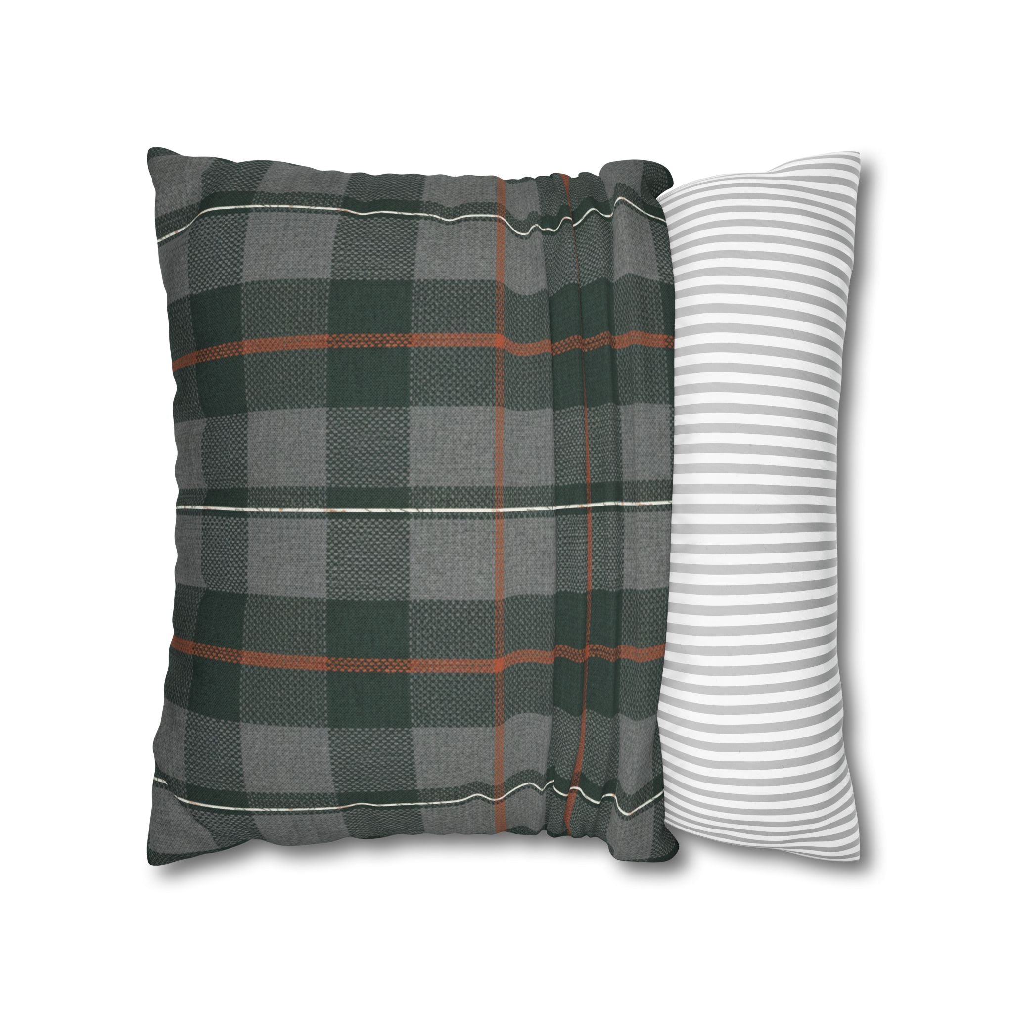 A cozy, double-sided square pillow cover that brings a calm, cabin-like plaid into your living space. The spun polyester fabric holds its shape and hangs smooth—no ironing needed—while a concealed beige zipper keeps the look clean. The muted green and gray tartan with warm rust accents feels quietly autumnal, sliding easily into a reading nook, sofa, or guest bed to add layered texture without shouting. Lightweight and durable, it’s made to be swapped with the seasons and styled alongside natural linens, worn leather, or wooden furniture for an inviting, lived-in feel. (Insert your own pillow — cover only.)