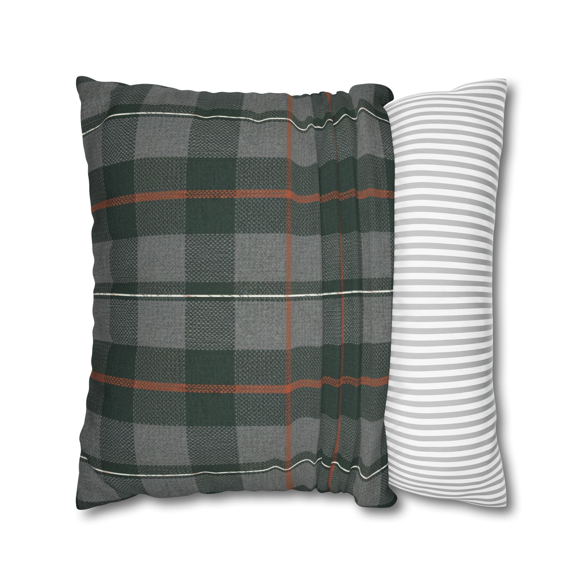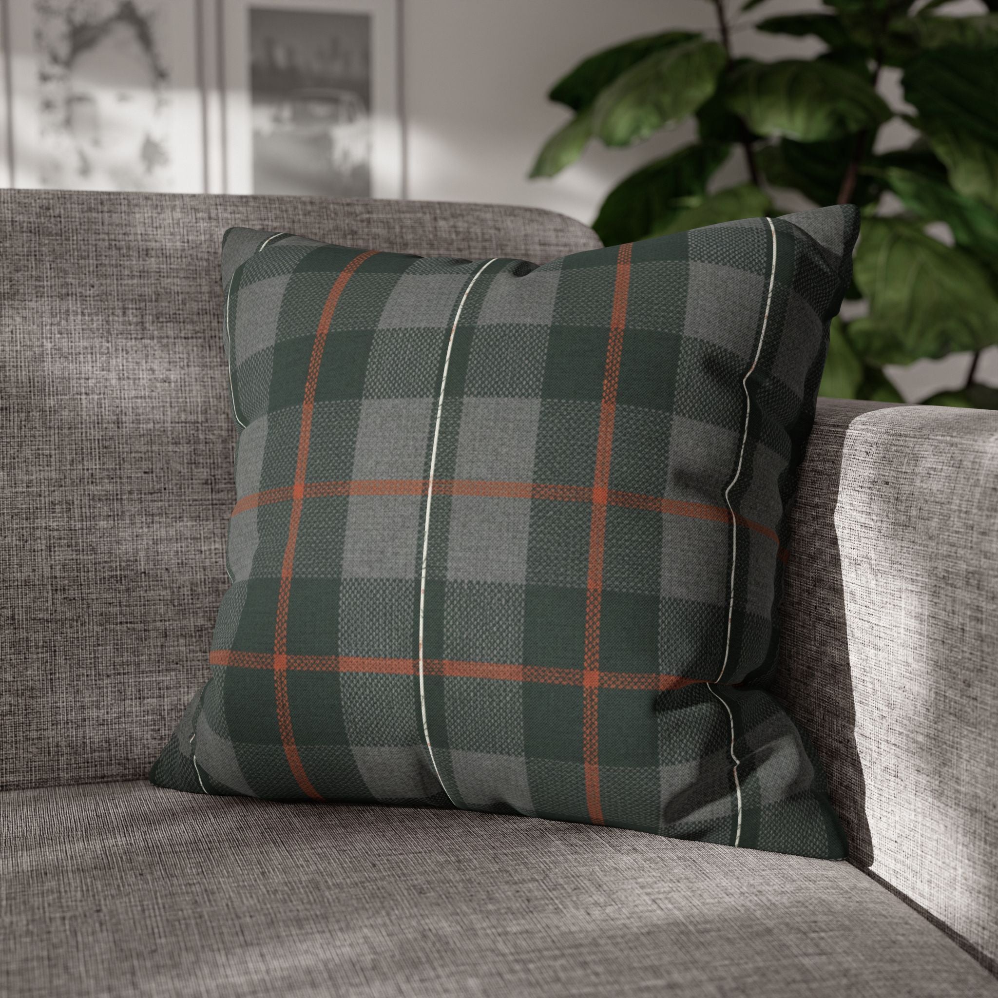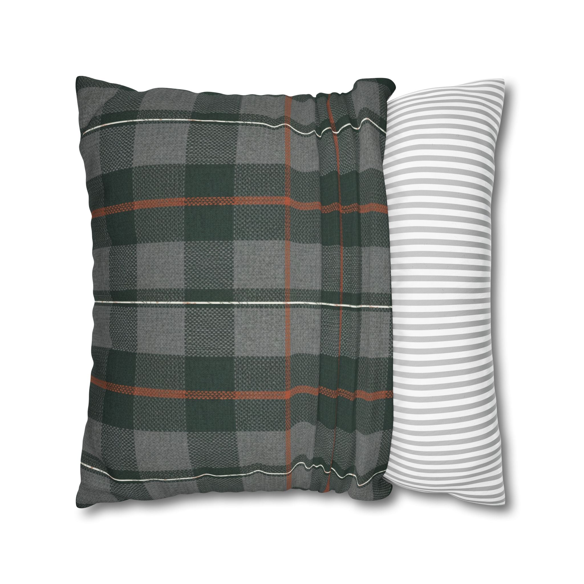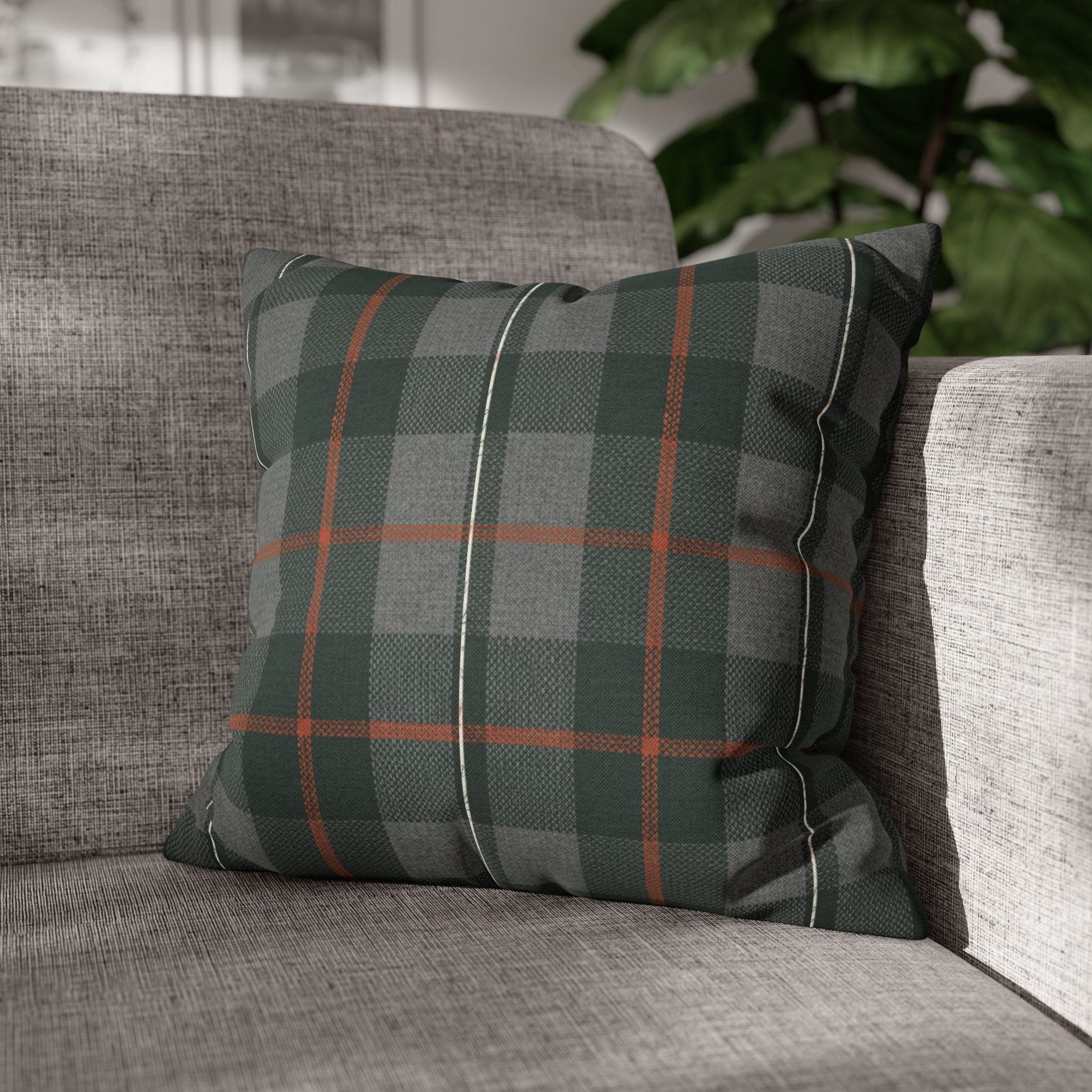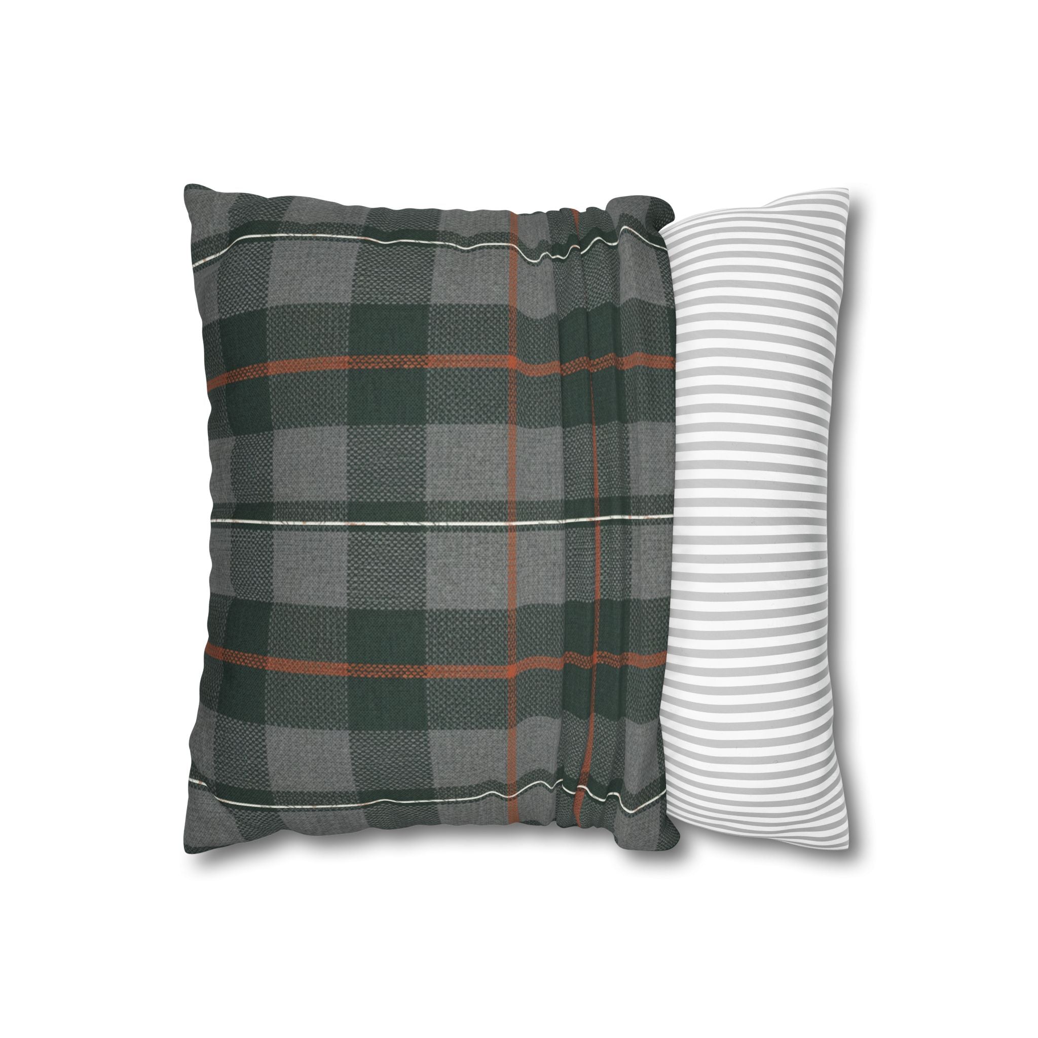 A cozy, double-sided square pillow cover that brings a calm, cabin-like plaid into your living space. The spun polyester fabric holds its shape and hangs smooth—no ironing needed—while a concealed beige zipper keeps the look clean. The muted green and gray tartan with warm rust accents feels quietly autumnal, sliding easily into a reading nook, sofa, or guest bed to add layered texture without shouting. Lightweight and durable, it’s made to be swapped with the seasons and styled alongside natural linens, worn leather, or wooden furniture for an inviting, lived-in feel. (Insert your own pillow — cover only.)