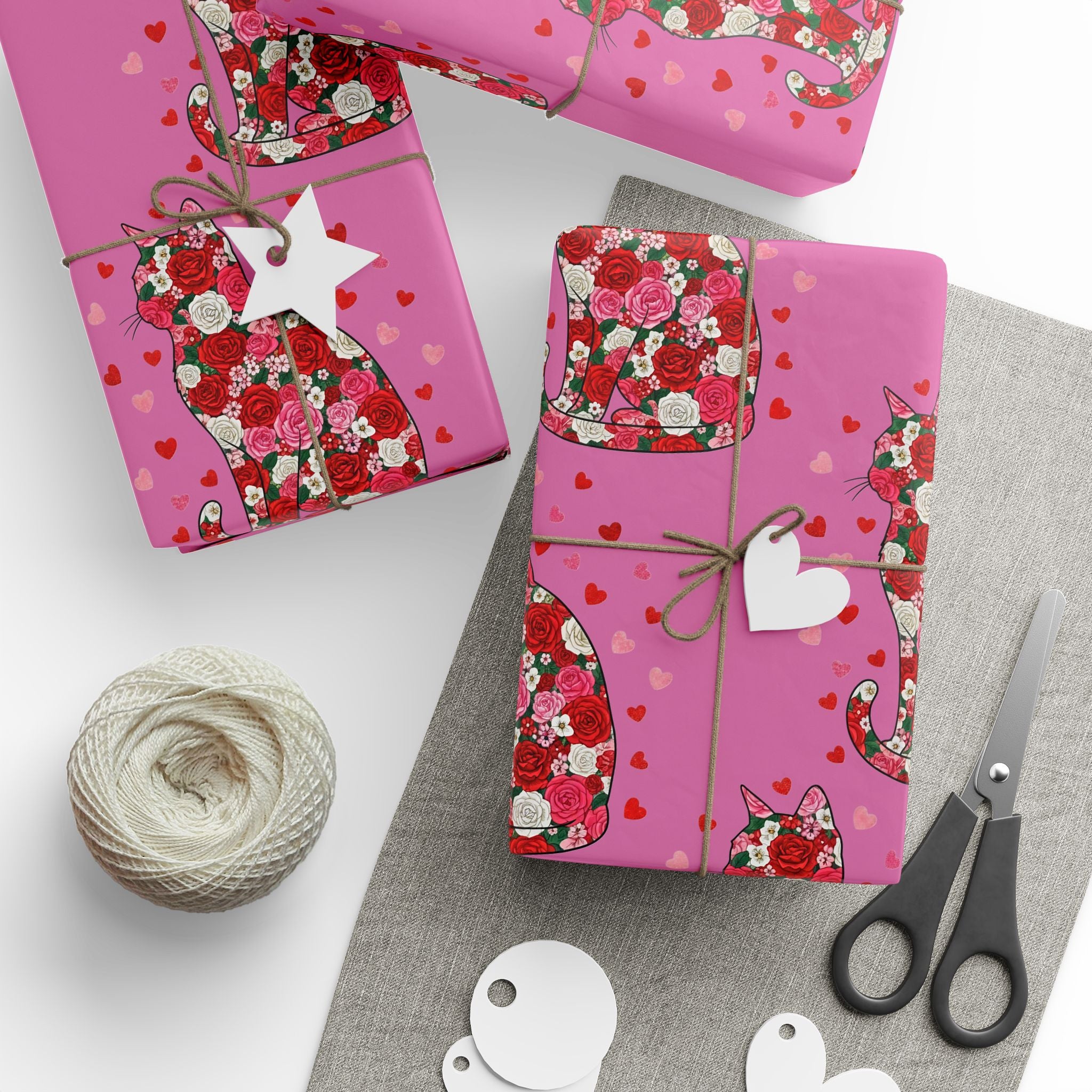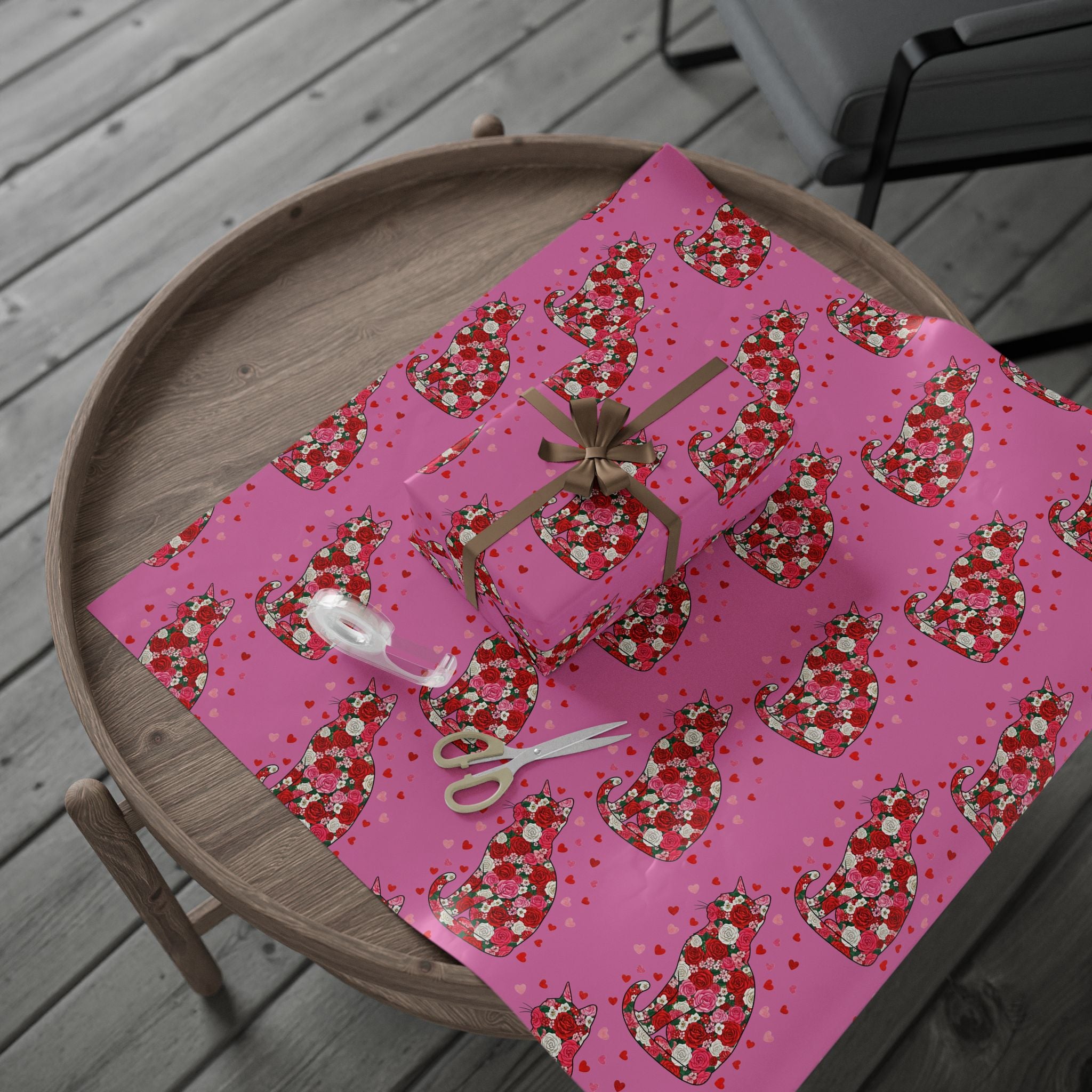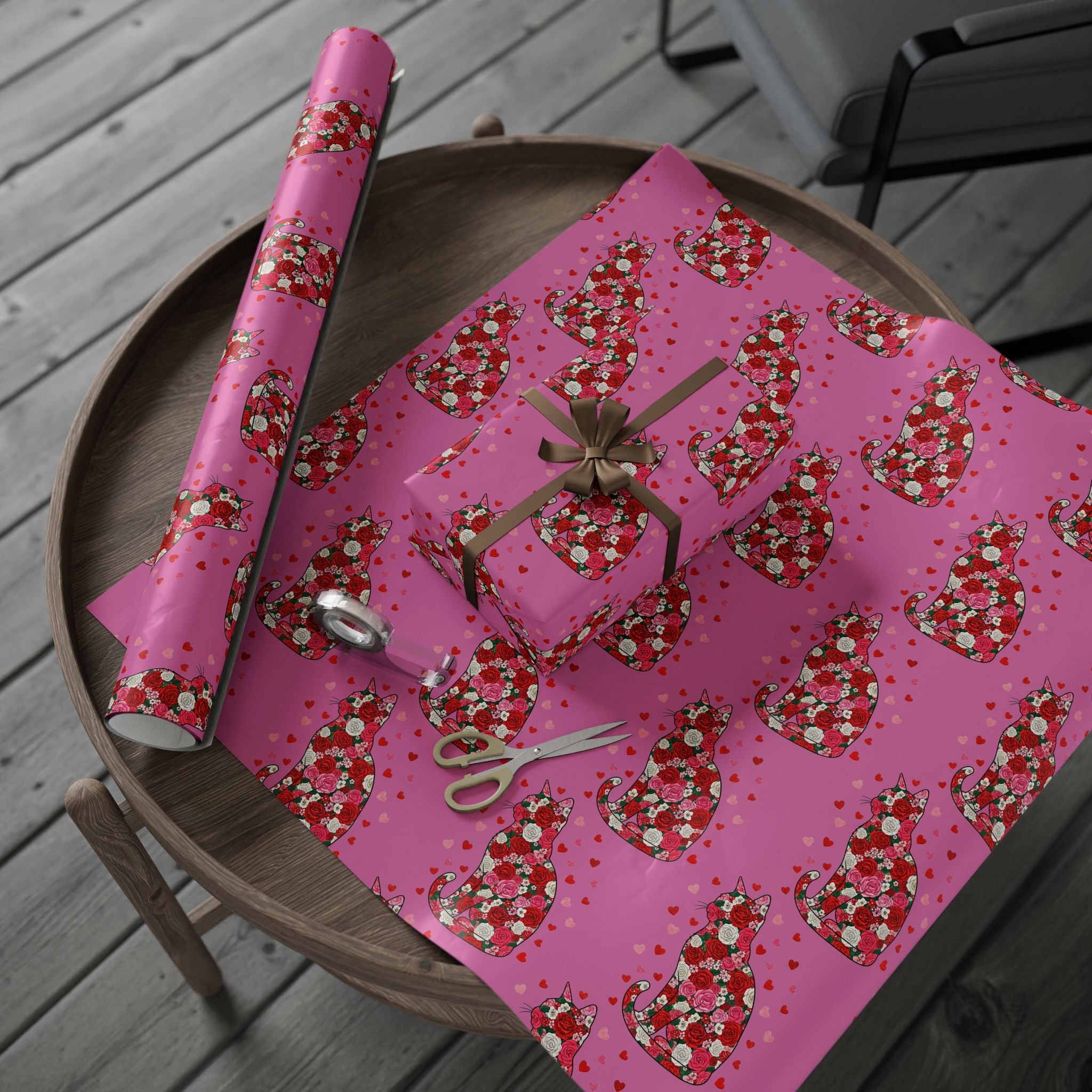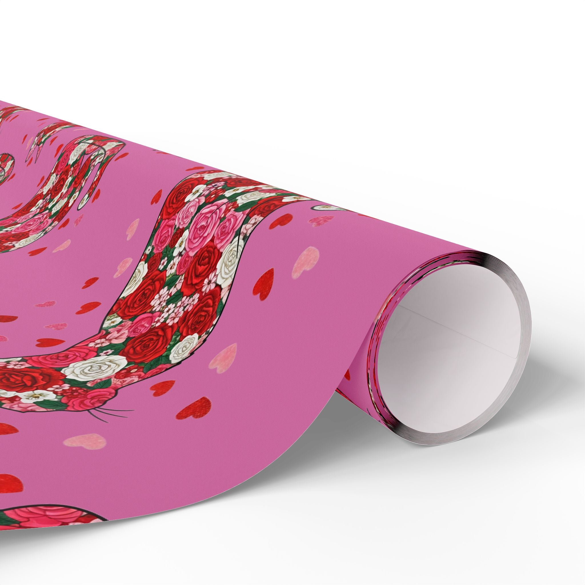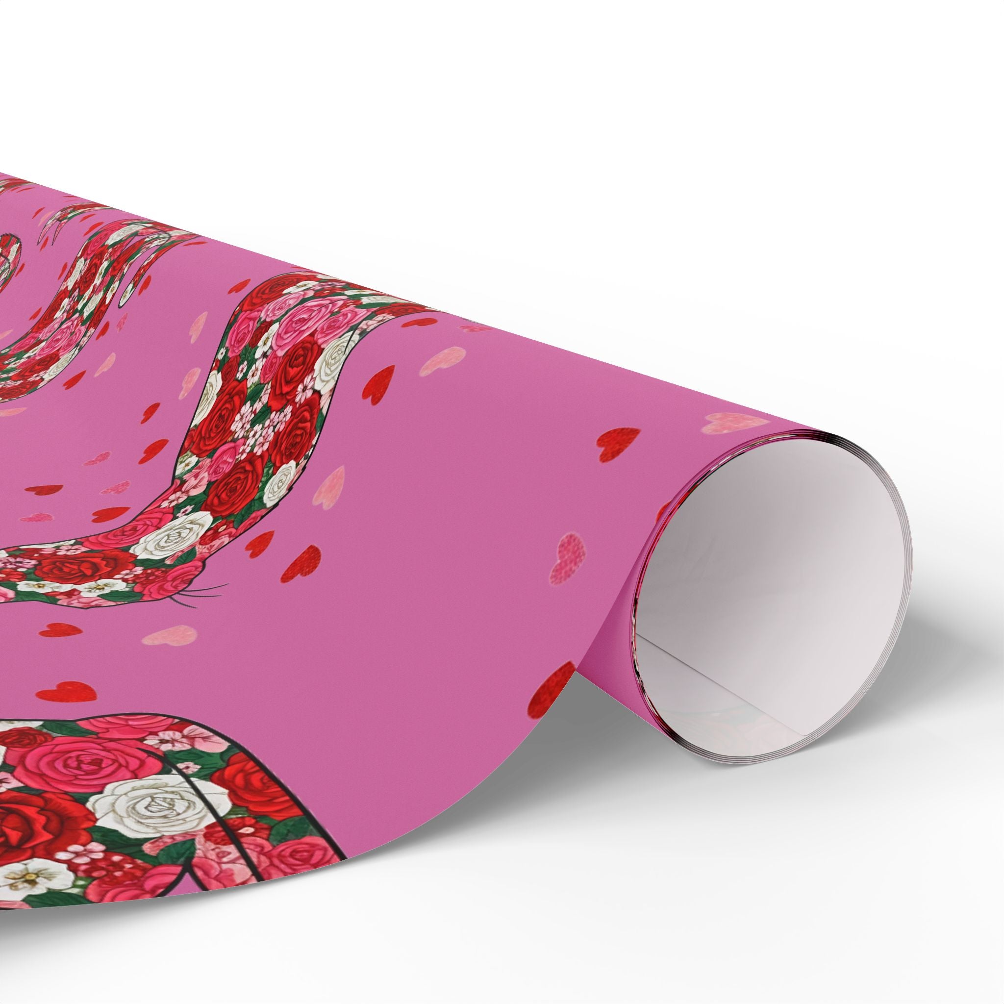 Valentine Rose Heart Wrapping Paper Roll — Pink Floral Gift Wrap for Anniversary & Romance