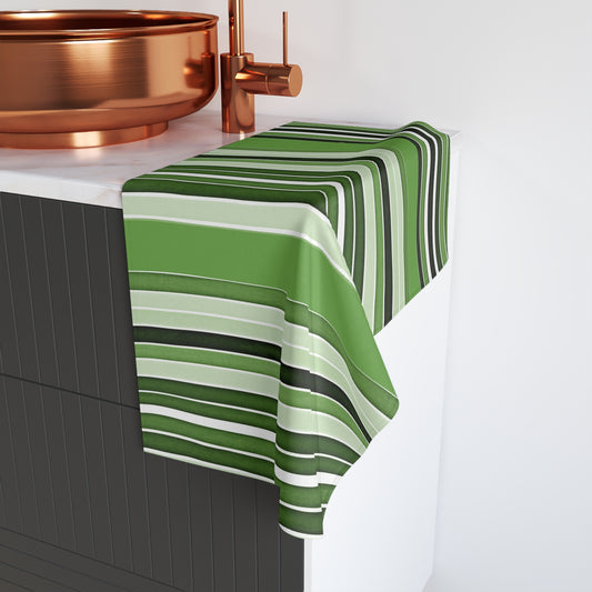Stripe + Stich Green Striped Bath Towel — Lightweight Mint & Olive Cotton Blend