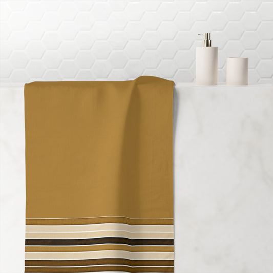 Stripe + Stich Mink Cotton Bath Towel — Brown Striped Border, Soft Absorbent Bath & Pool Towel
