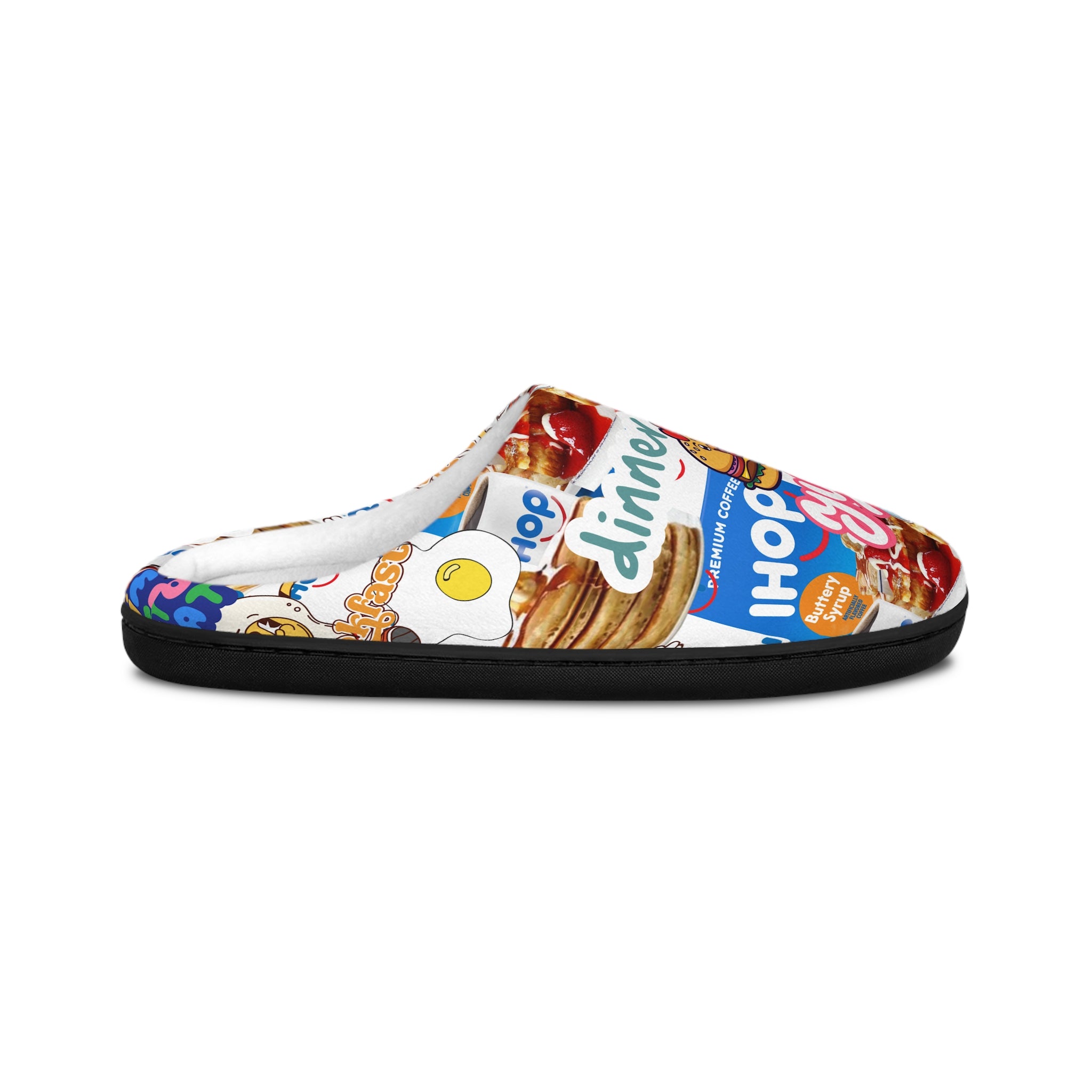 • Breakfast IHOP pattern Indoor Slippers — Colorful Diner Food Cozy House Shoes
