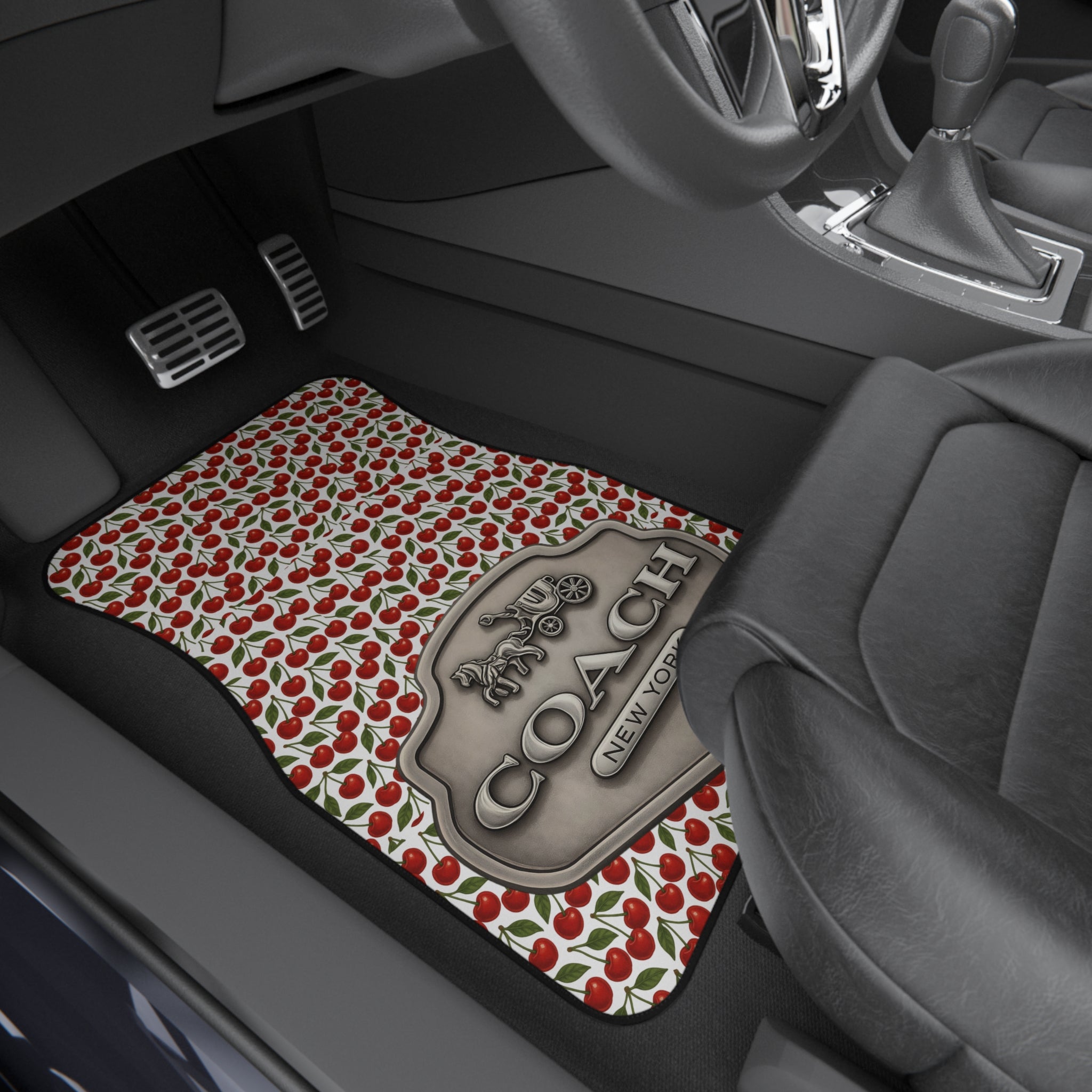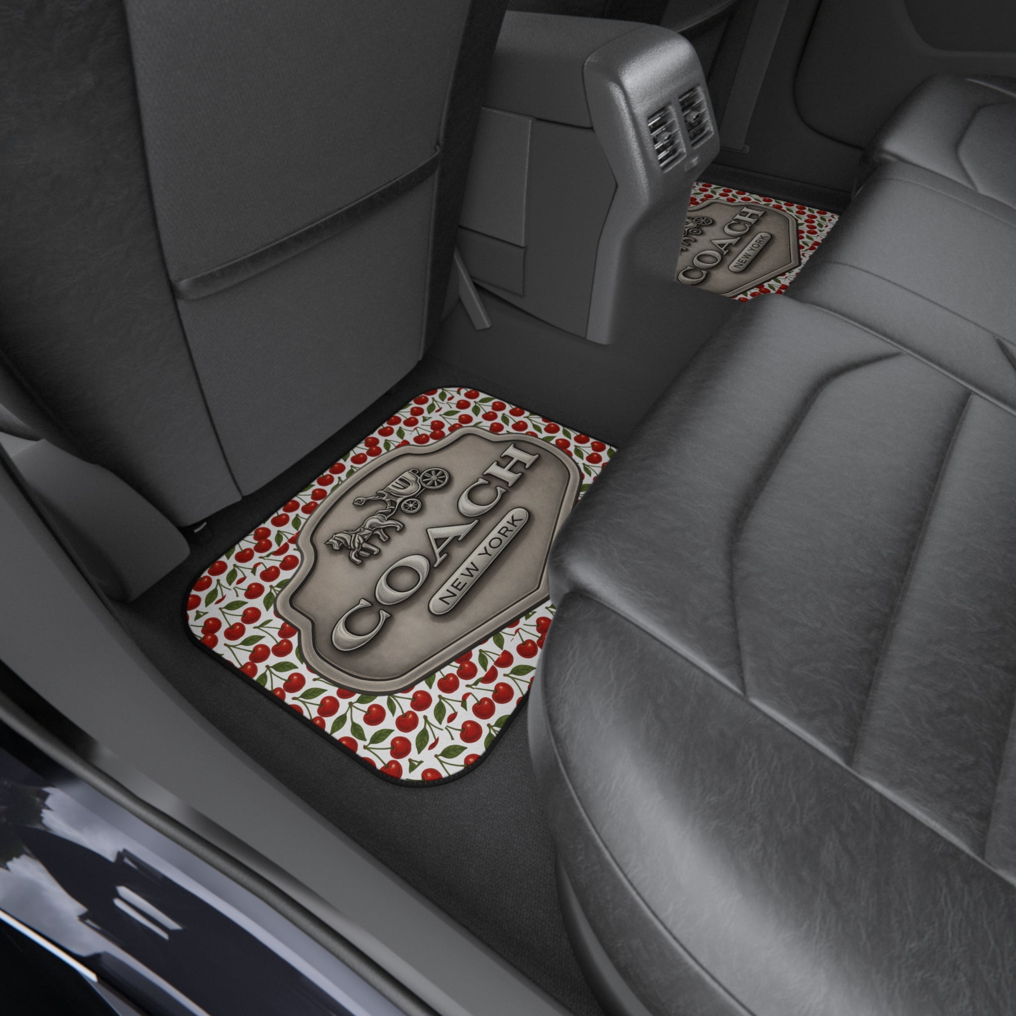 Cherry Blossom Coach Inspired Car Mats Set – Stylish Auto Accessories, Floral Floor Mats, Perfect Gift for Car Lovers, Unique Car Decor