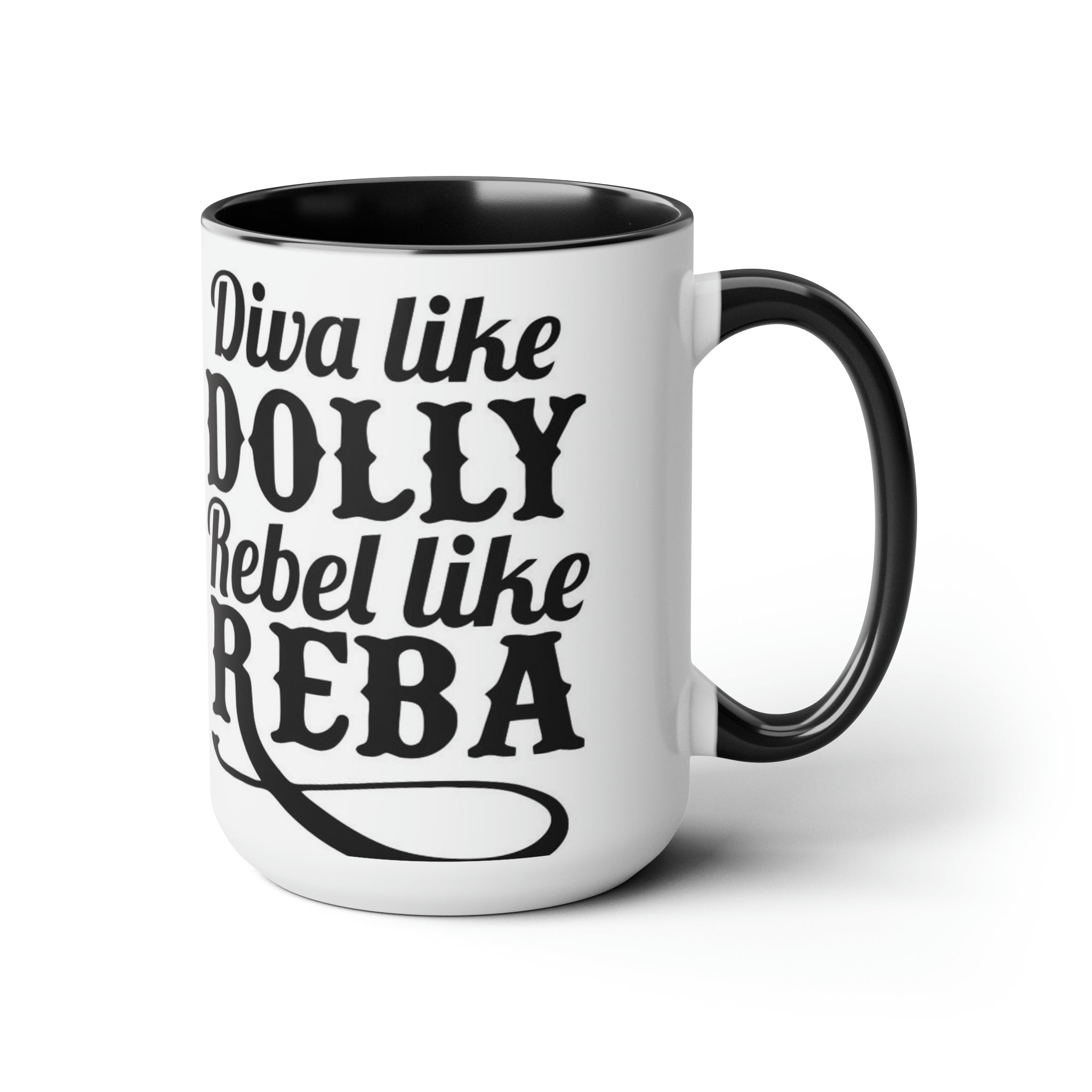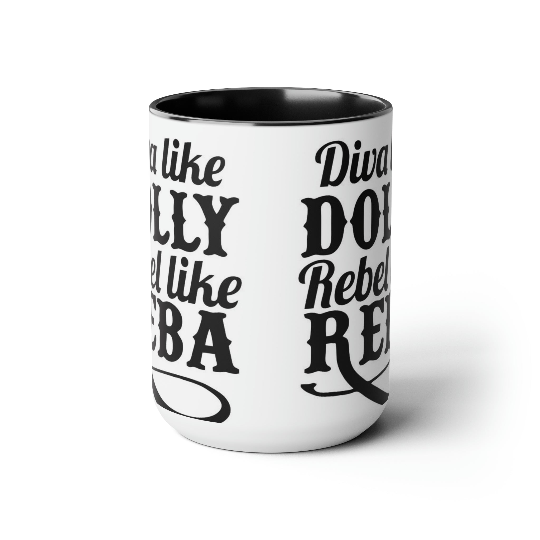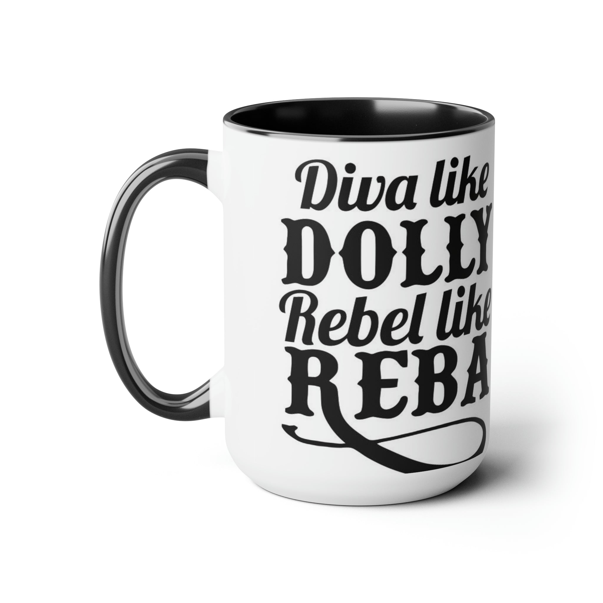 Diva como Dolly Rebel como Reba- Tazas de café de dos tonos, 15 oz