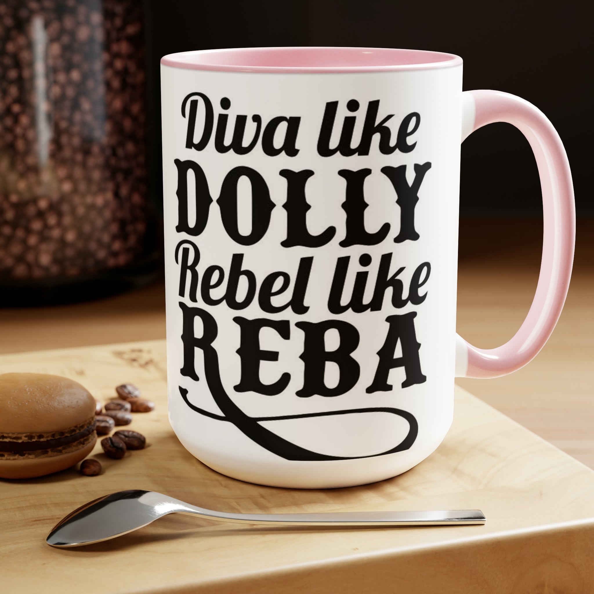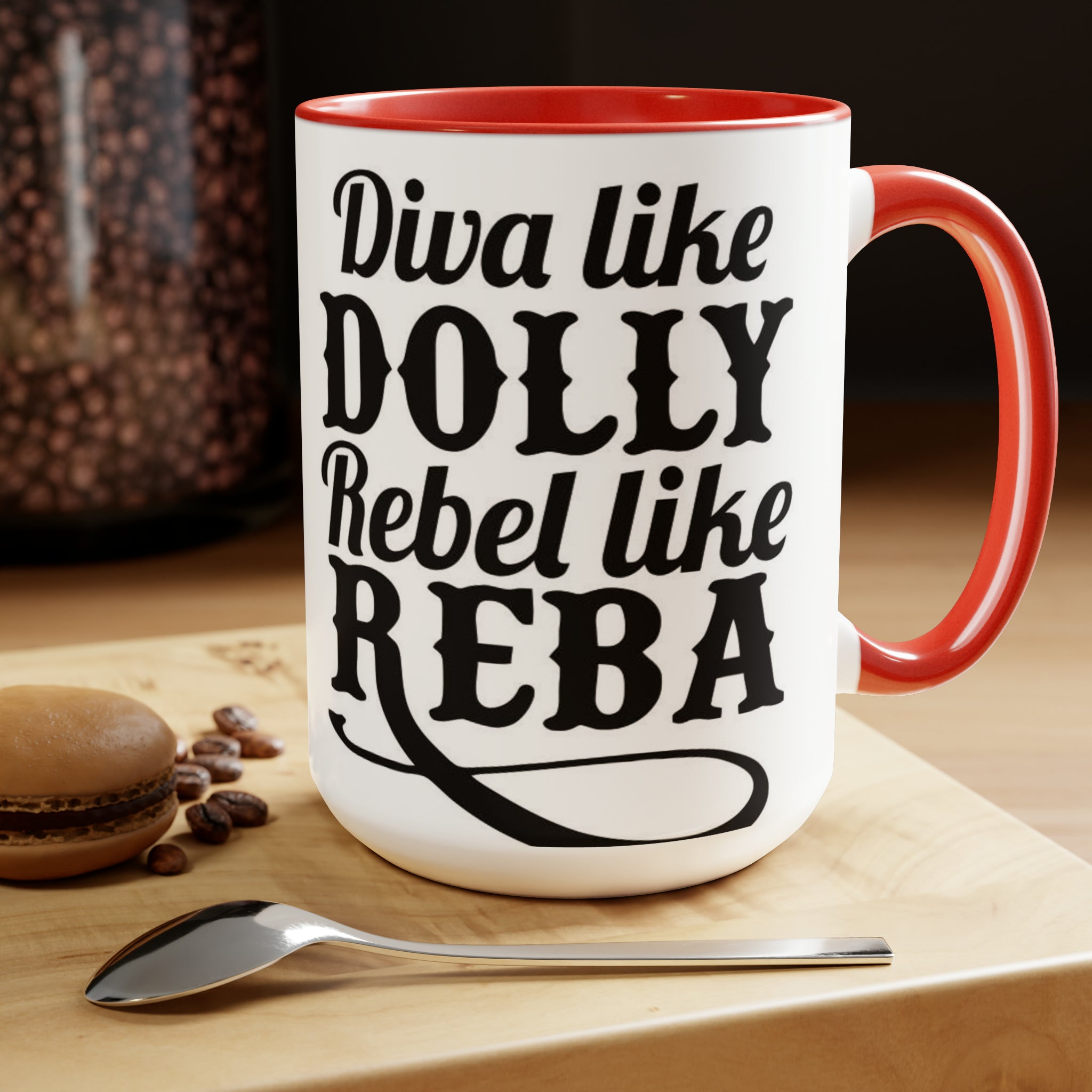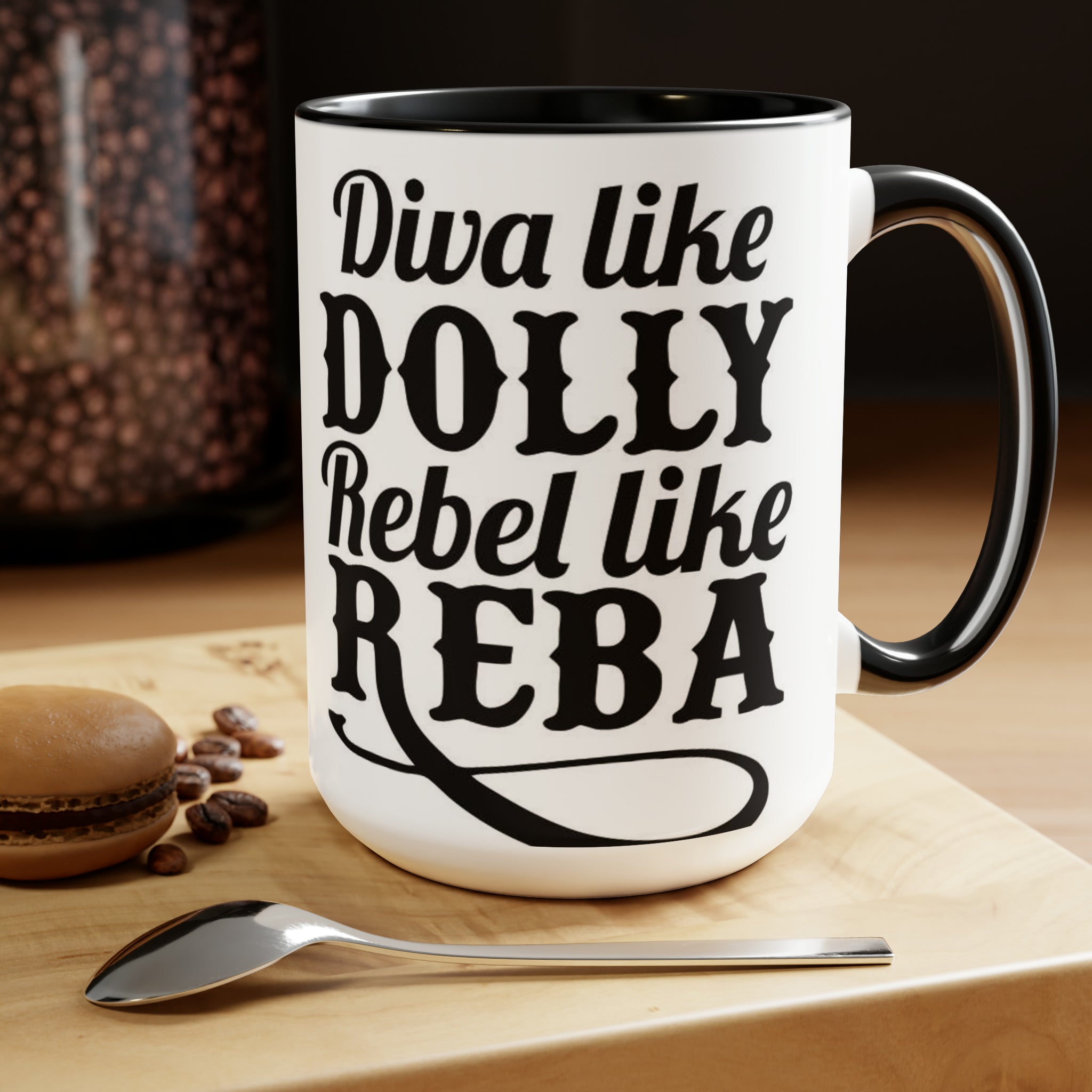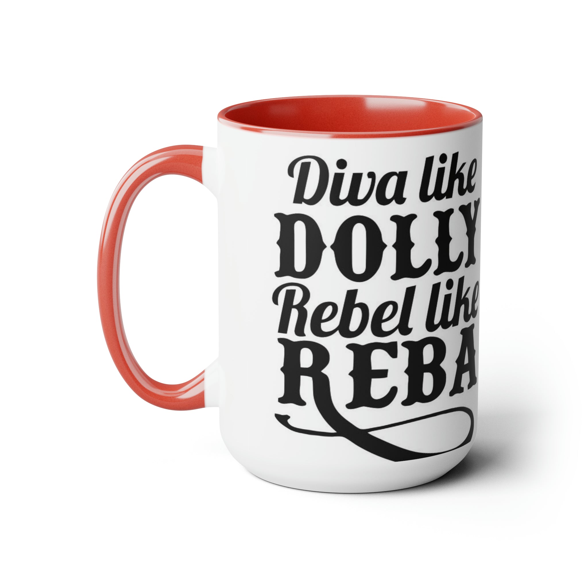 Diva como Dolly Rebel como Reba- Tazas de café de dos tonos, 15 oz