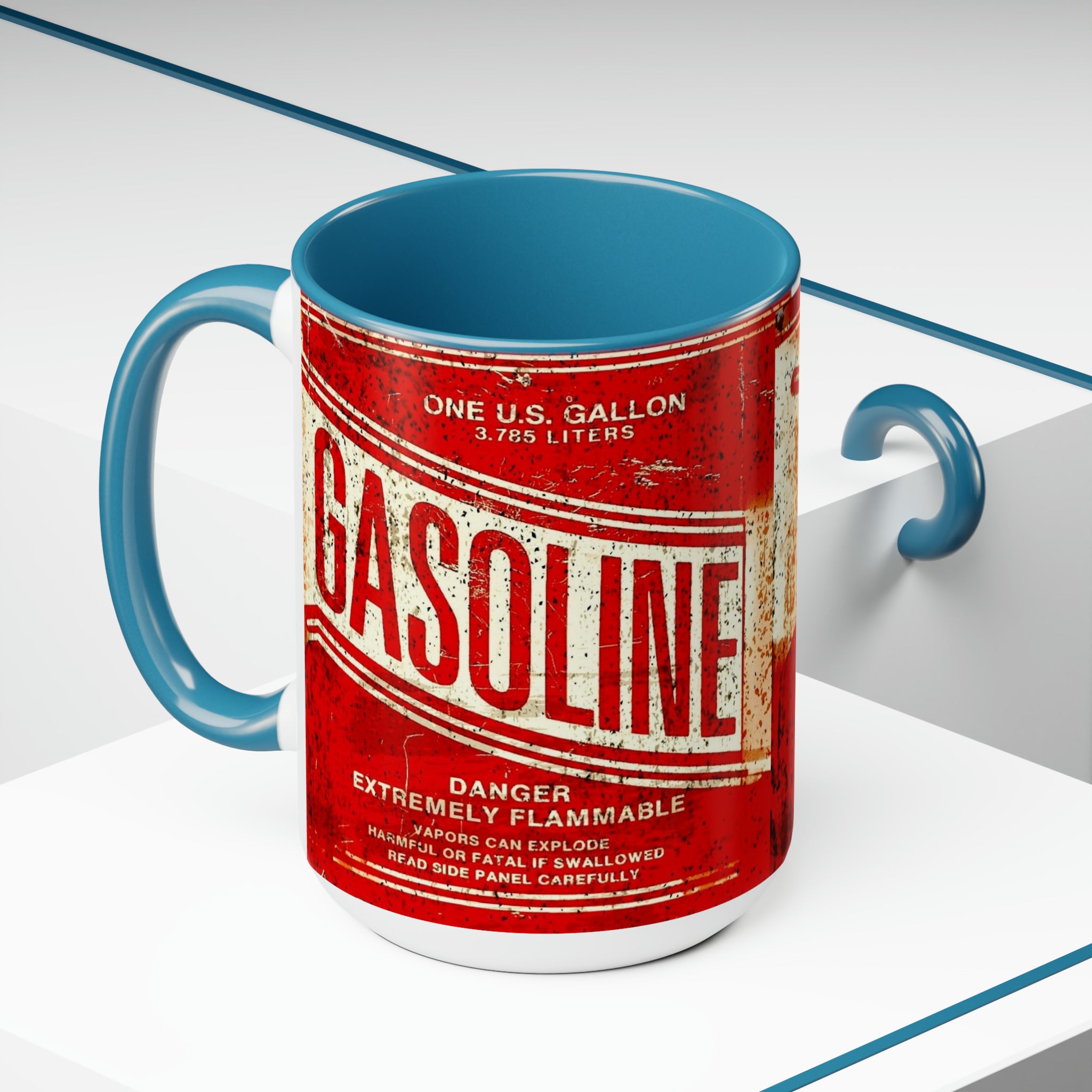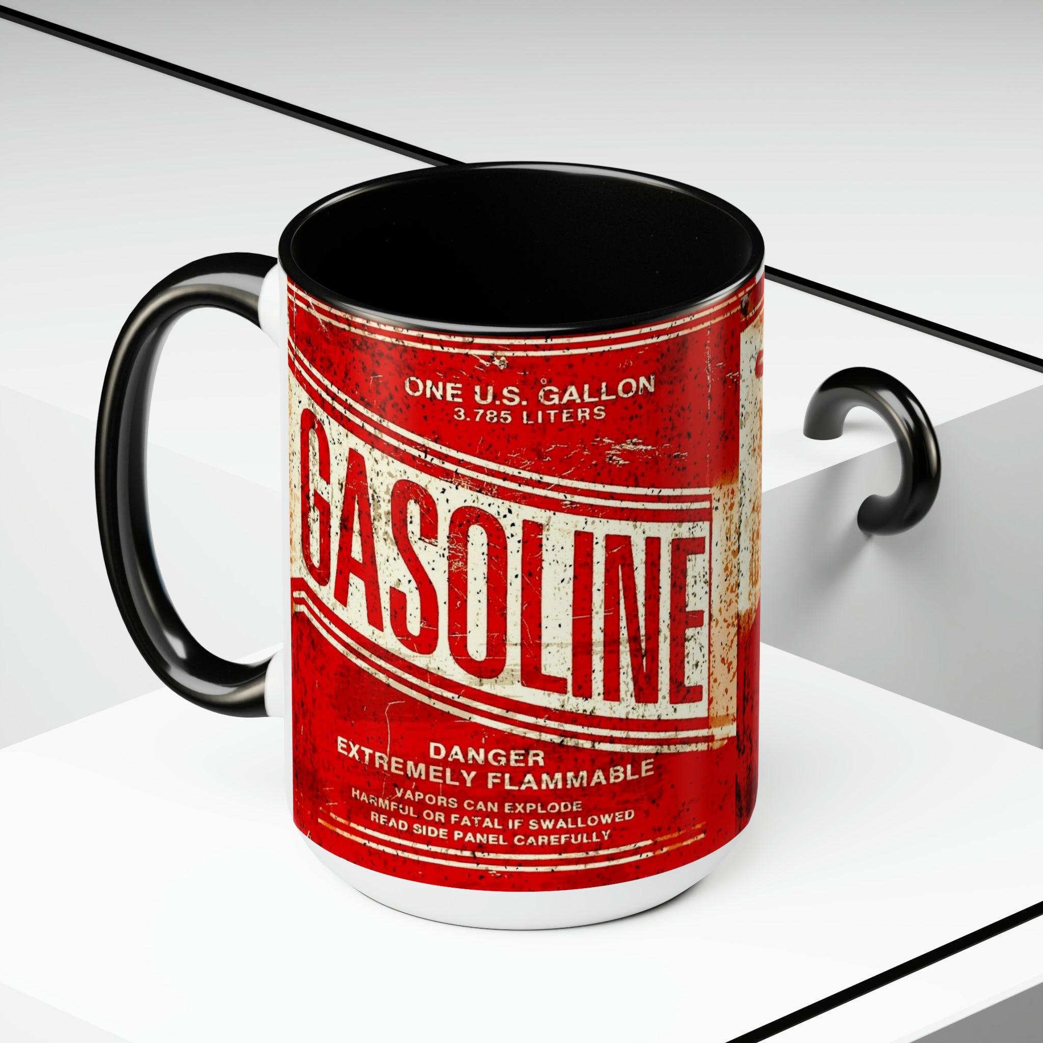 Gasolina- Tazas de café de dos tonos, 15 oz
