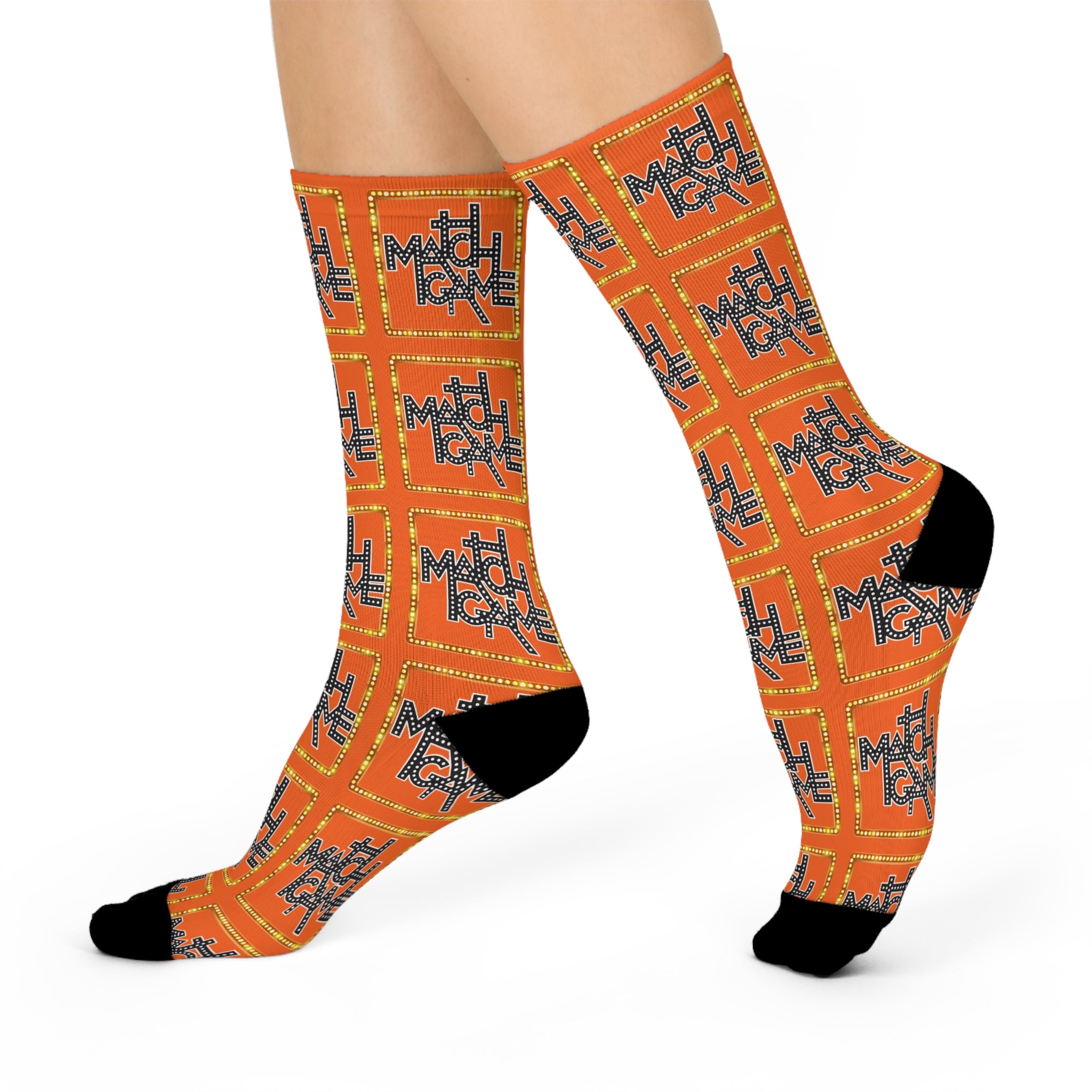 Match Game Retro Logo Cushioned Crew Socks – Orange Vintage TV Game Show Design