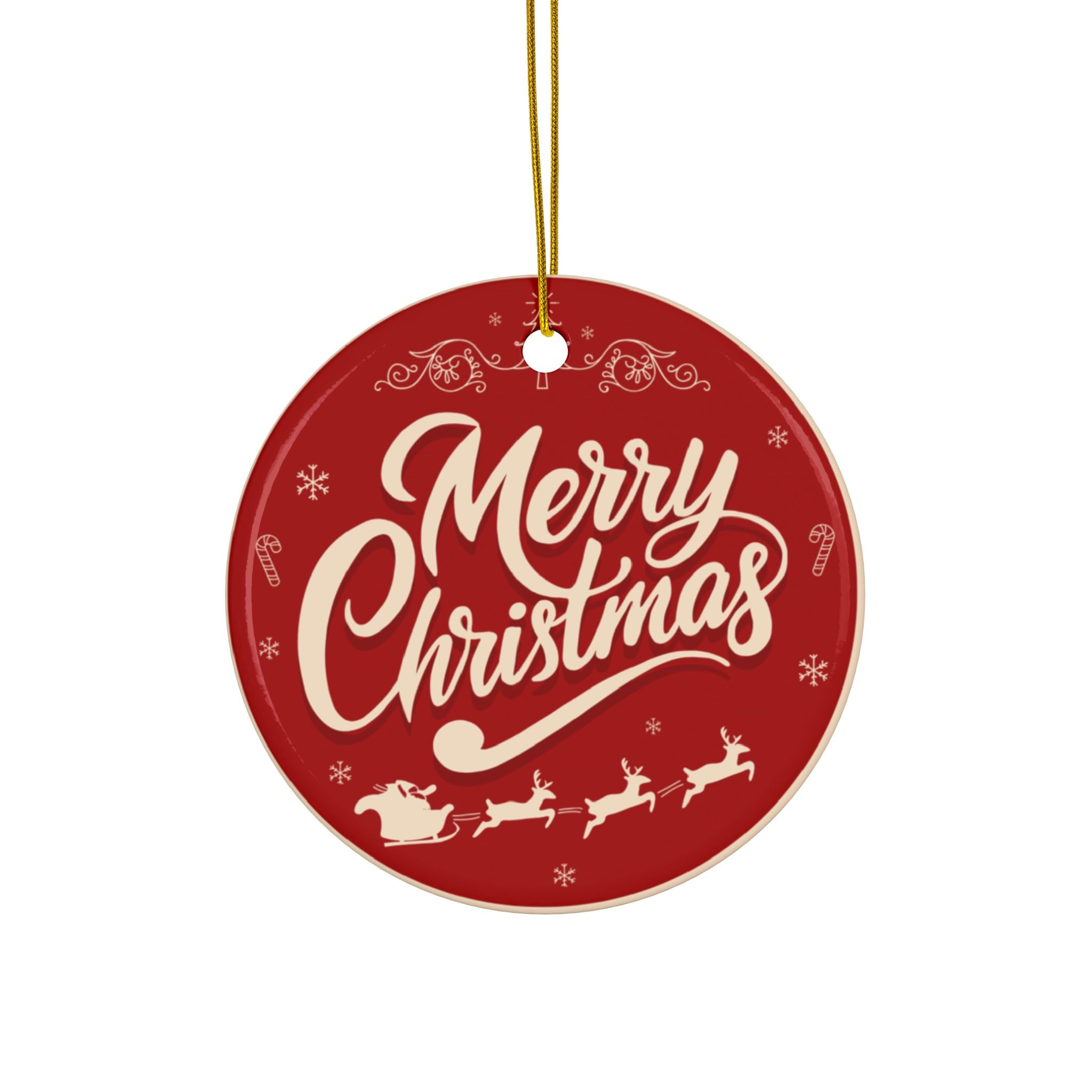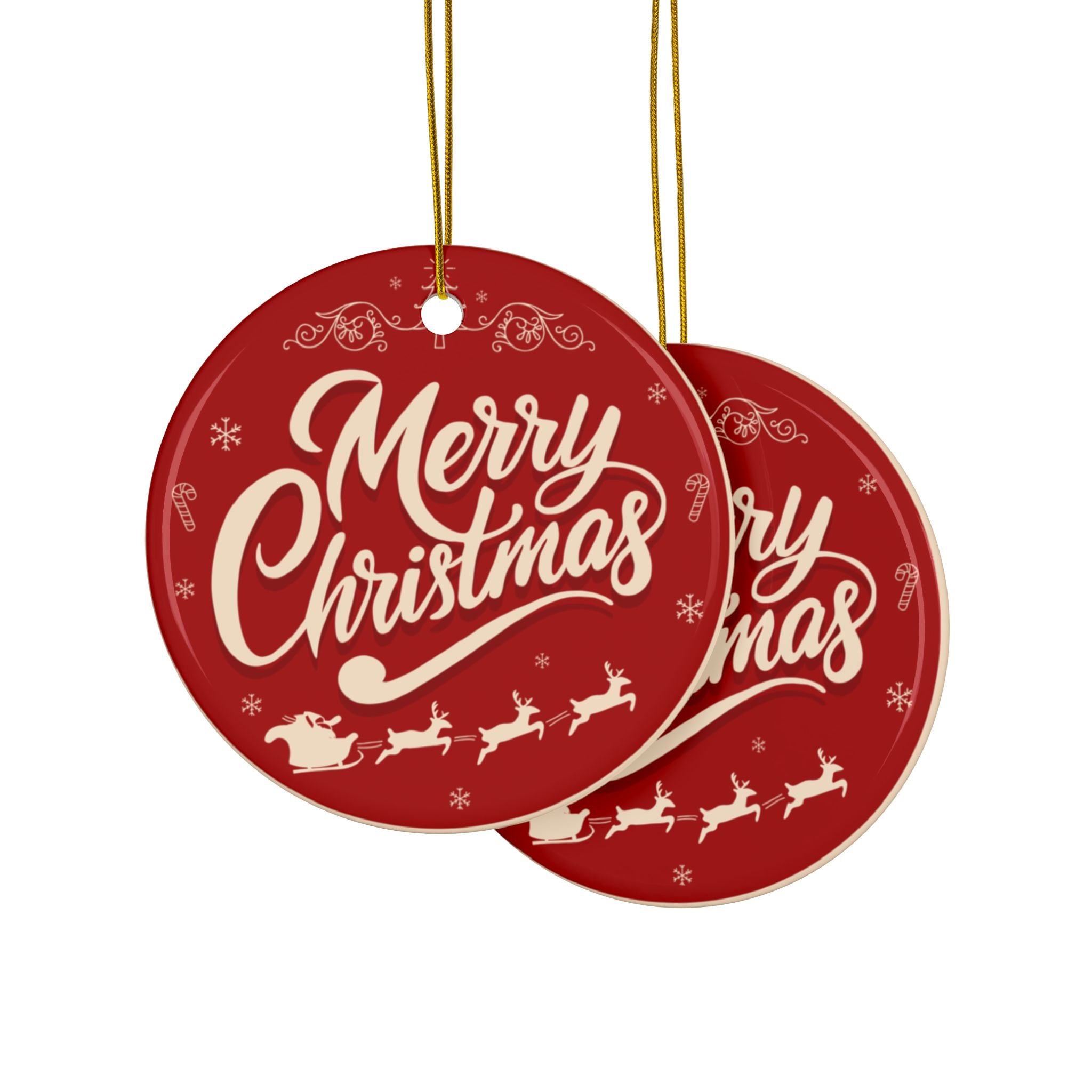 Merry Christmas Ceramic Ornament — Double-Sided Holiday Tree Decoration