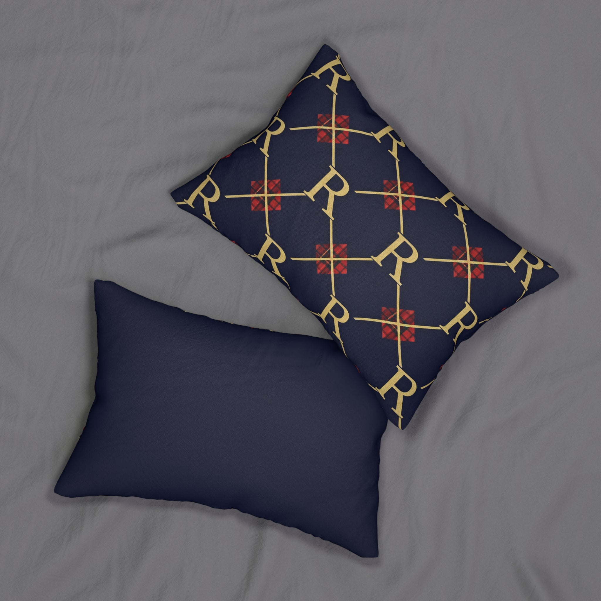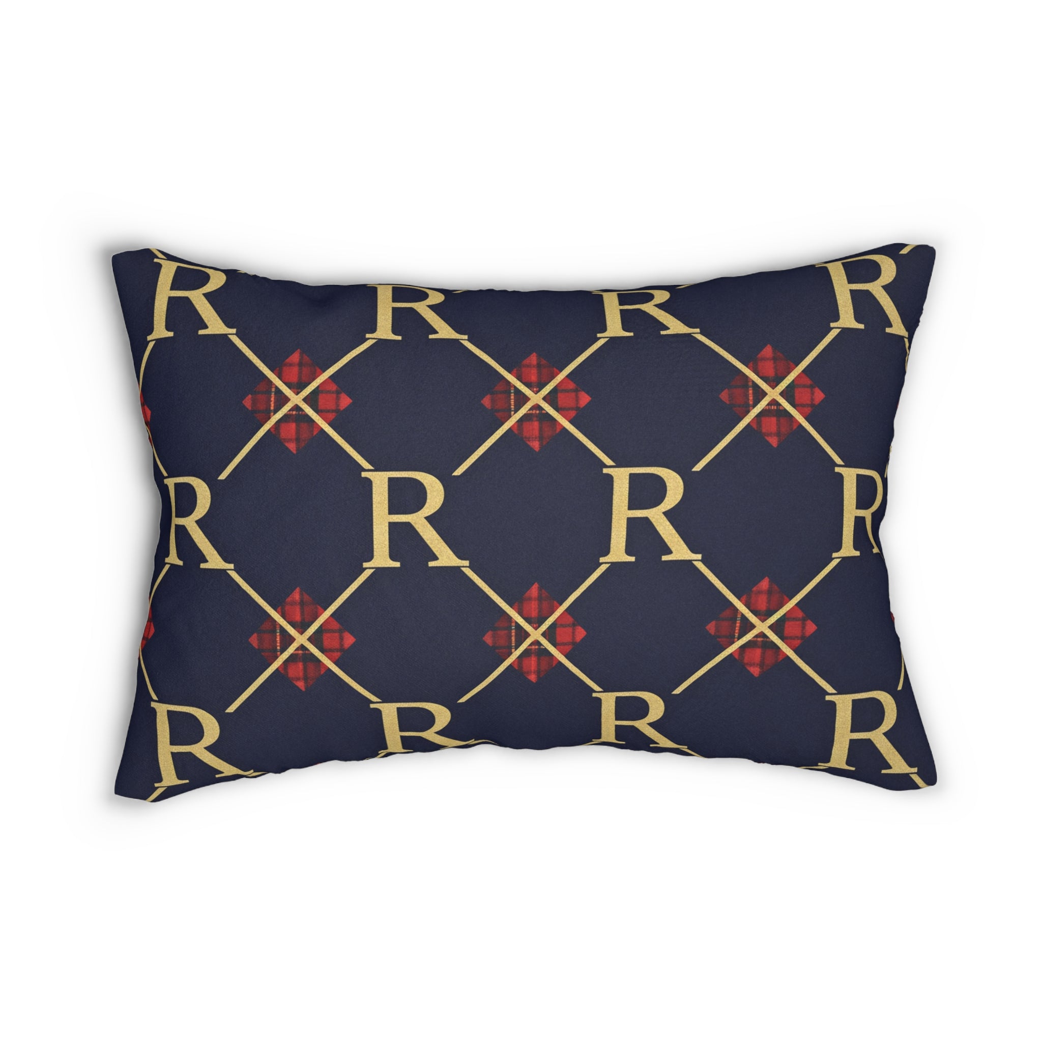 Monogram 'R' Navy & Gold Lumbar Pillow — Classic Geometric Accent