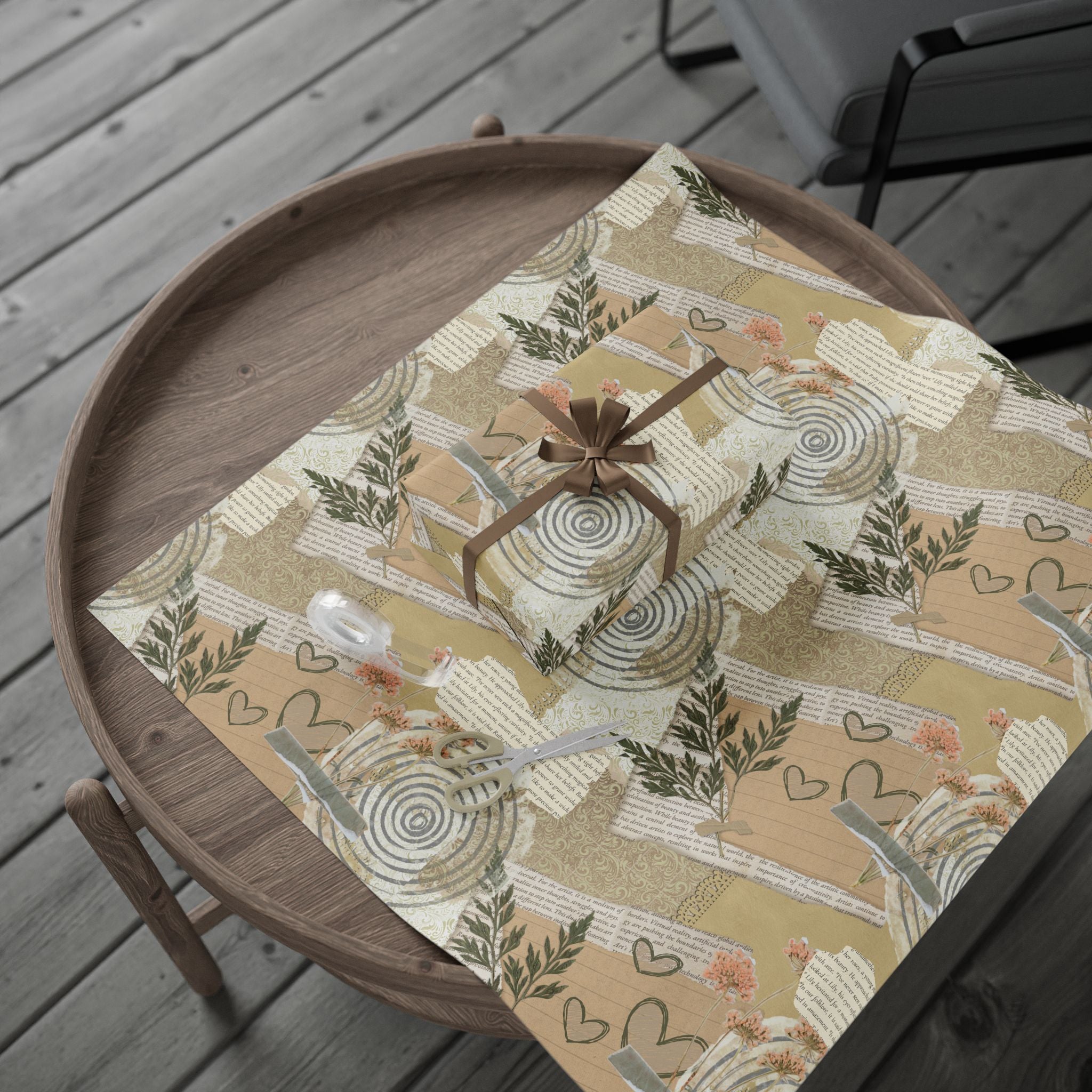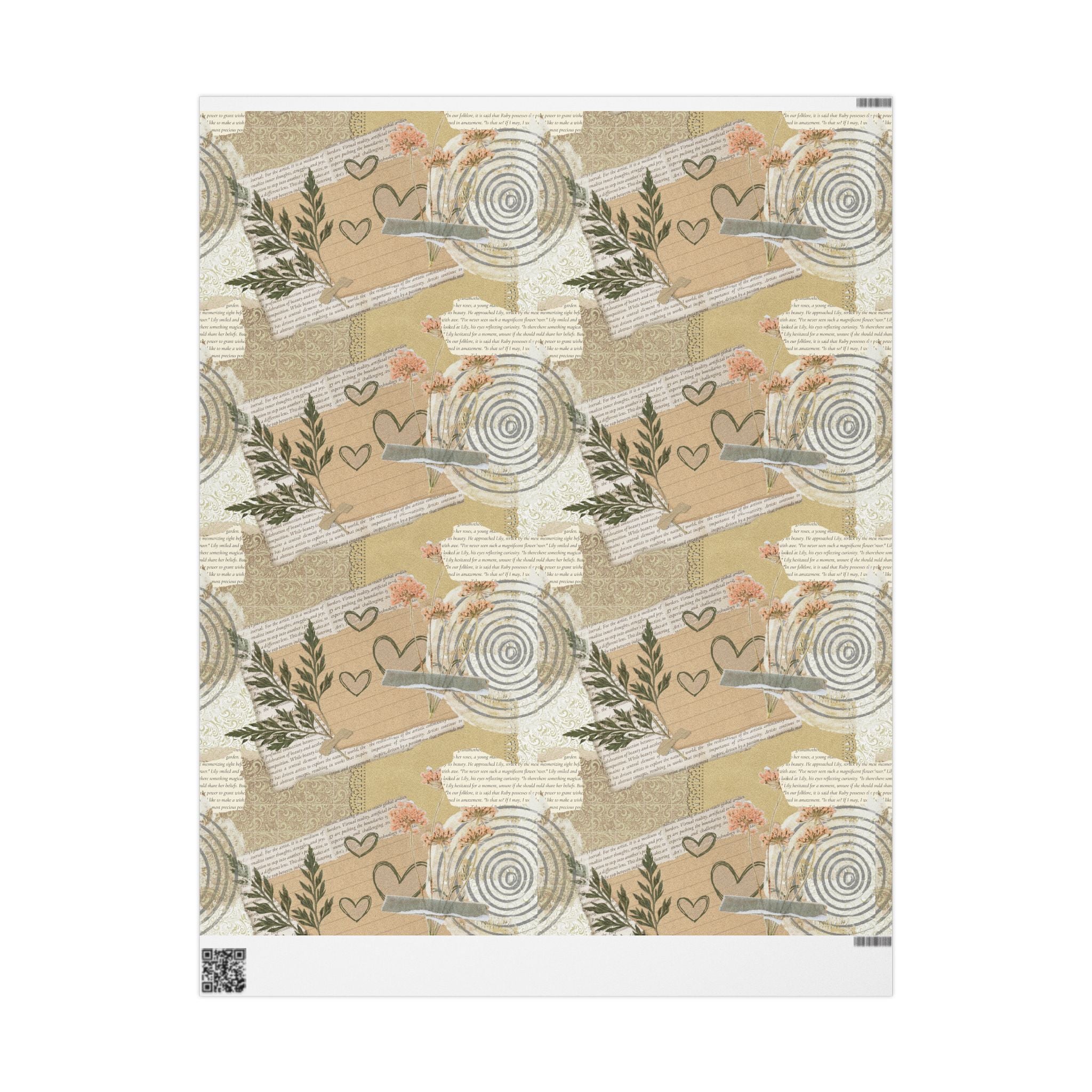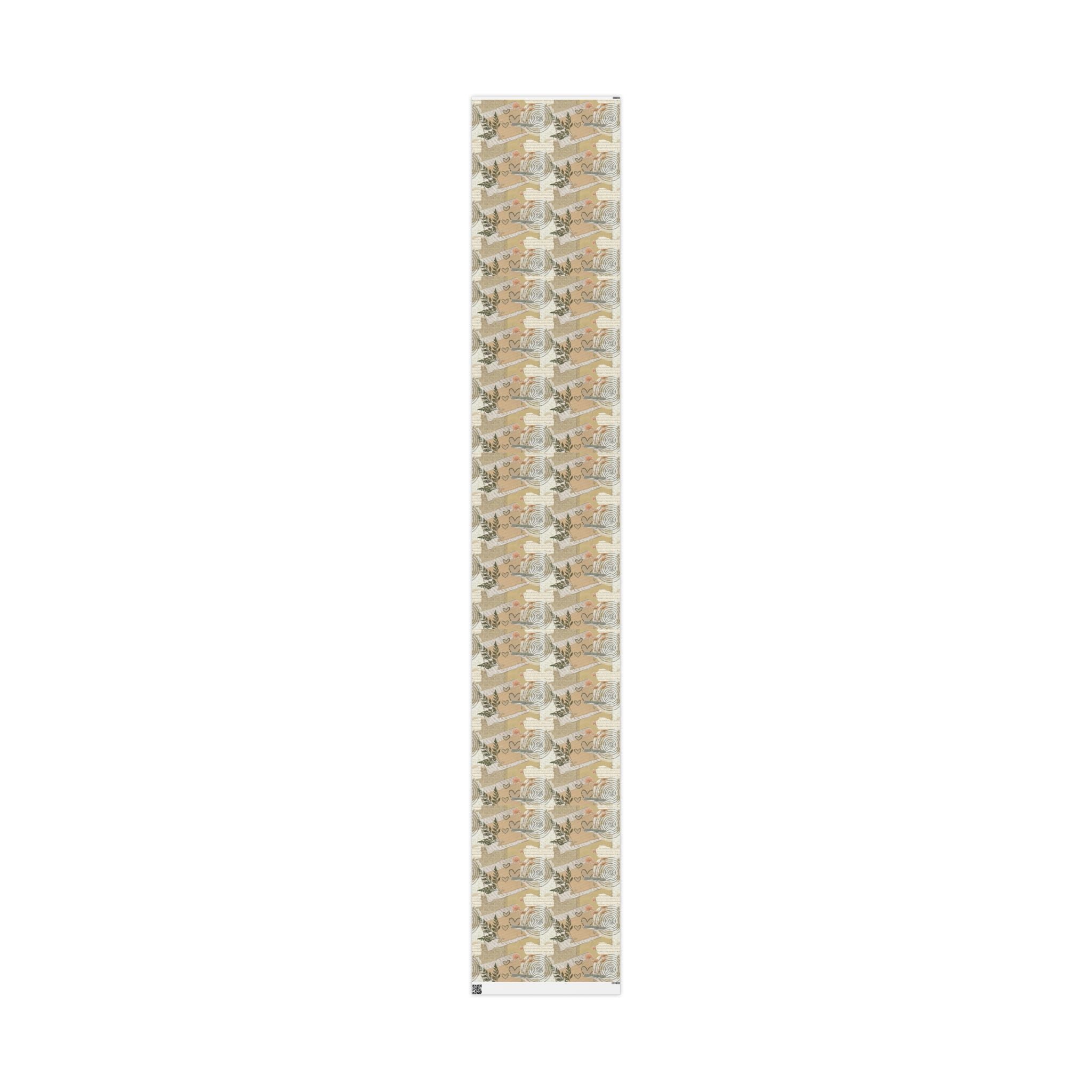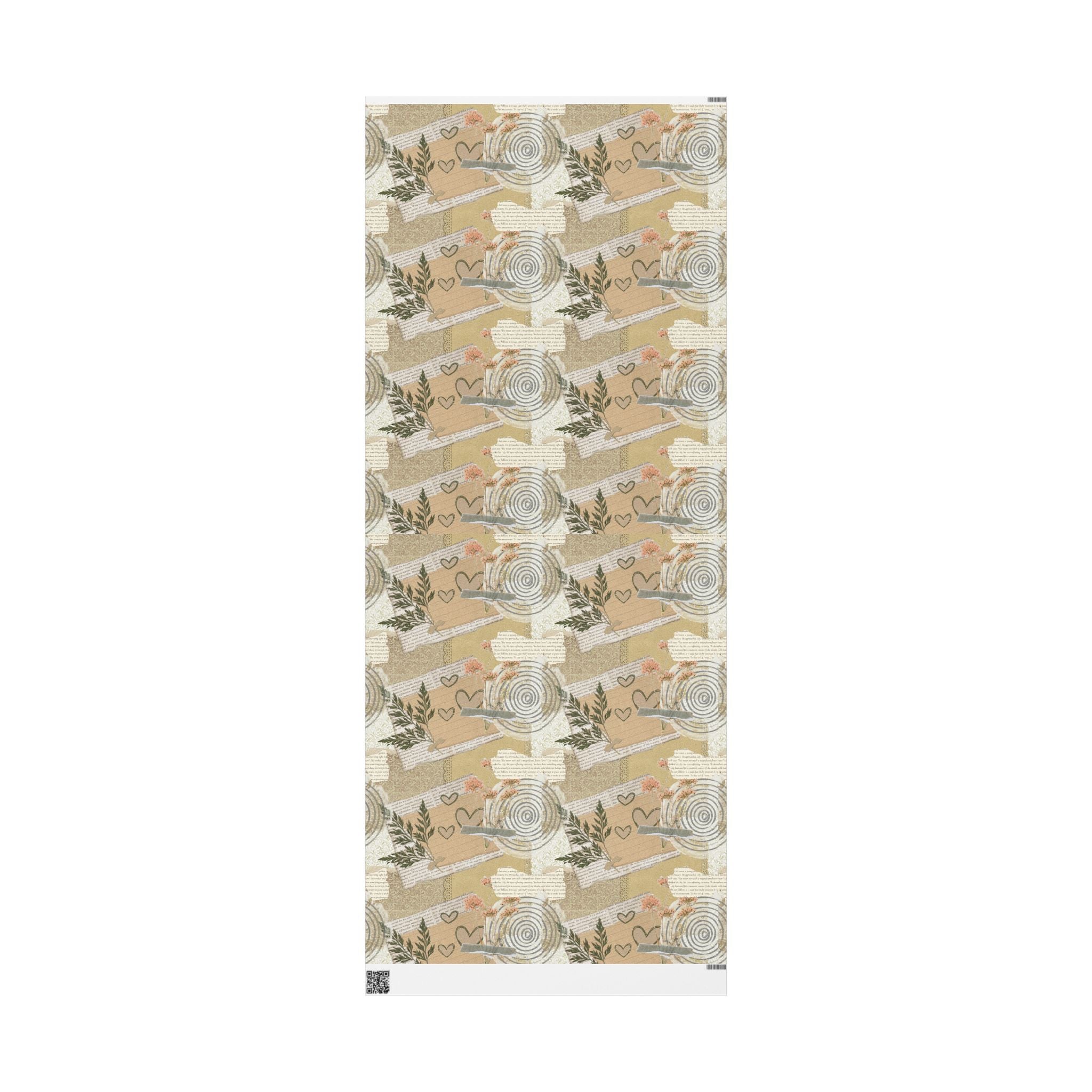 Neutral Botanical Wrapping Paper Roll — Rustic Hearts & Leaves Gift Wrap