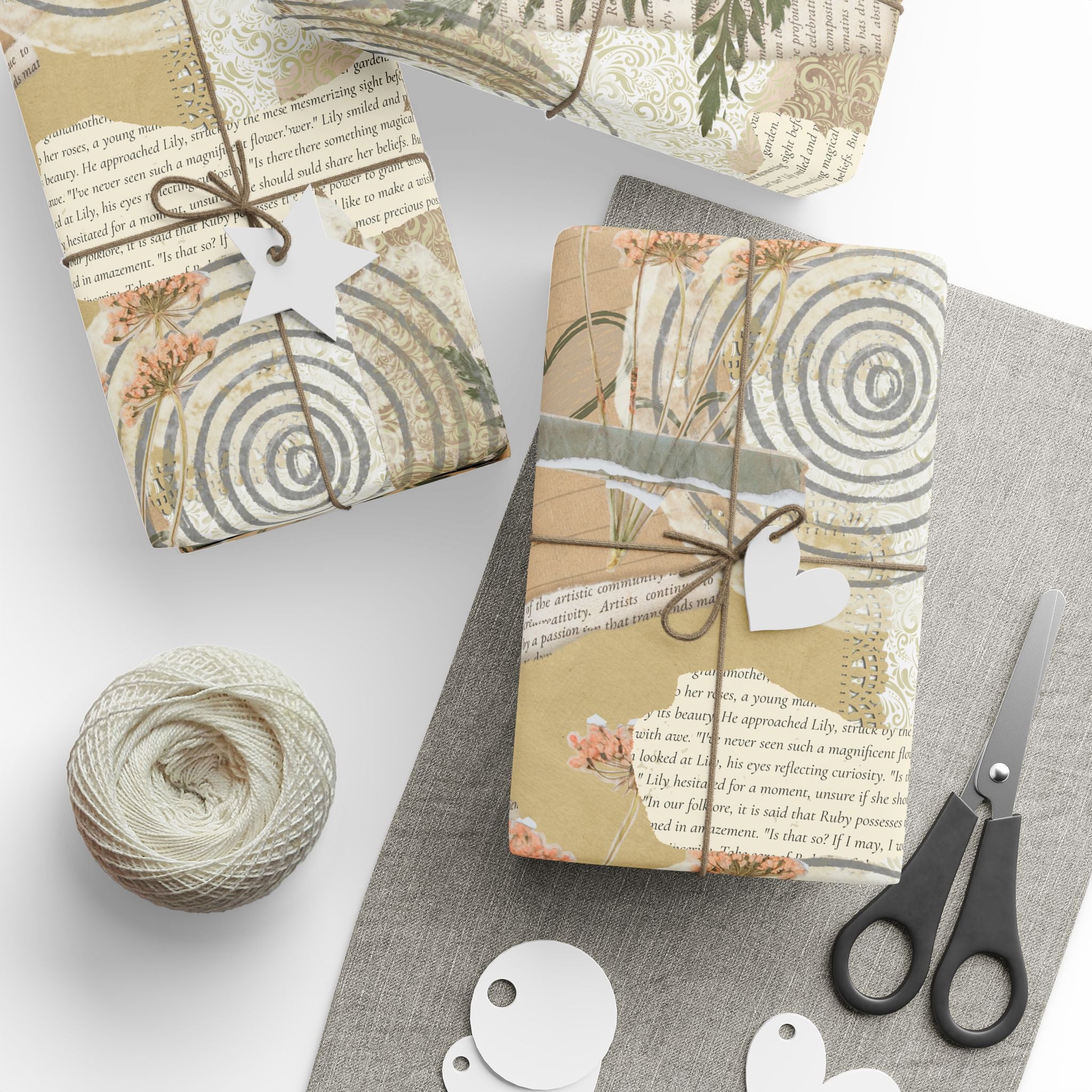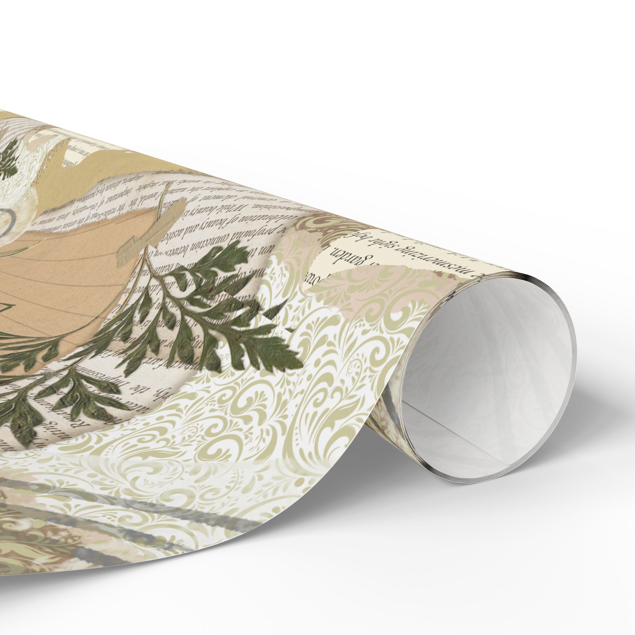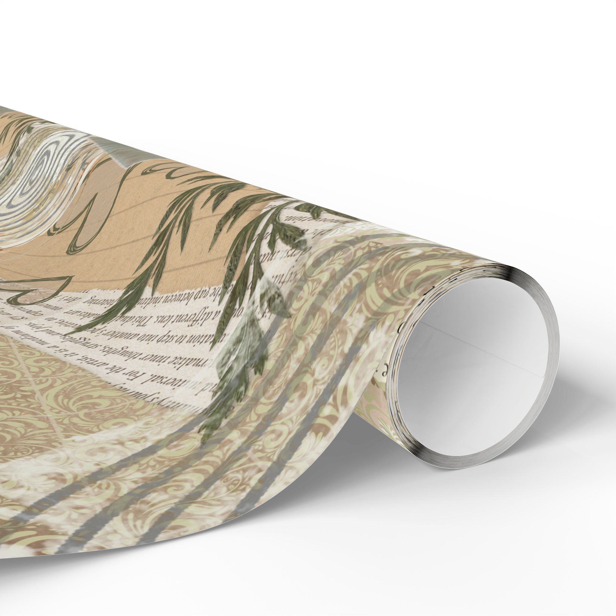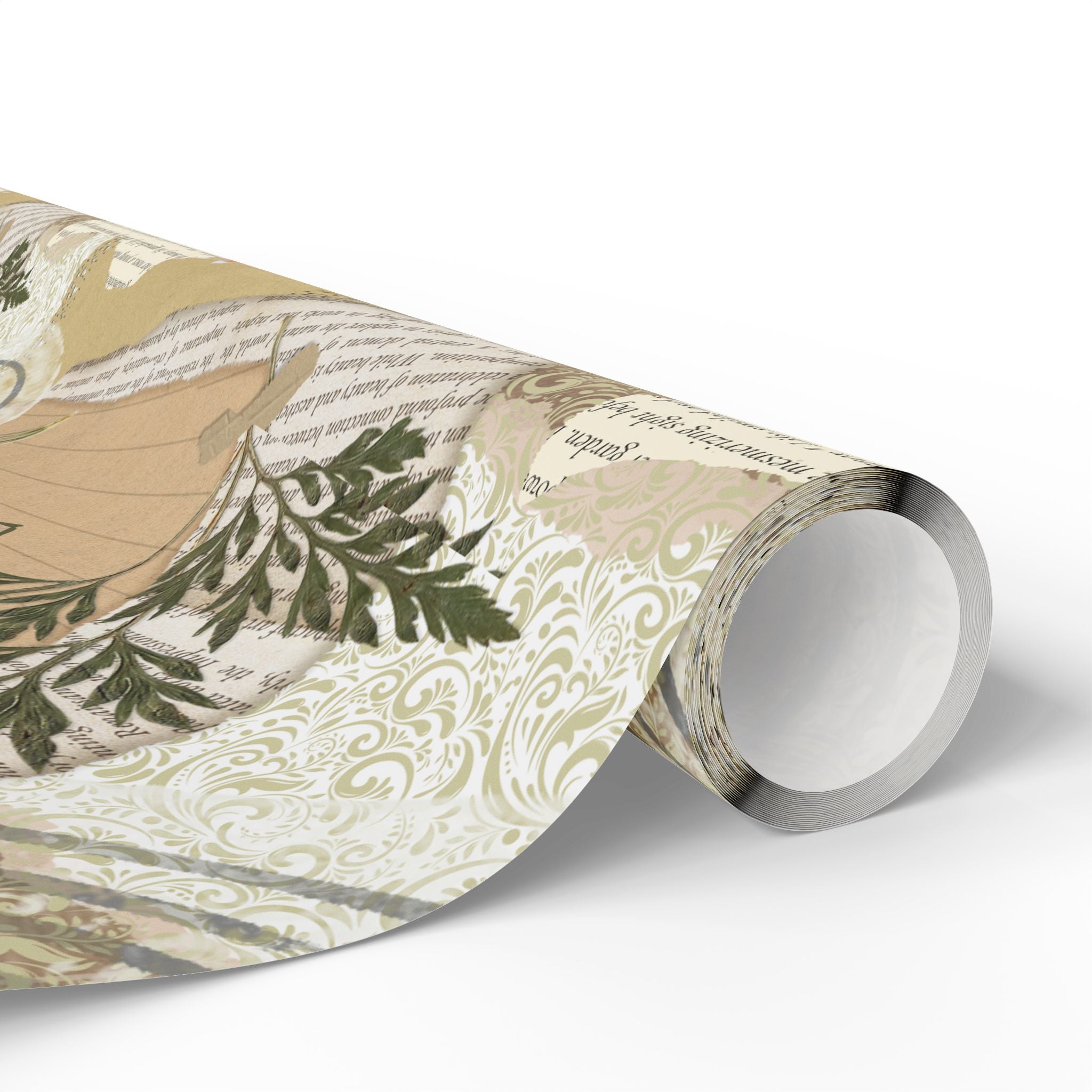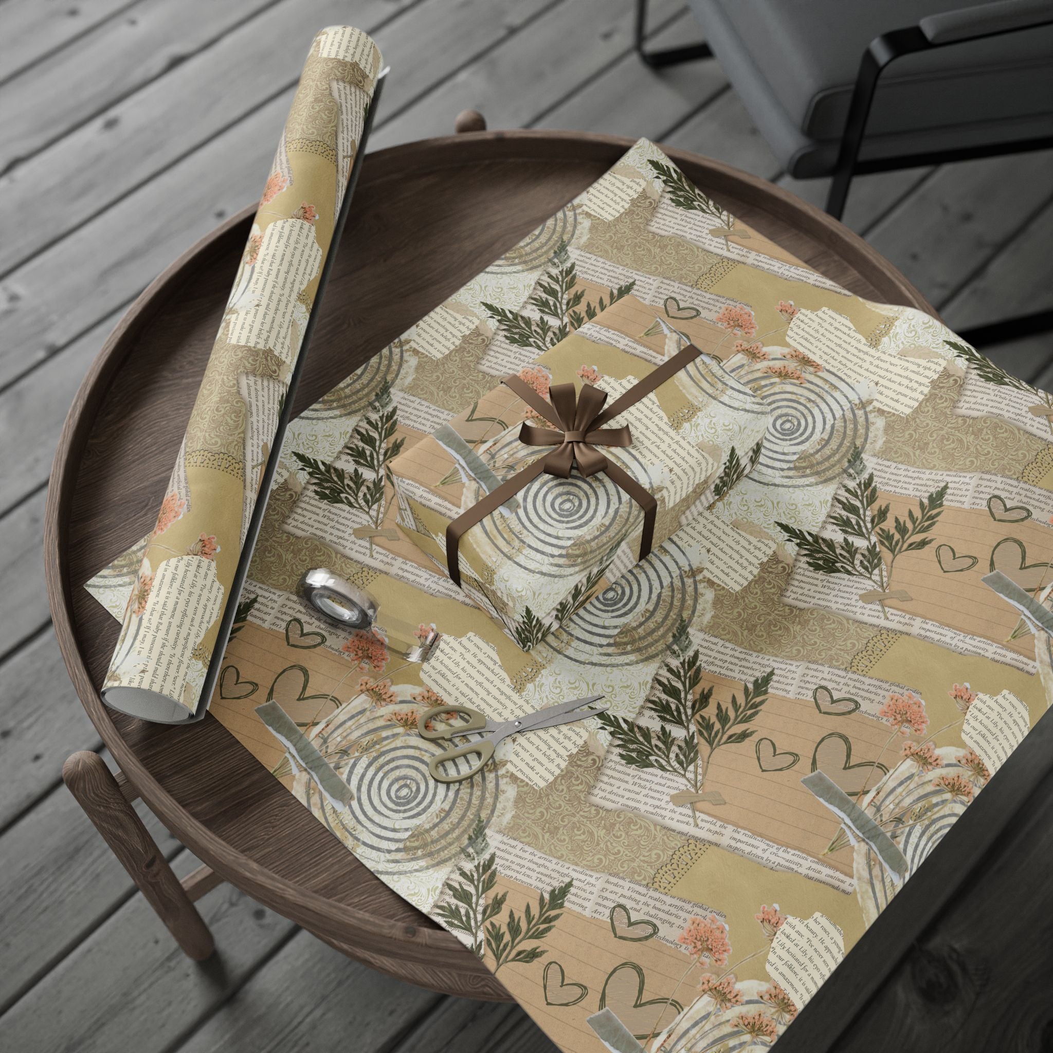 Neutral Botanical Wrapping Paper Roll — Rustic Hearts & Leaves Gift Wrap