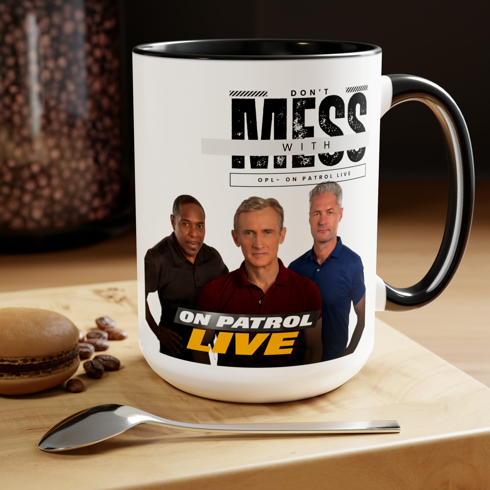 OPL On Patrol Live Inspired- No te metas con tazas de café de dos tonos, 15 oz