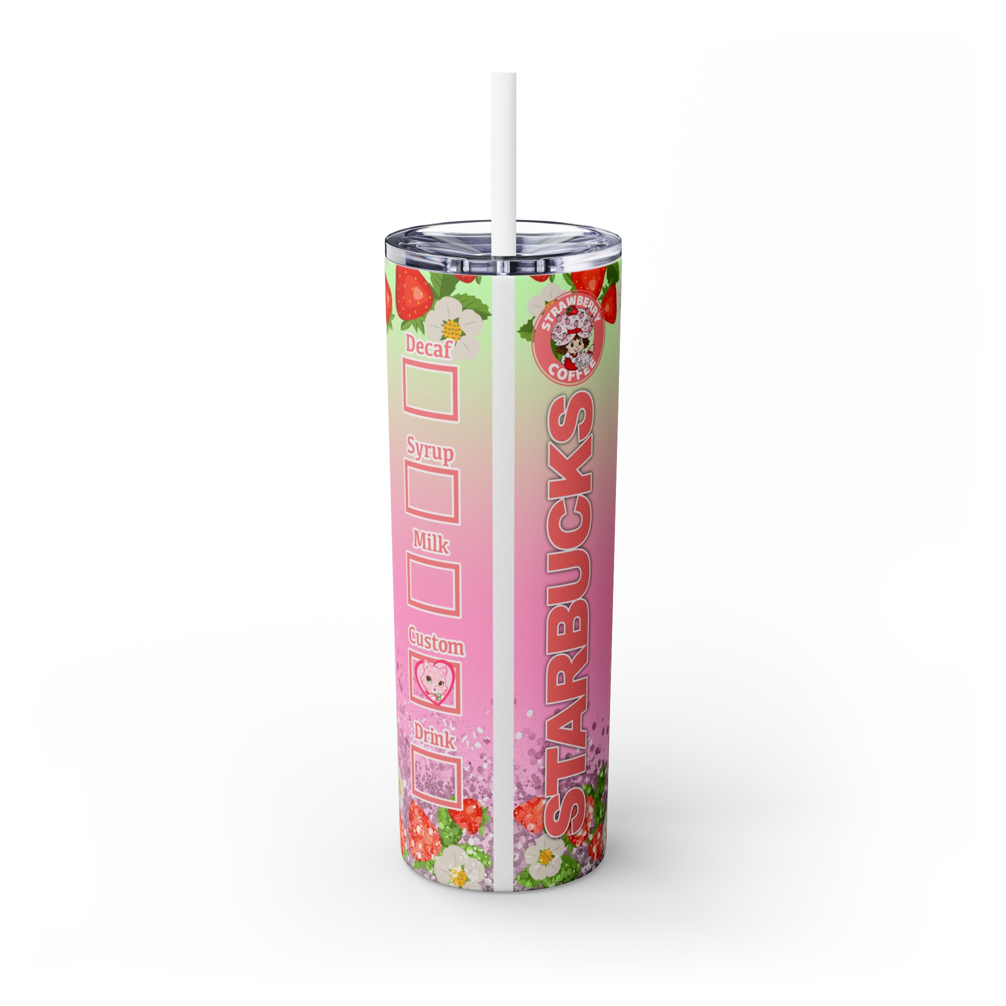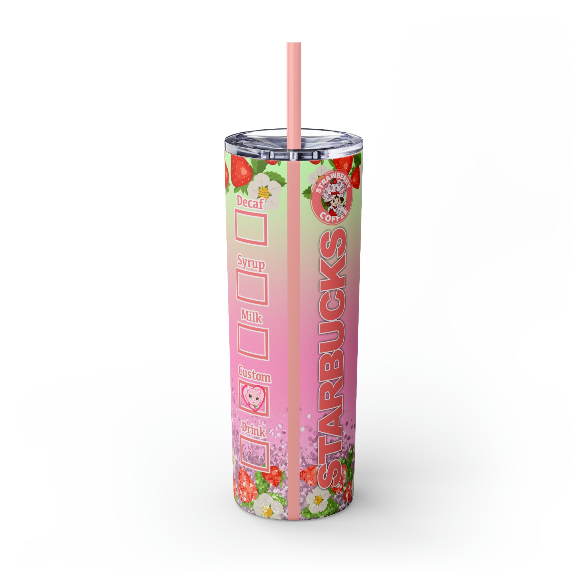 Tarta de Fresa- Vaso delgado Starbucks con pajita, 20 oz