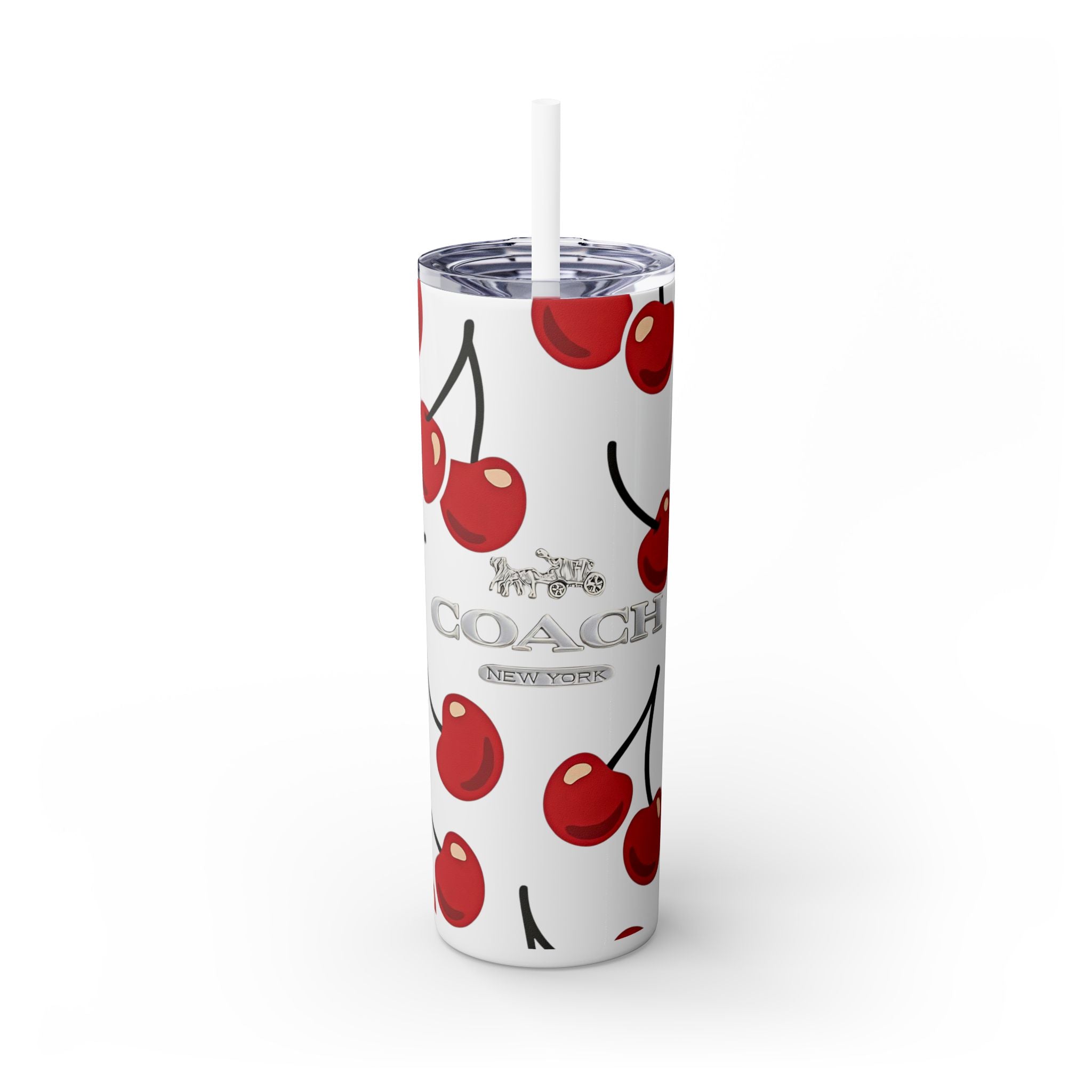 Tumbler with Straw - Cherry Coach NY Design, 20oz
