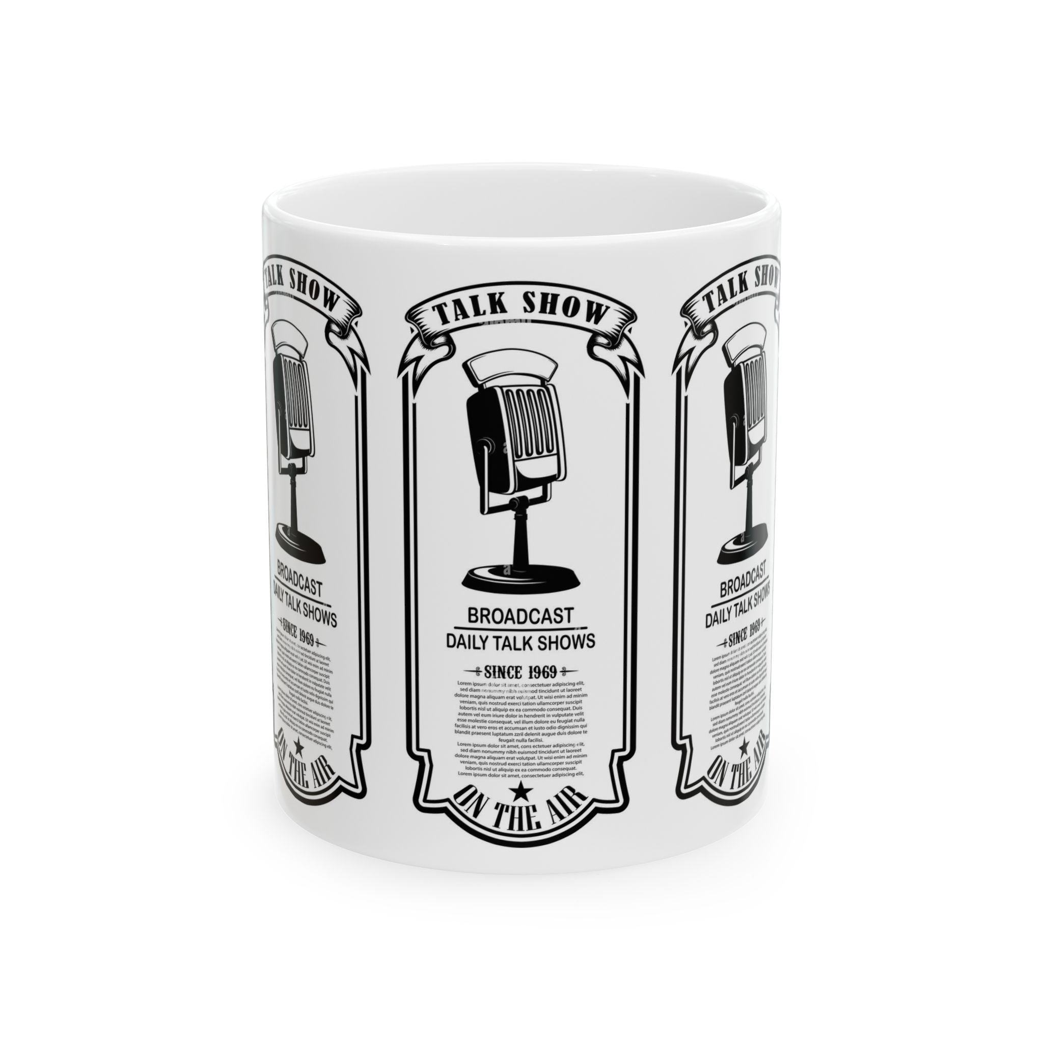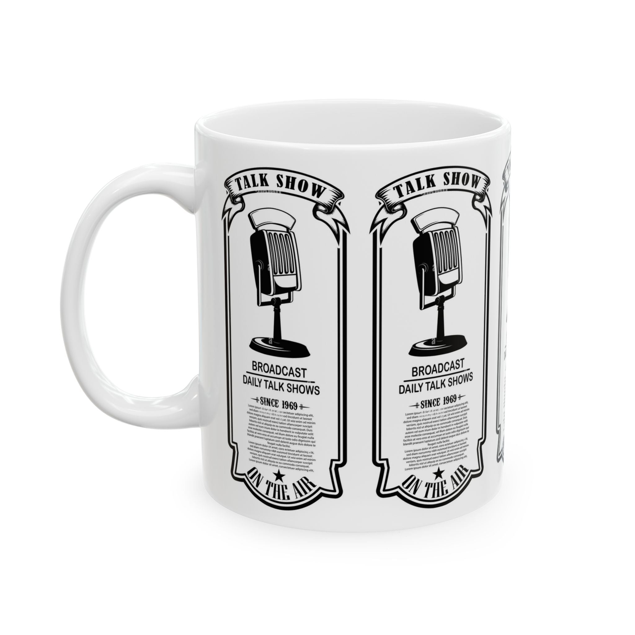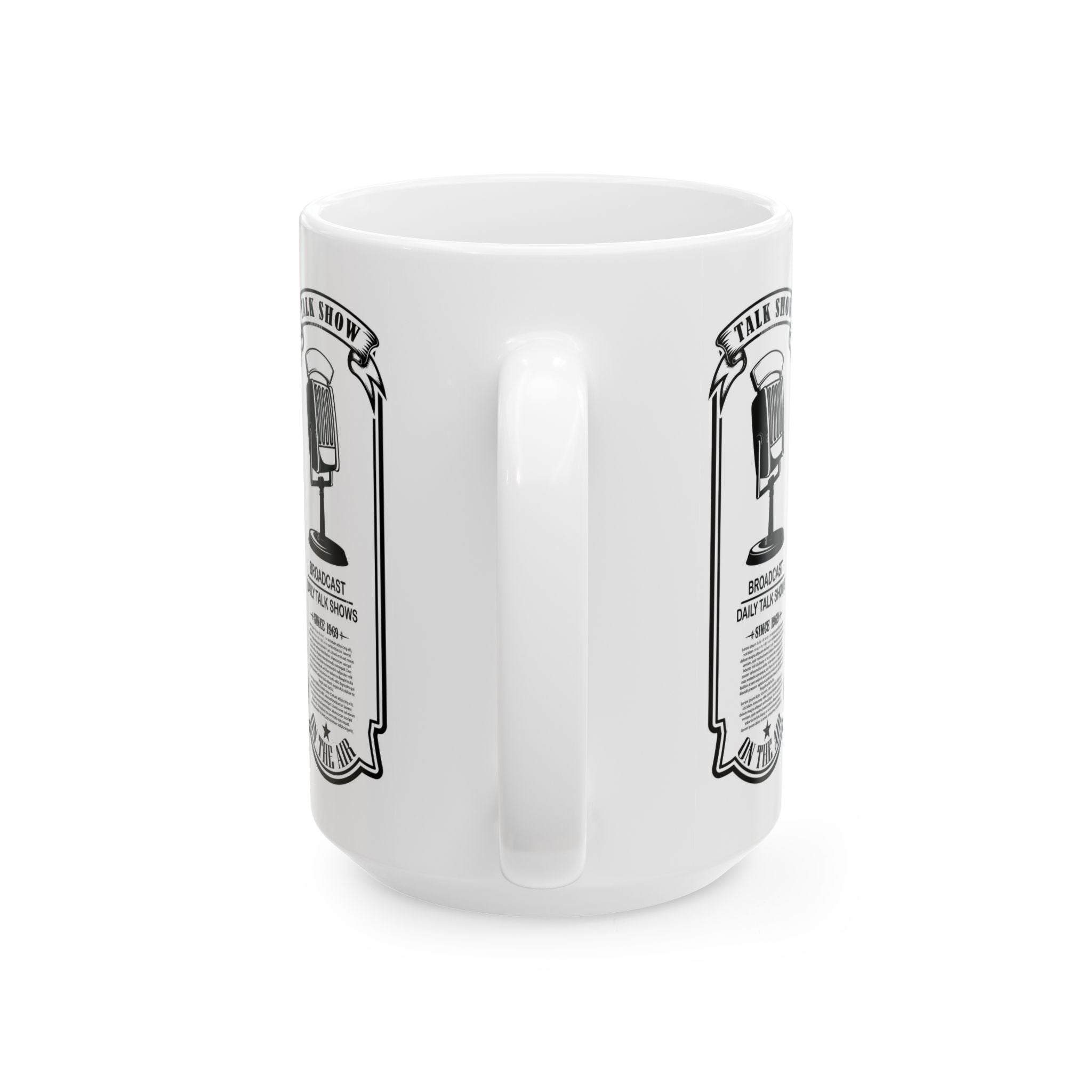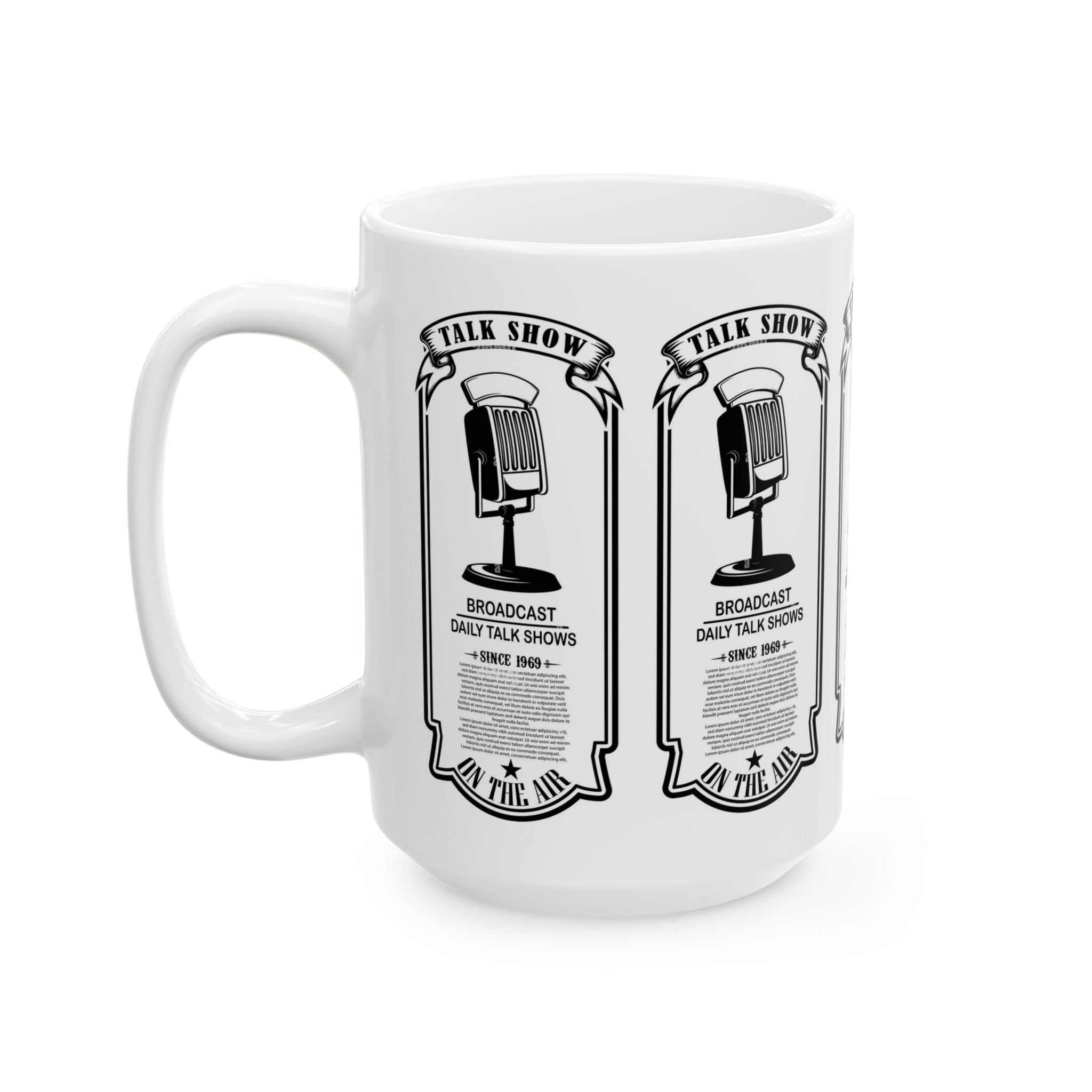 Vintage Talk Show Microphone Ceramic Mug – 'Broadcast Daily Talk Shows' 11oz/15oz