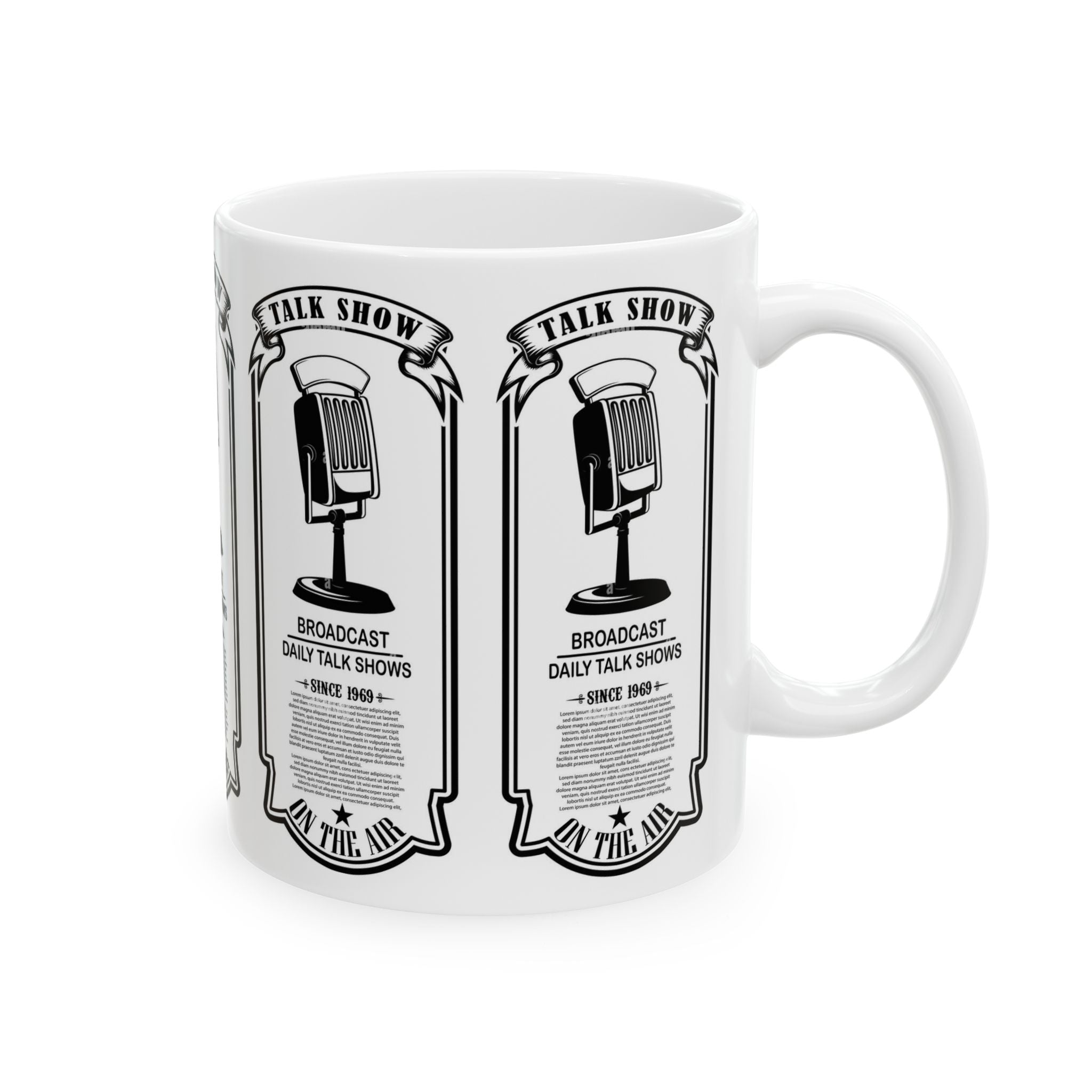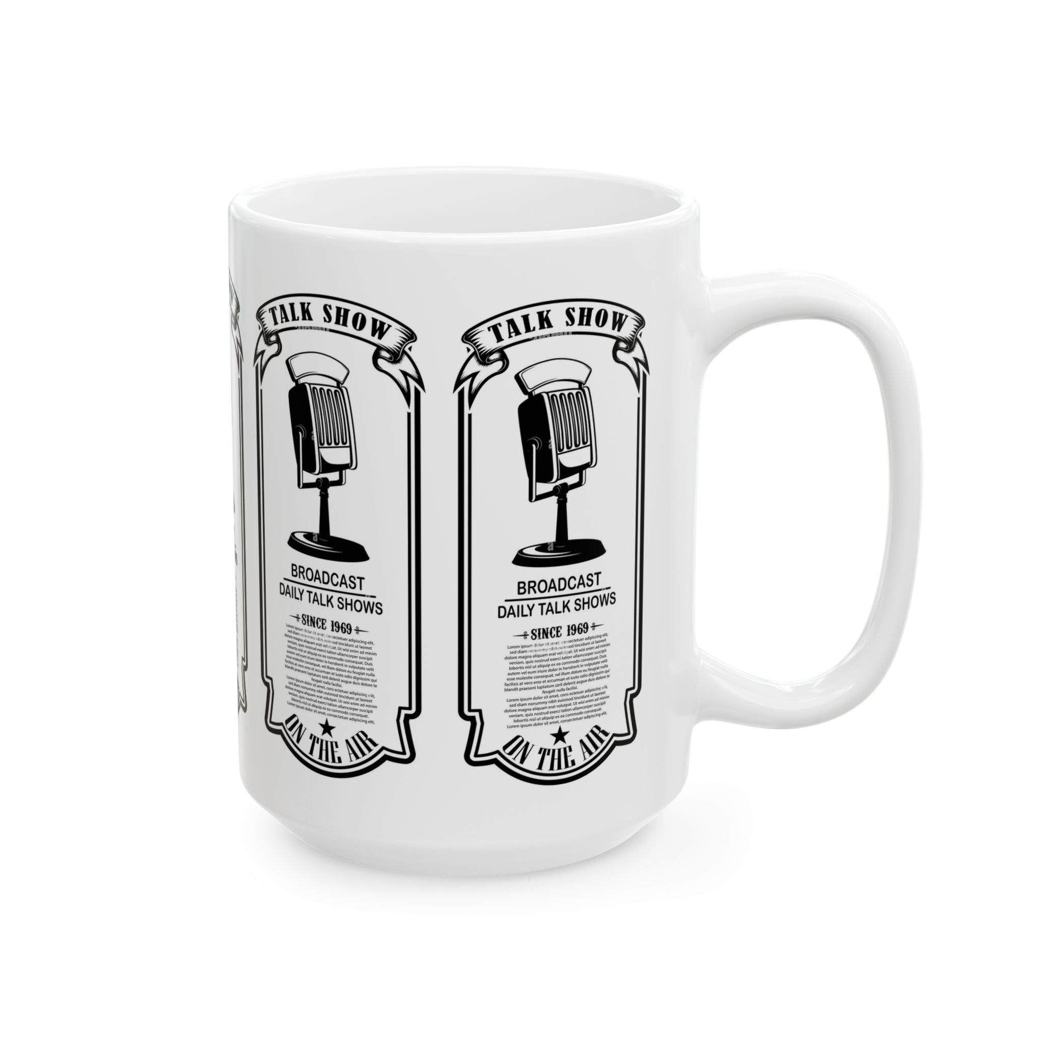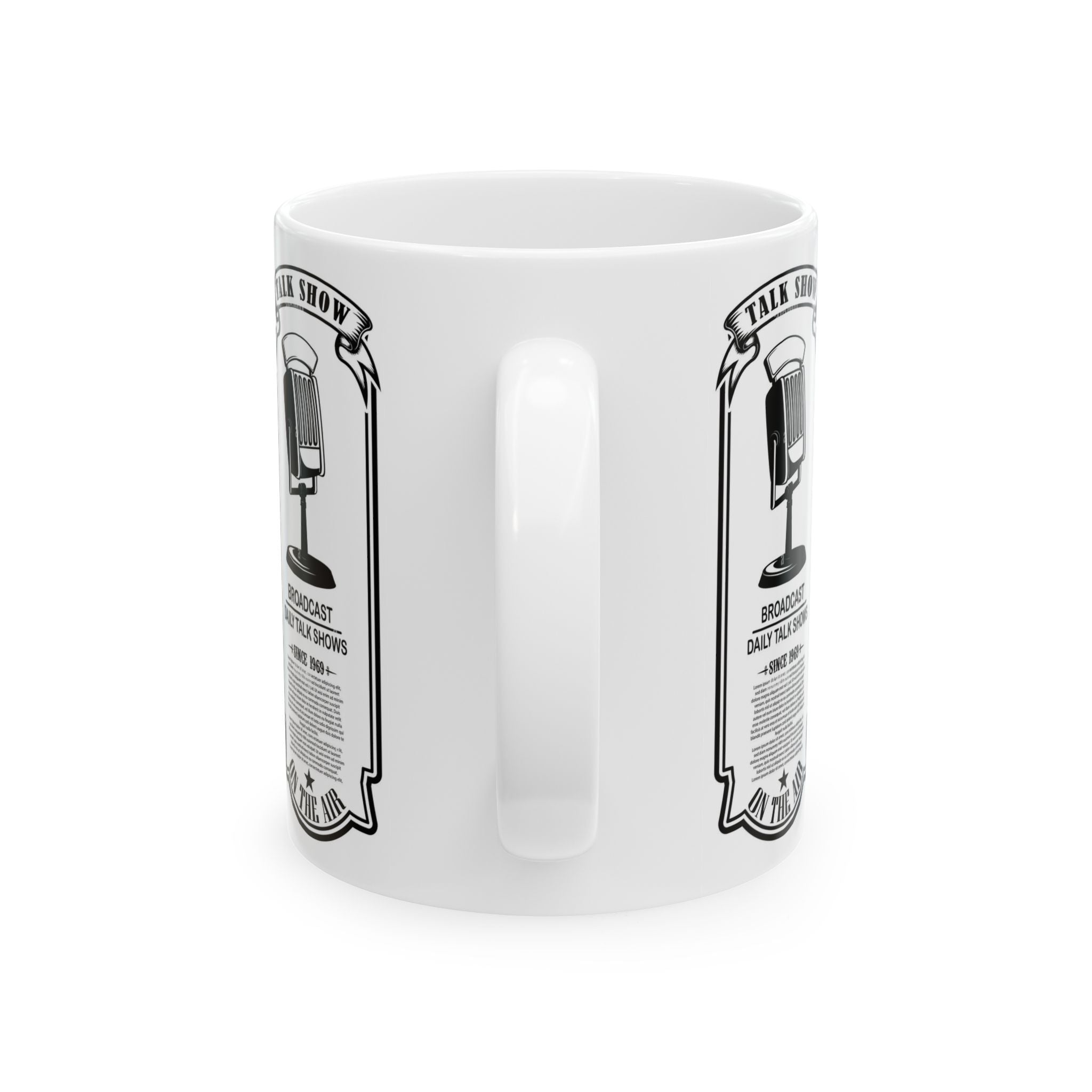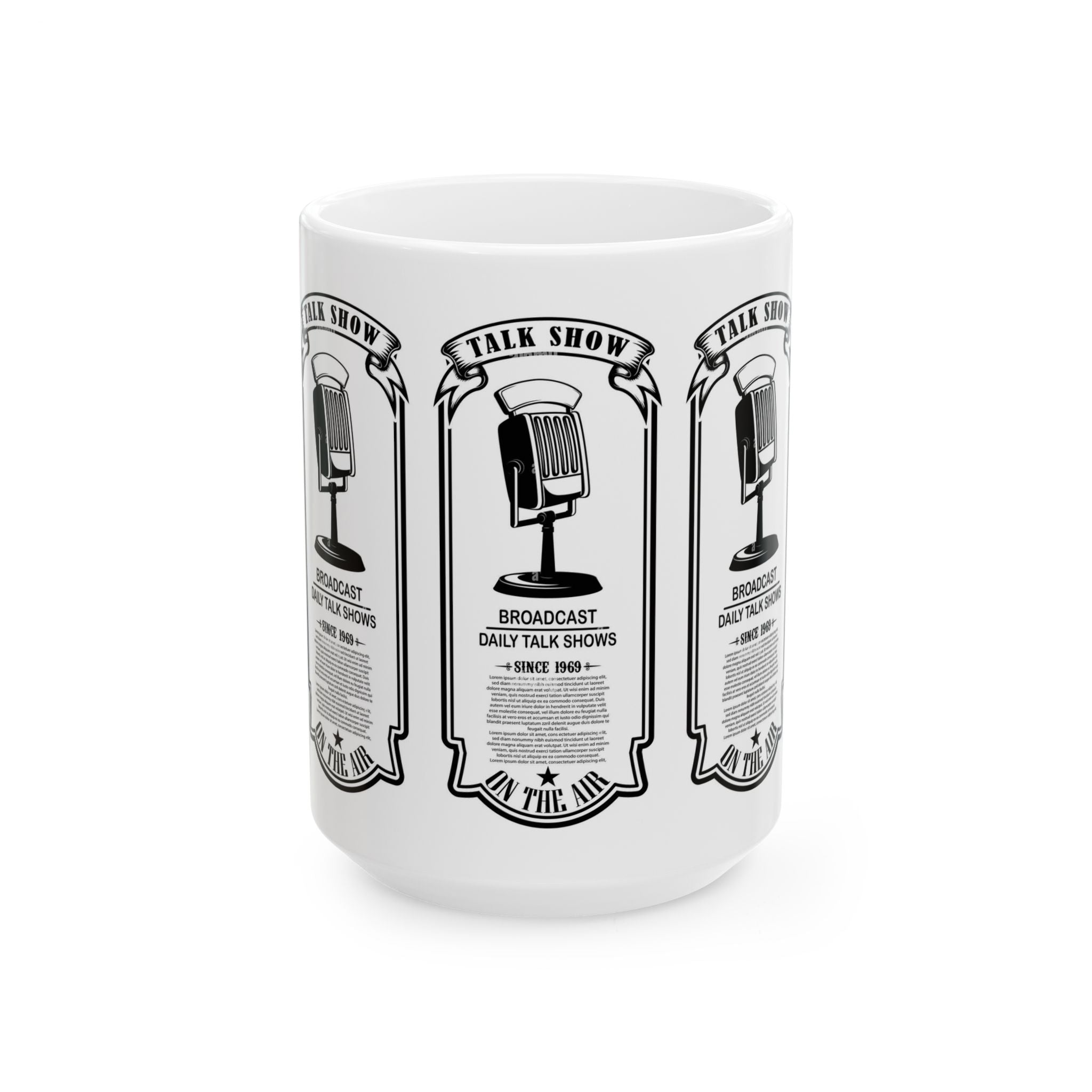 Vintage Talk Show Microphone Ceramic Mug – 'Broadcast Daily Talk Shows' 11oz/15oz